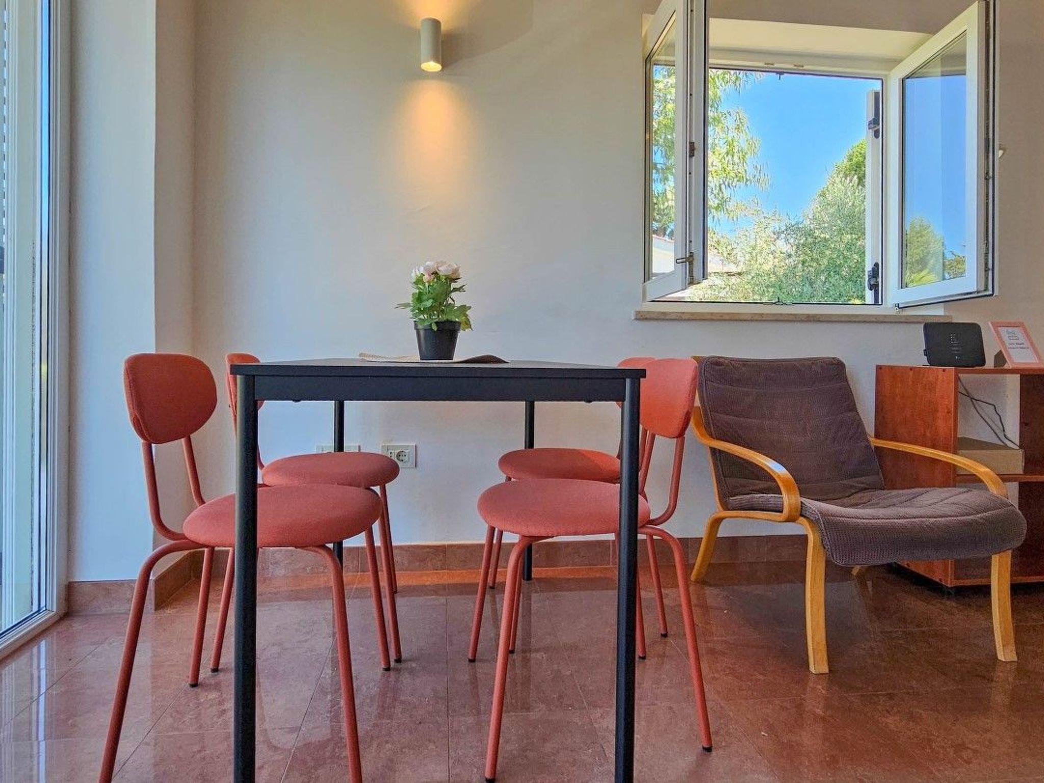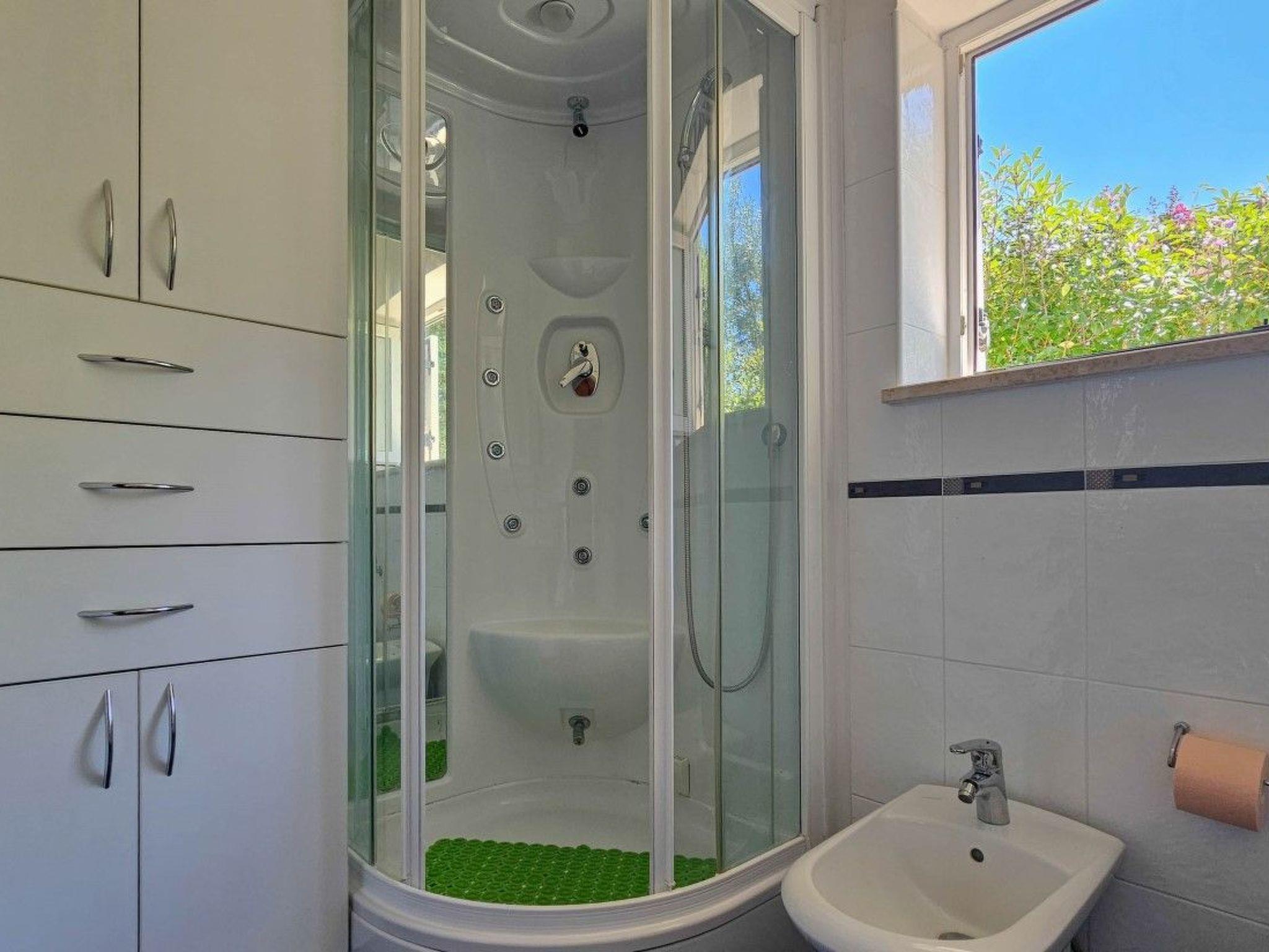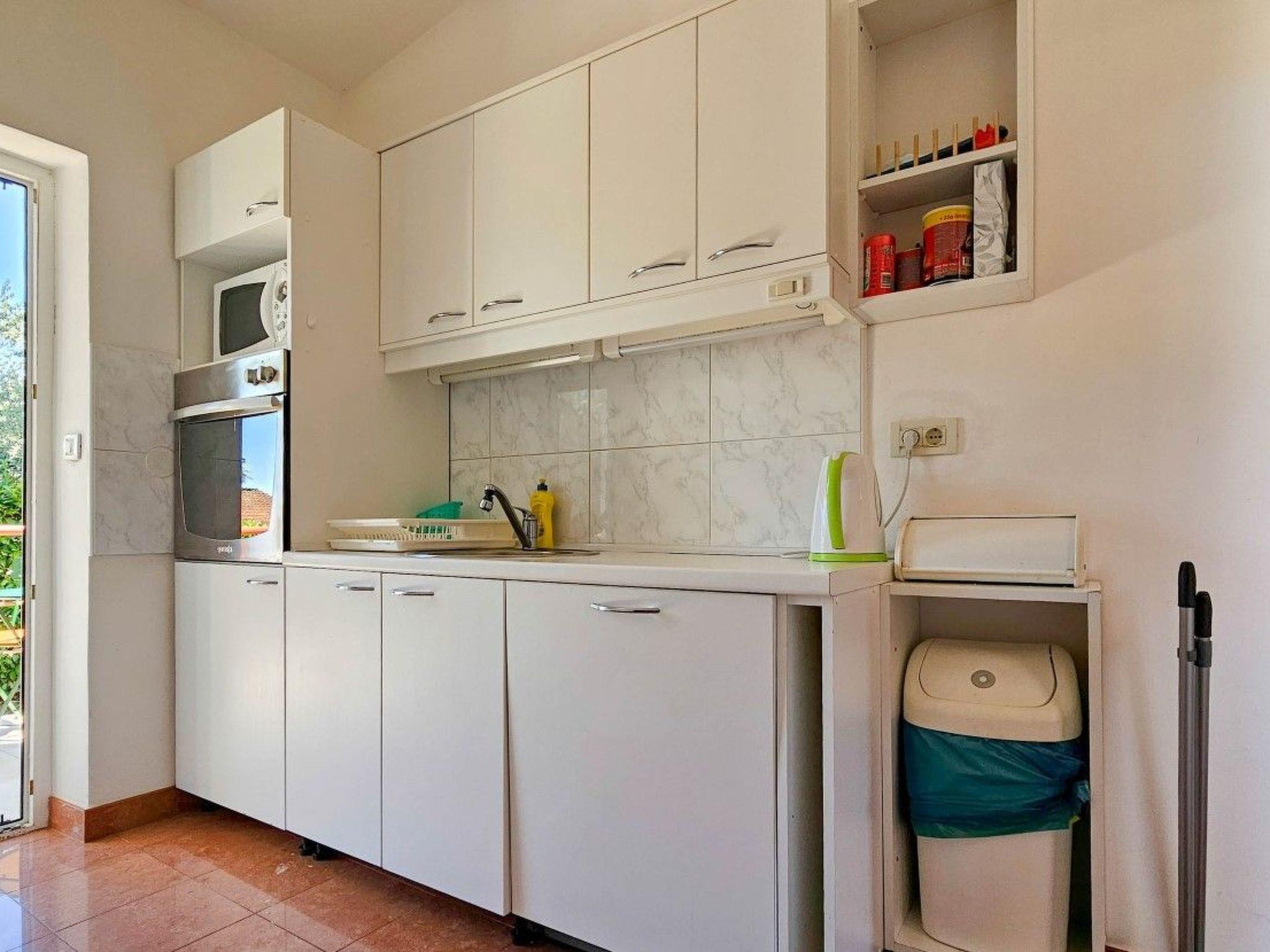 Das Haus verfügt über ein gut ausgestattetes Bad und ein gemütliches Wohnzimmer mit Blick ins Grüne und auf das Meer. Unsere Gäste werden von einer geräumigen Terrasse mit Sitzgelegenheiten und Liegestühlen begrüßt, der perfekte Ort, um Ihren Morgenkaffee mit Blick auf das Meer zu genießen. Die Küche ist mit den grundlegenden Dingen ausgestattet und ermöglicht Ihnen die Zubereitung von Mahlzeiten, und sie hat auch Zugang zu einem kleinen Balkon mit Blick auf den Garten.