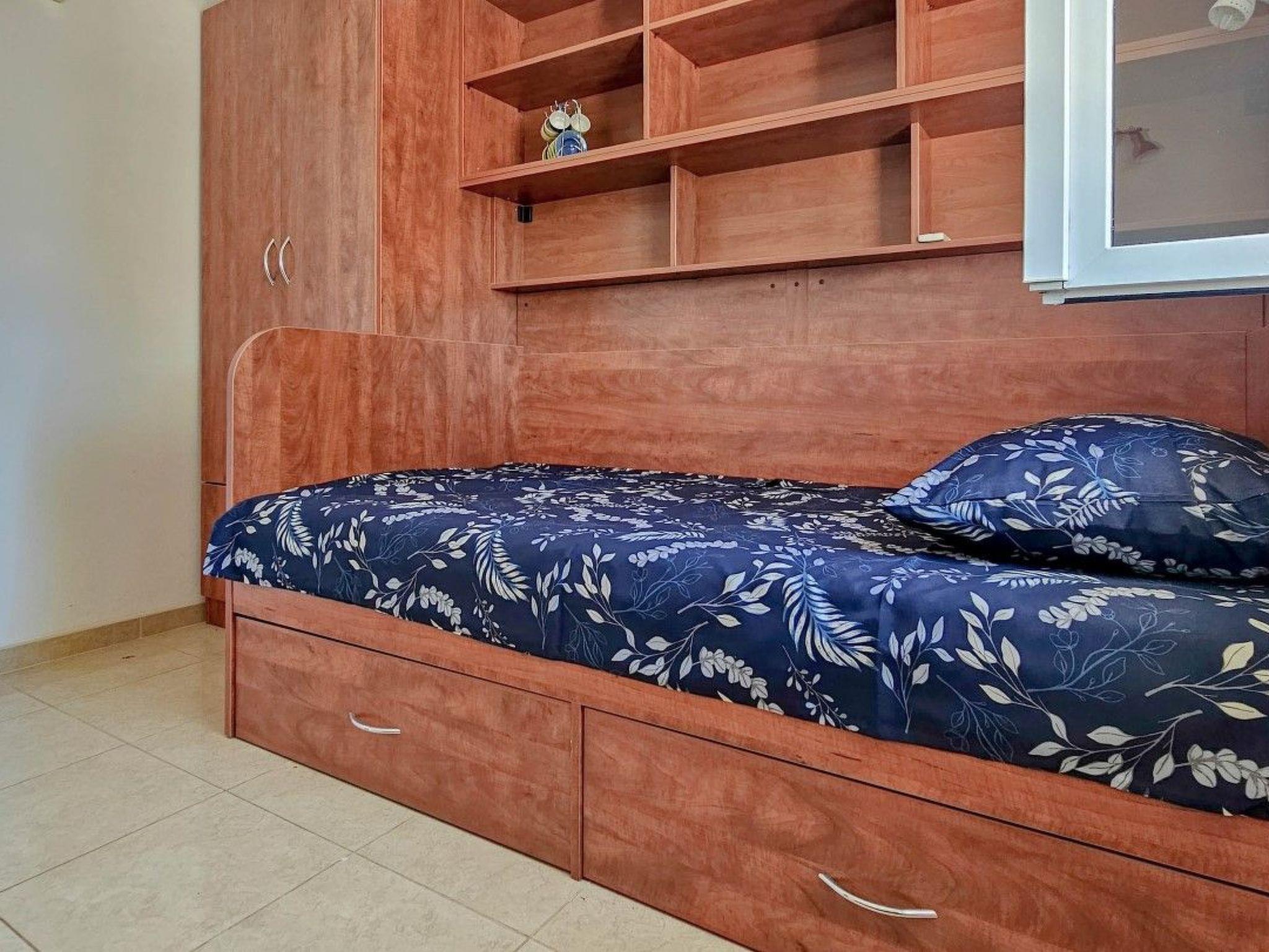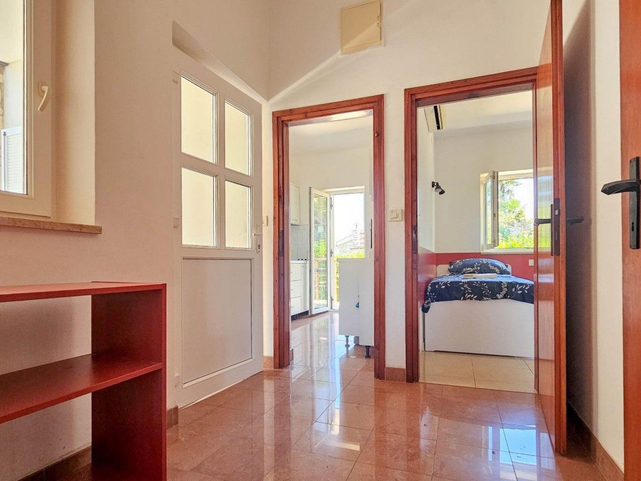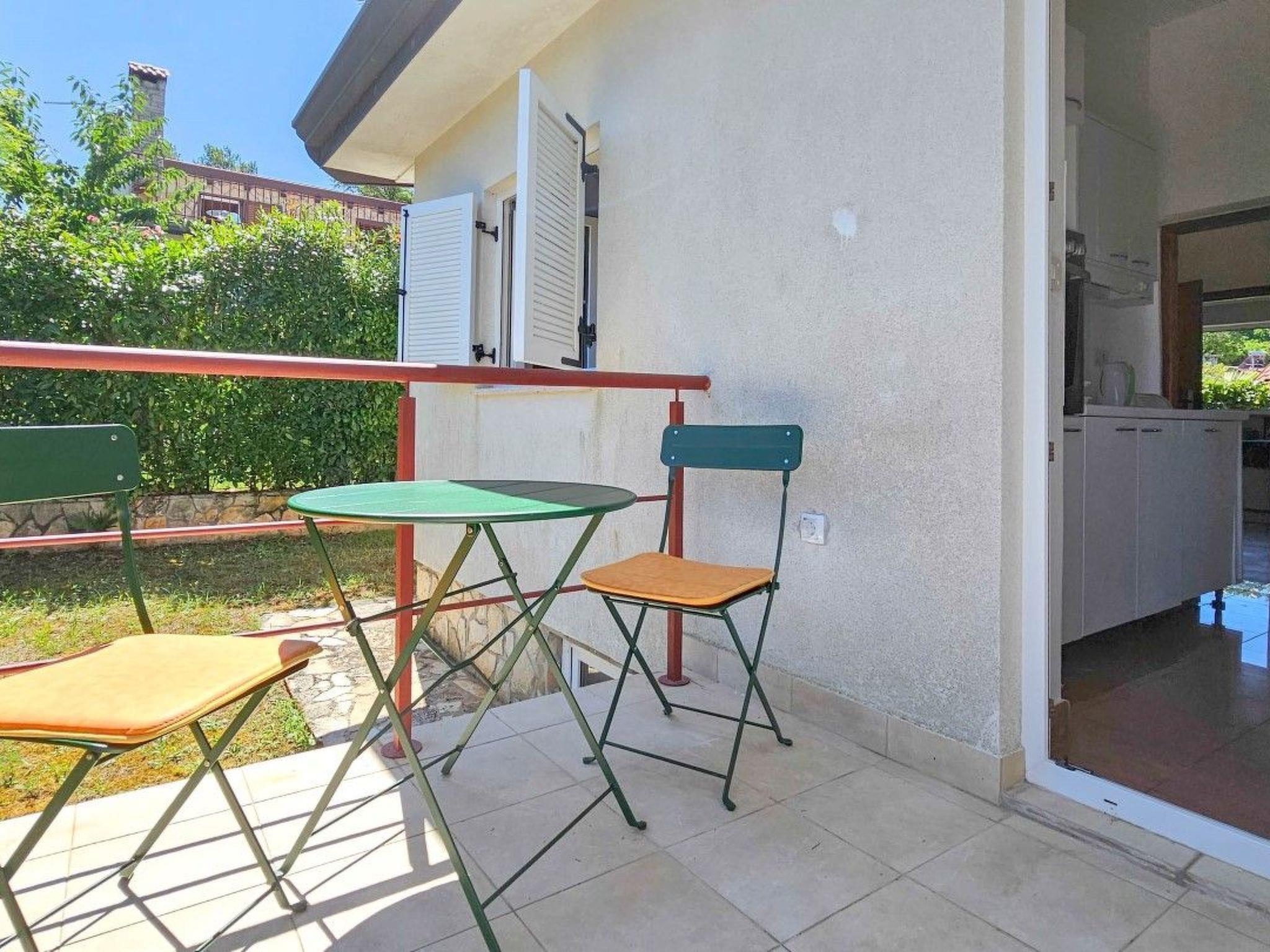 Das Haus verfügt über ein gut ausgestattetes Bad und ein gemütliches Wohnzimmer mit Blick ins Grüne und auf das Meer. Unsere Gäste werden von einer geräumigen Terrasse mit Sitzgelegenheiten und Liegestühlen begrüßt, der perfekte Ort, um Ihren Morgenkaffee mit Blick auf das Meer zu genießen. Die Küche ist mit den grundlegenden Dingen ausgestattet und ermöglicht Ihnen die Zubereitung von Mahlzeiten, und sie hat auch Zugang zu einem kleinen Balkon mit Blick auf den Garten.