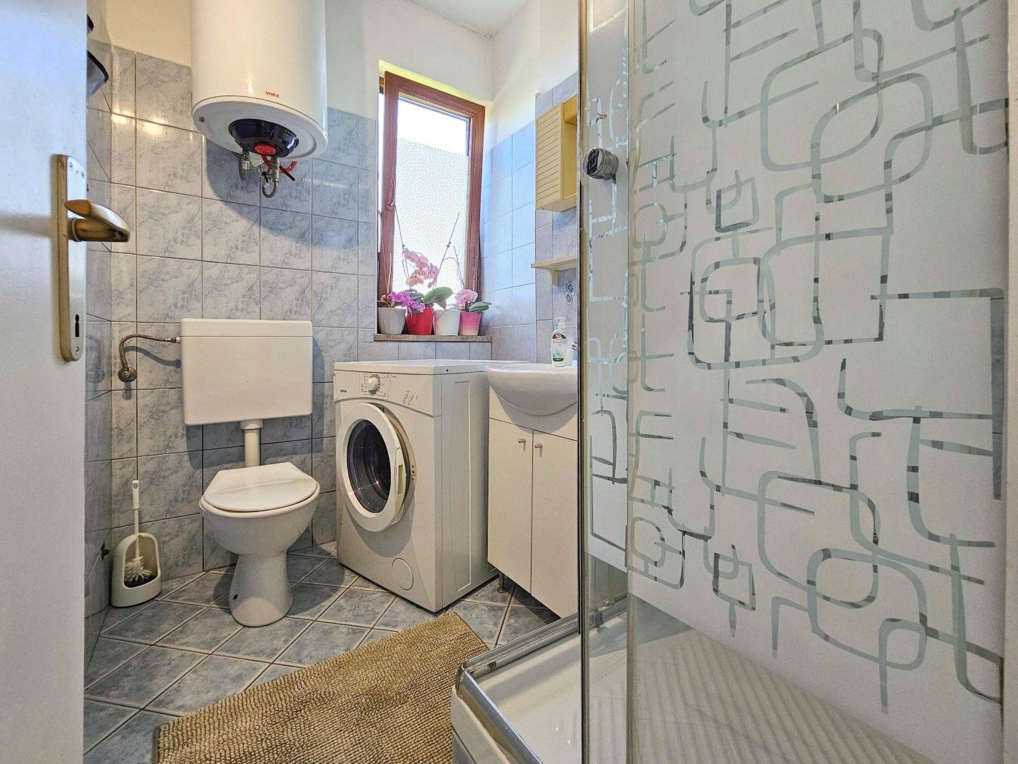 Die Wohnung verfügt über ein praktisches Bad mit Dusche, WC und Waschmaschine.
