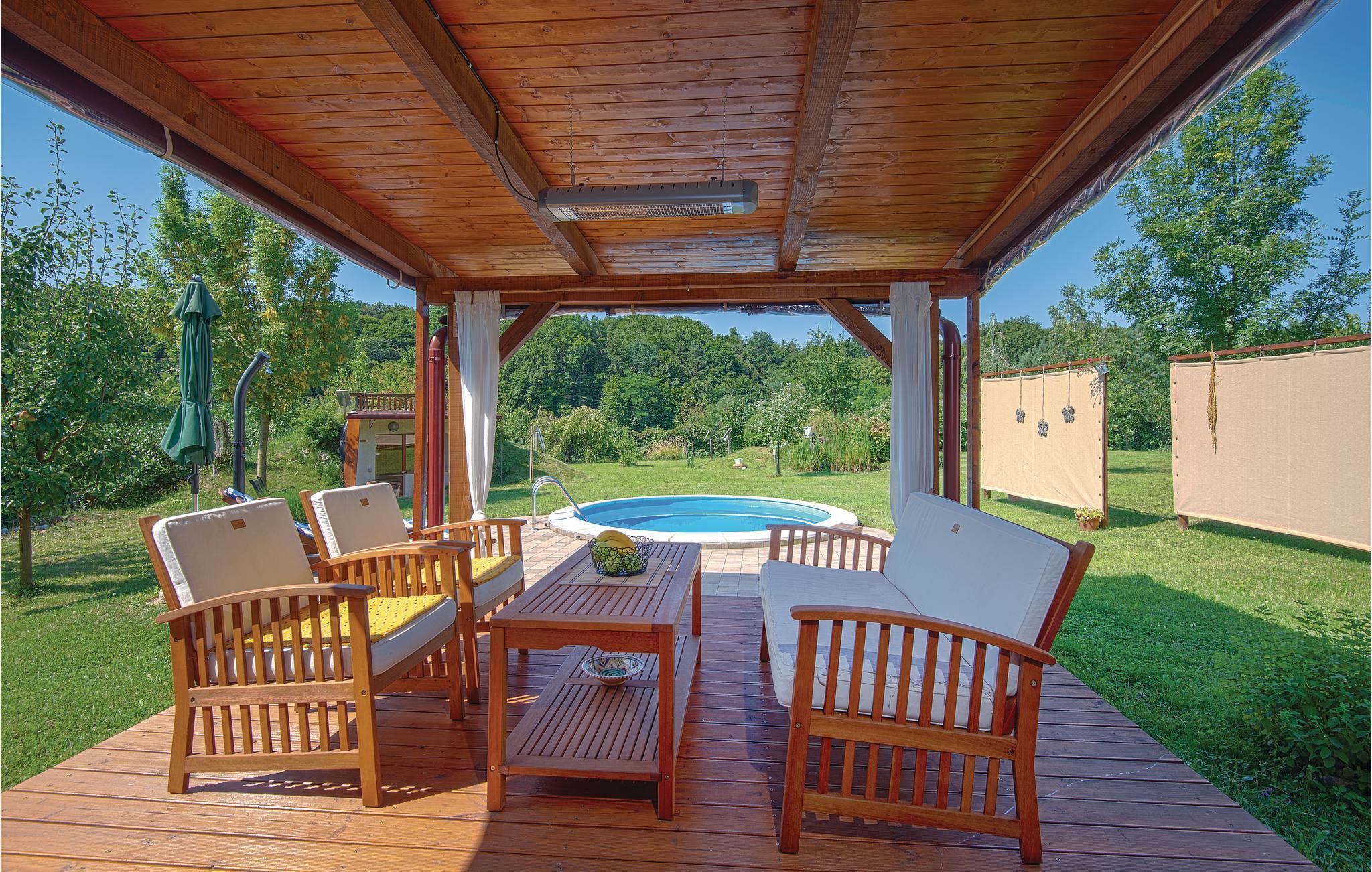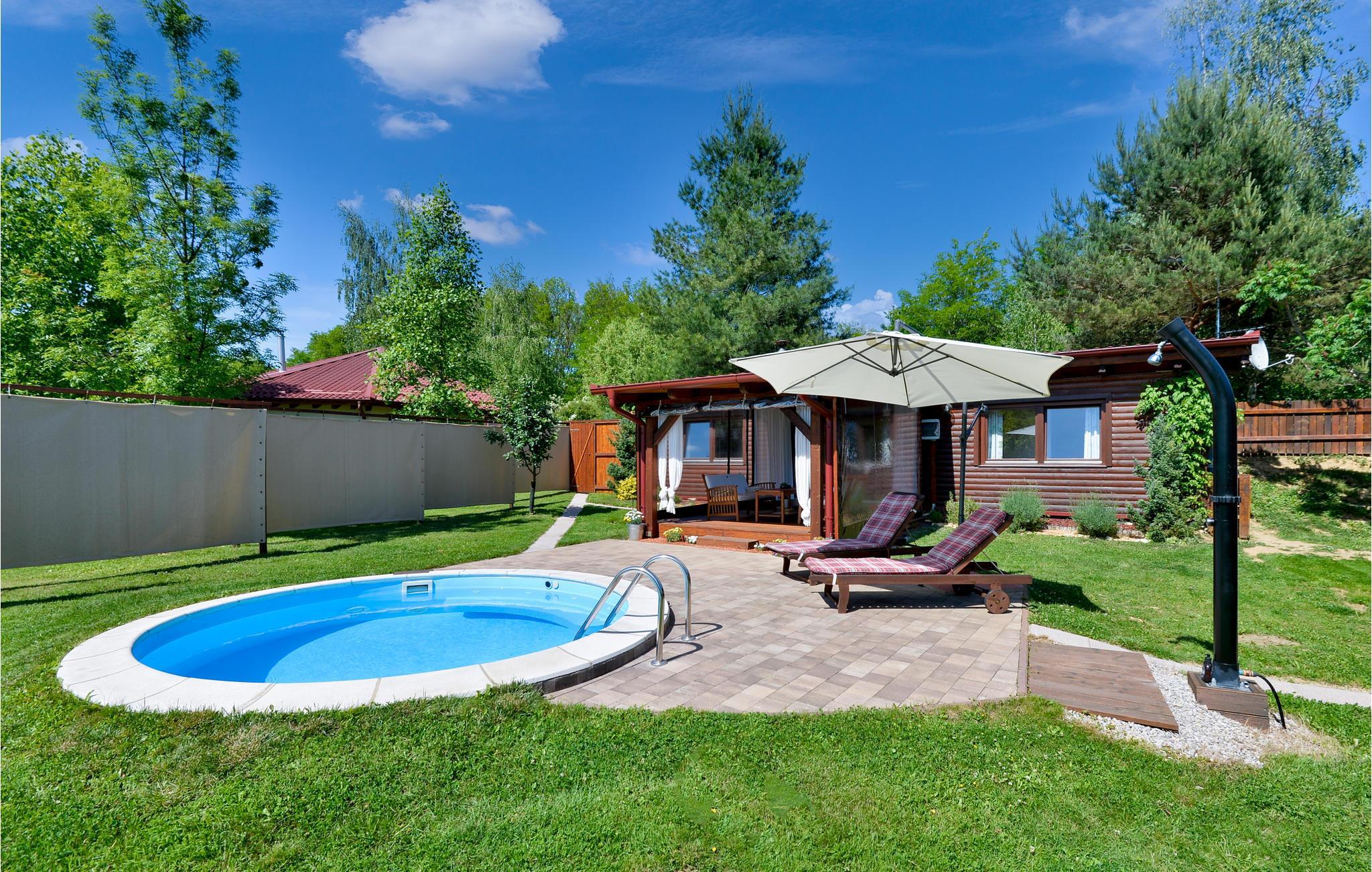 Abgeschieden auf einem schönen Naturgrundstück ist dieses charmante Ferienhaus mit Pool und Sauna gelegen. Auf der Holzterrasse mit Baldachin können Sie nach dem Mittagessen oder einem erfrischenden Bad im Pool mit Massagedüsen entspannen.Auf dem Grundstück befindet sich eine kleine Hütte (Spa-Bereich), in der Sie gegen Gebühr zusätzlich noch eine finnische Sauna mit Kältebecken, ein heißes Bad, einen Salzraum, Musiktherapie und Massagen nutzen können. Der nahe gelegene Wald ist für einen erholsamen Spaziergang an der frischen Luft ideal. Besuchen Sie auch den Park Bedekoviceve grabe, den Lebensraum geschützter Schmetterlingarten.