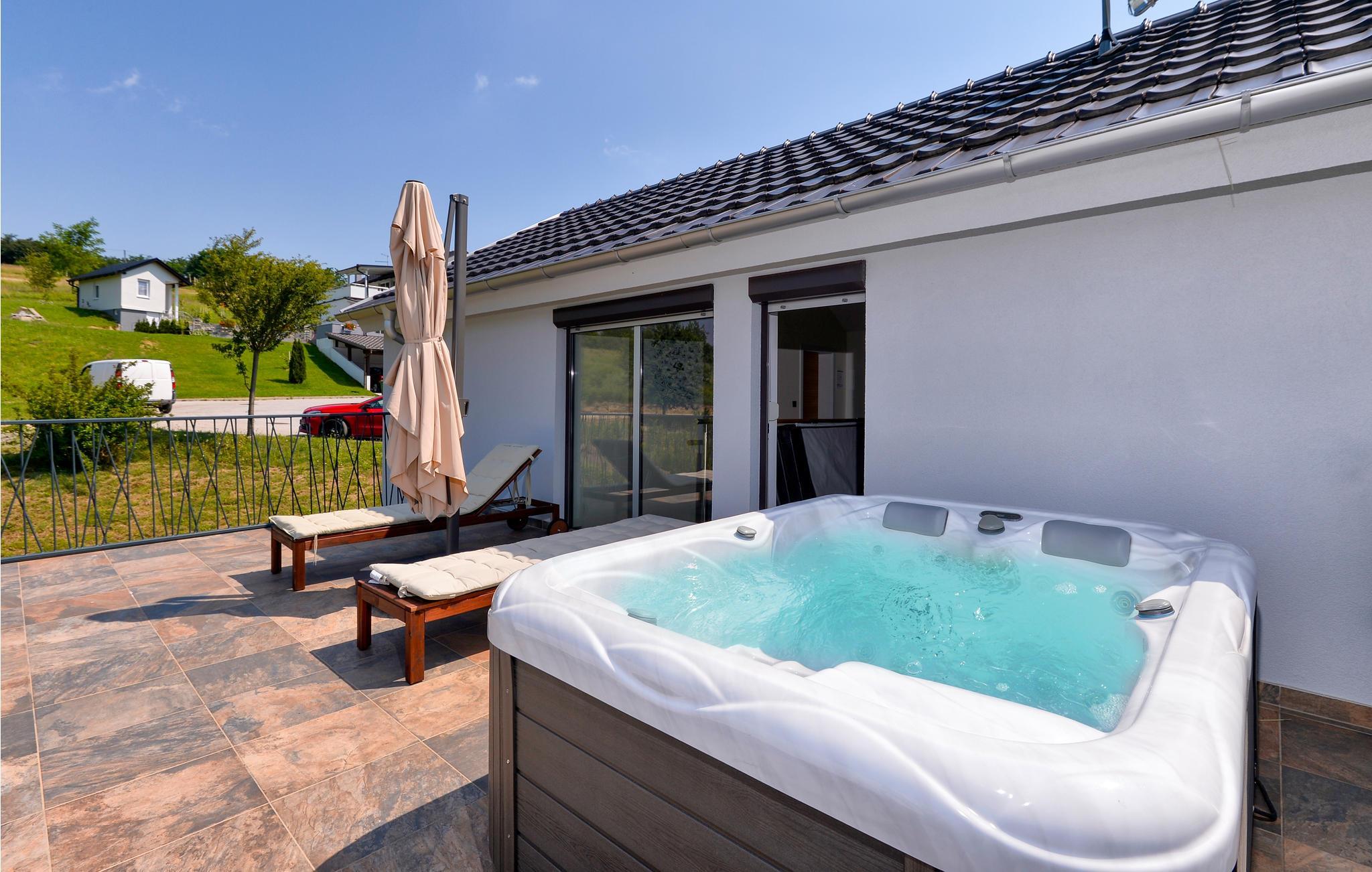 Dieses modern und gemütlich eingerichtete Ferienhaus eignet sich besonders für Naturliebhaber und Radfahrer. Das Erdgeschoss hat einen offenen Grundriss mit Küche mit Esszimmer, Wohnbereich und ein Badezimmer. Im 1. Stock erwartet Sie eine Galerie mit Sauna und einer Entspannungszone sowie ein Ausgang zur Terrasse, wo der Whirlpool unter freiem Himmel bereit steht, um sich zu entspannen. Die beiden Schlafzimmer verfügen jeweils über ein eigenes Bad und bieten somit zusätzlichen Komfort.