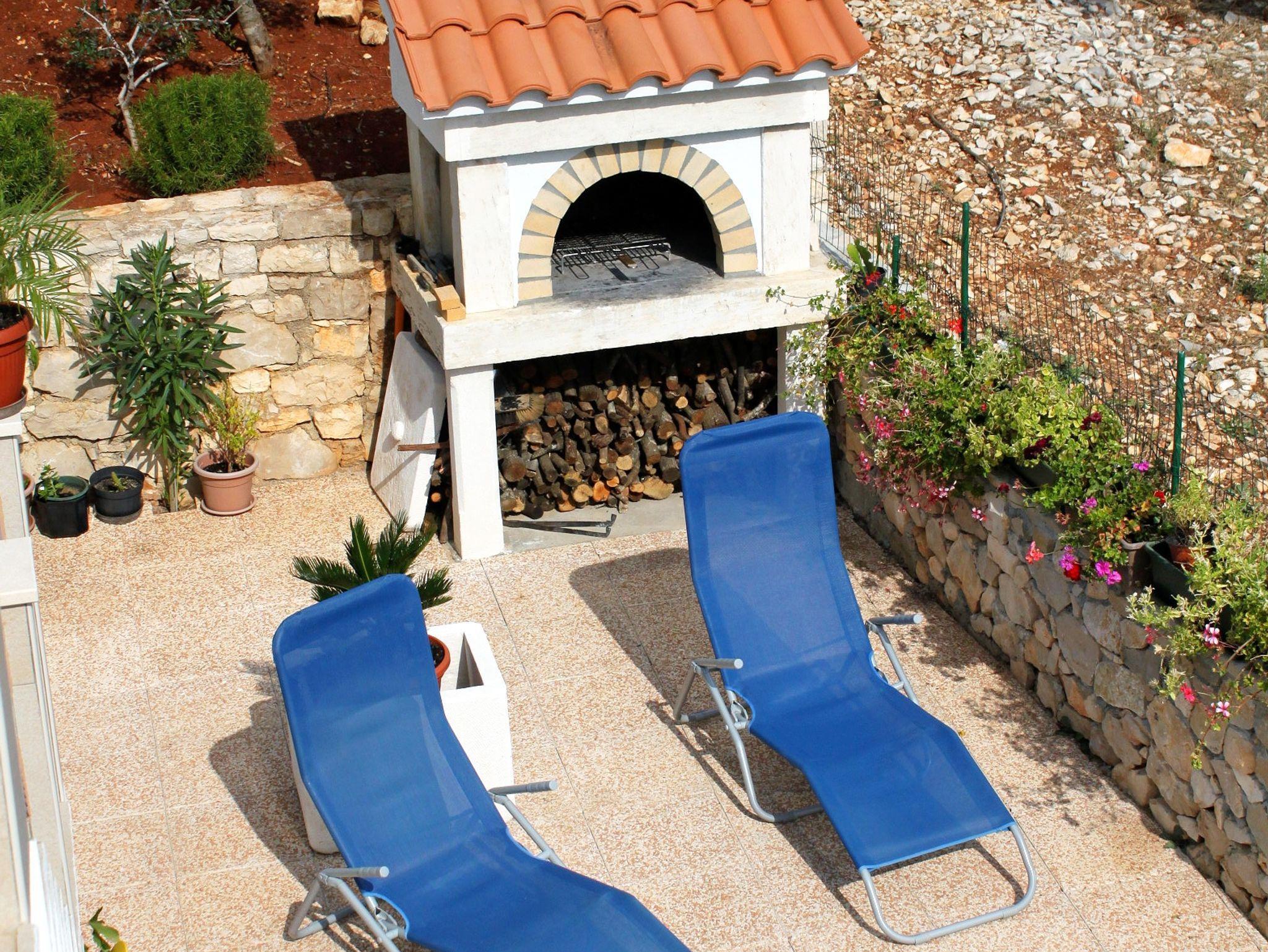 Umgebung des Objekts (Ordentlich), Hof (100m2, Sitzbereich), Parkplatz (Anzahl der Parkplätze: 2, Entfernung vom Objekt: 4 m), Grill: gemeinsam, WiFi Internet, Wäschewaschen, Bootsanlegeplatz (Entfernung vom Objekt: 130 m, Bootsanlegeplatztyp: Boje), Föhn, Bügeleisen, Bügelbrett, Sonnenschirm, Liegestühle, Kinderbett