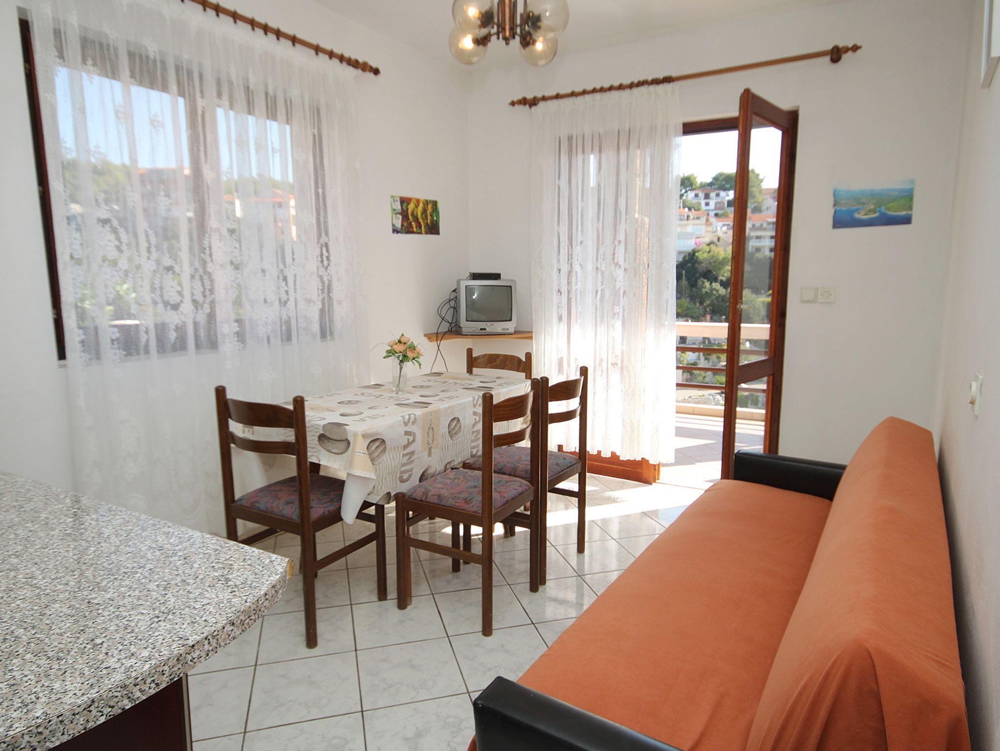 Ferienwohnung bietet Platz für 5 Gäste. Die Betten sind in Schlafzimmern, die es 2 gibt, und in Esszimmer, innerhalb einer Gesamtfläche von 51m2, angeordnet. Die Gäste haben eine eigene Terrasse zur Verfügung, auf der sie in warmen Sommernächten genießen können. Das Apartment bietet Meerblick. Es ist erlaubt, Speisen auf dem Gemeinschafts-Grill vorzubereiten. In der Unterkunftseinheit besteht die Möglichkeit des Mitbringens von Haustieren gegen Aufpreis. IM PREIS INBEGRIFFEN: Kurtaxe, Endreinigung, Klimatisierung, Parkplatz, Internet, Zusatzbett, Bügeleisen, Bügelbrett, Föhn. VERBINDLICHE ZUSÄTZLICHE KOSTEN: Aufzahlung für Kurzaufenthalte (prozentualer Zuschlag pro Nächtigungsanzahl: 30% - 1, 20% - 2, 10% - 3). UNVERBINDLICHE ZUSÄTZLICHE KOSTEN: Haustiere (5,00 € pro Nacht). Die Verfügbarkeit zusätzlicher Dienstleistungen in Ihrem reservierten Termin und die Preise derselben (falls nicht aufgeführt) müssen im Voraus überprüft werden. Zusätzliche Dienstleistungen die in der Zahlungsaufforderung nicht aufgeführt sind werden direkt beim Vermieter bezahlt, angenommen der Gast nutzt auch diese.