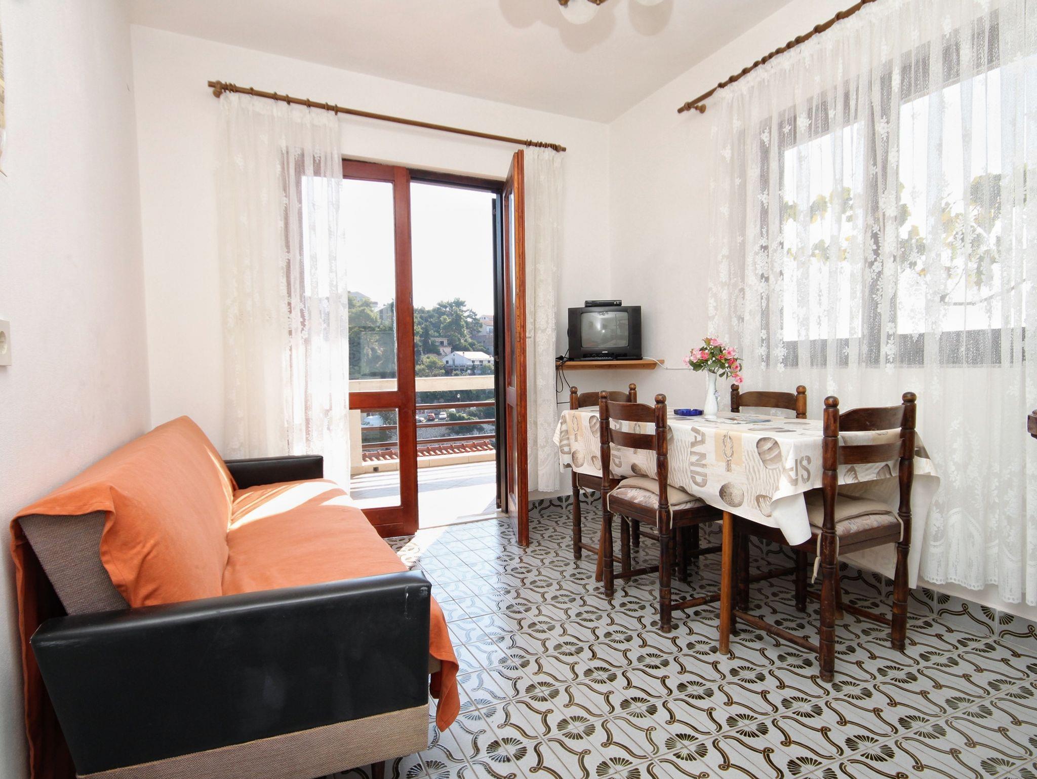 Ferienwohnung bietet Platz für 5 Gäste. Die Betten sind in Schlafzimmern, die es 2 gibt, und in Esszimmer, innerhalb einer Gesamtfläche von 51m2, angeordnet. Die Gäste haben eine eigene Terrasse zur Verfügung, auf der sie in warmen Sommernächten genießen können. Das Apartment bietet Meerblick. Es ist erlaubt, Speisen auf dem Gemeinschafts-Grill vorzubereiten. In der Unterkunftseinheit besteht die Möglichkeit des Mitbringens von Haustieren gegen Aufpreis. IM PREIS INBEGRIFFEN: Kurtaxe, Endreinigung, Klimatisierung, Parkplatz, Internet, Zusatzbett, Bügeleisen, Bügelbrett, Föhn. VERBINDLICHE ZUSÄTZLICHE KOSTEN: Aufzahlung für Kurzaufenthalte (prozentualer Zuschlag pro Nächtigungsanzahl: 30% - 1, 20% - 2, 10% - 3). UNVERBINDLICHE ZUSÄTZLICHE KOSTEN: Haustiere (5,00 € pro Nacht). Die Verfügbarkeit zusätzlicher Dienstleistungen in Ihrem reservierten Termin und die Preise derselben (falls nicht aufgeführt) müssen im Voraus überprüft werden. Zusätzliche Dienstleistungen die in der Zahlungsaufforderung nicht aufgeführt sind werden direkt beim Vermieter bezahlt, angenommen der Gast nutzt auch diese.