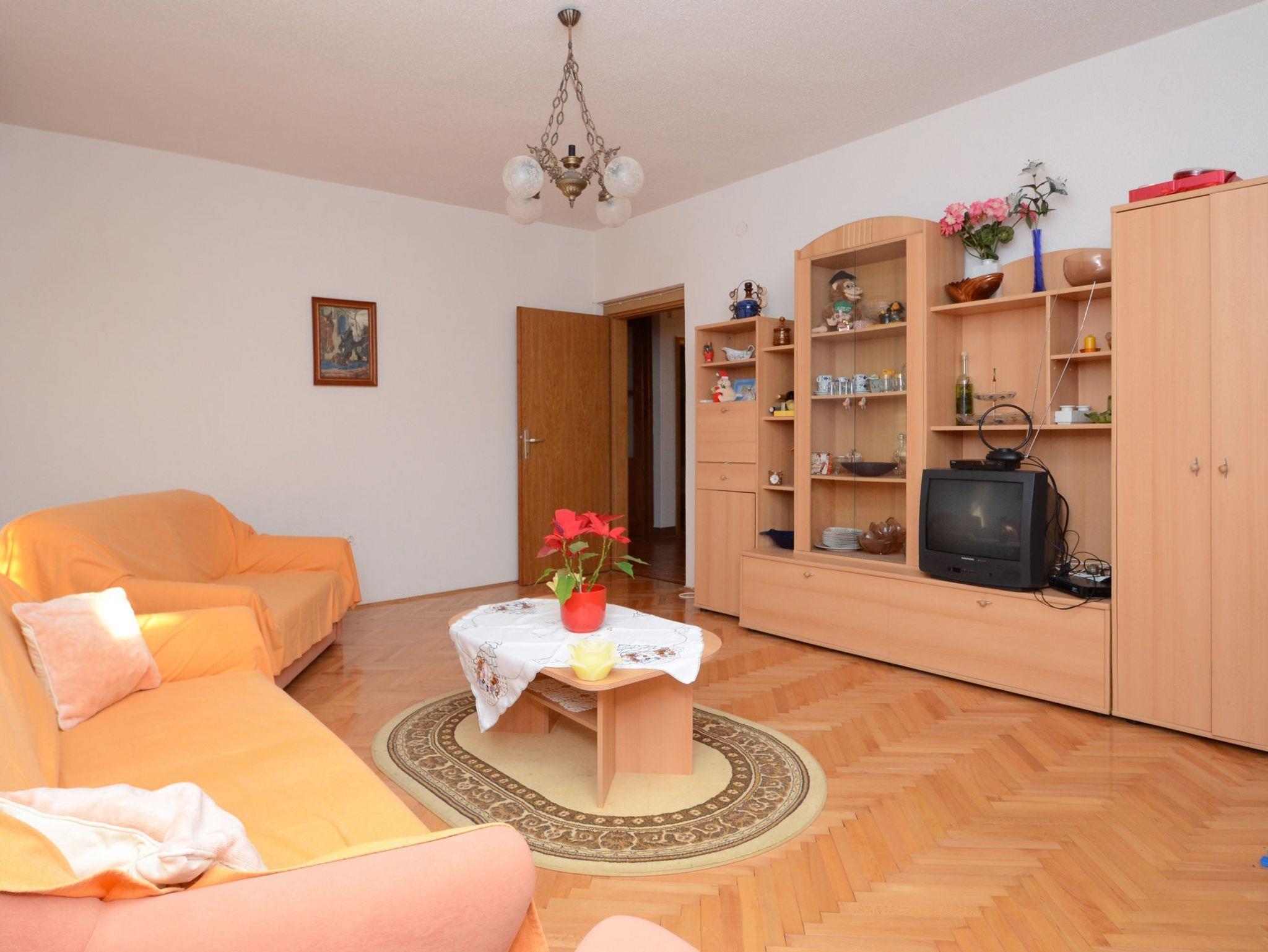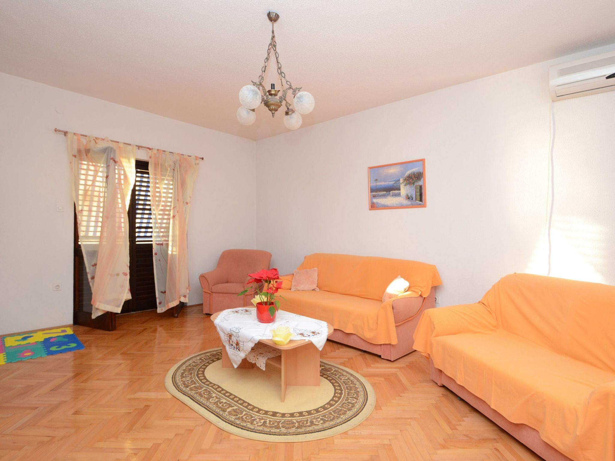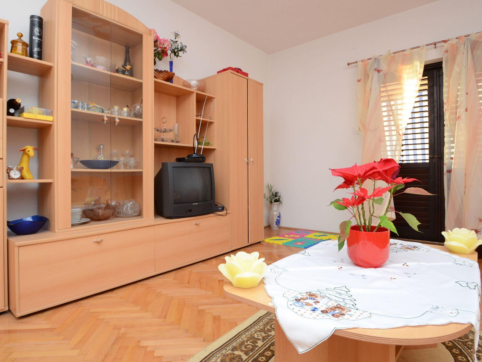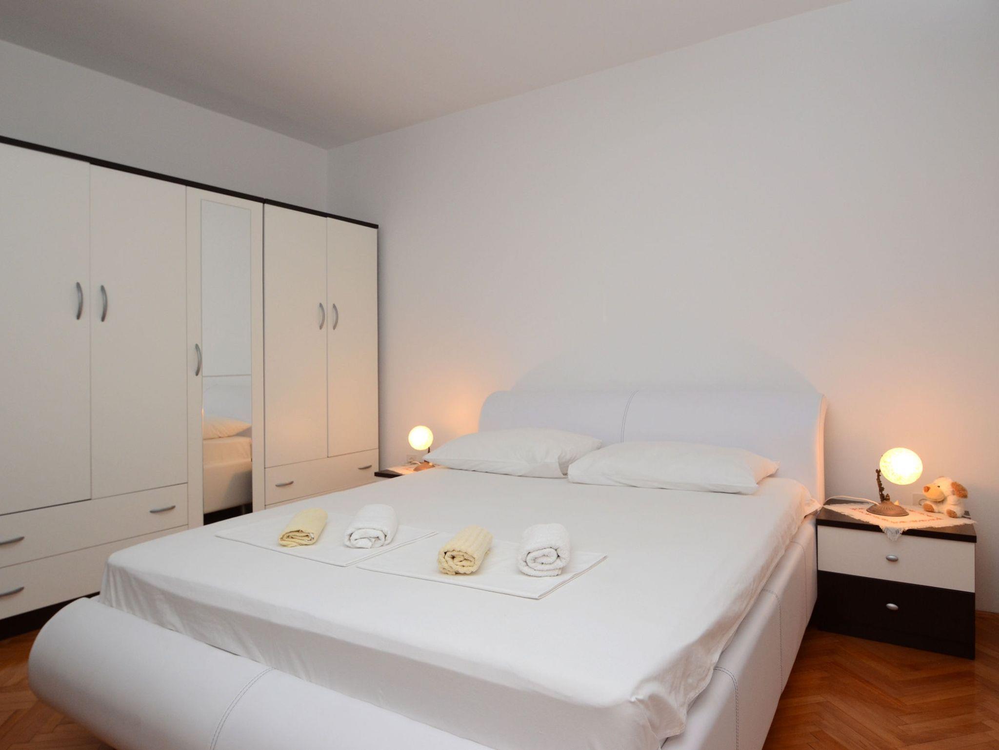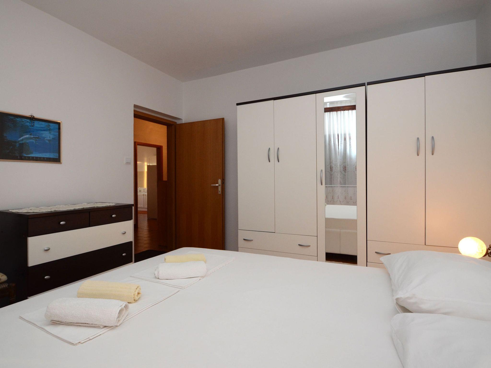 Ferienwohnung bietet Platz für 6 Gäste. Die Betten sind in Schlafzimmern, die es 3 gibt, innerhalb einer Gesamtfläche von 98m2, angeordnet. Die Gäste haben eine eigene Terrasse zur Verfügung, auf der sie in warmen Sommernächten genießen können. Das Apartment bietet Meerblick. Es ist erlaubt, Speisen auf dem Gemeinschafts-Grill vorzubereiten. IM PREIS INBEGRIFFEN: Kurtaxe, Endreinigung, Klimatisierung, Parkplatz, Internet, Bootsanlegeplatz, Kinderbett, Bügeleisen, Föhn. VERBINDLICHE ZUSÄTZLICHE KOSTEN: Aufzahlung für Kurzaufenthalte (prozentualer Zuschlag pro Nächtigungsanzahl: 30% - 1, 20% - 2, 10% - 3). UNVERBINDLICHE ZUSÄTZLICHE KOSTEN: Wäschewaschen (10,00 € Waschen). Die Verfügbarkeit zusätzlicher Dienstleistungen in Ihrem reservierten Termin und die Preise derselben (falls nicht aufgeführt) müssen im Voraus überprüft werden. Zusätzliche Dienstleistungen die in der Zahlungsaufforderung nicht aufgeführt sind werden direkt beim Vermieter bezahlt, angenommen der Gast nutzt auch diese. Ermäßigung auf den Grundpreis: Gratistag 14=13 (bei einem Aufenthalt von 14 Tagen oder mehr erhalten Sie einen Gratistag für den Aufenthalt bis 31.12.26).