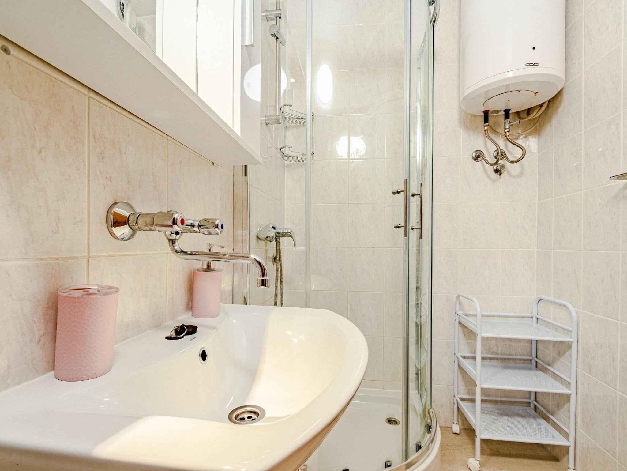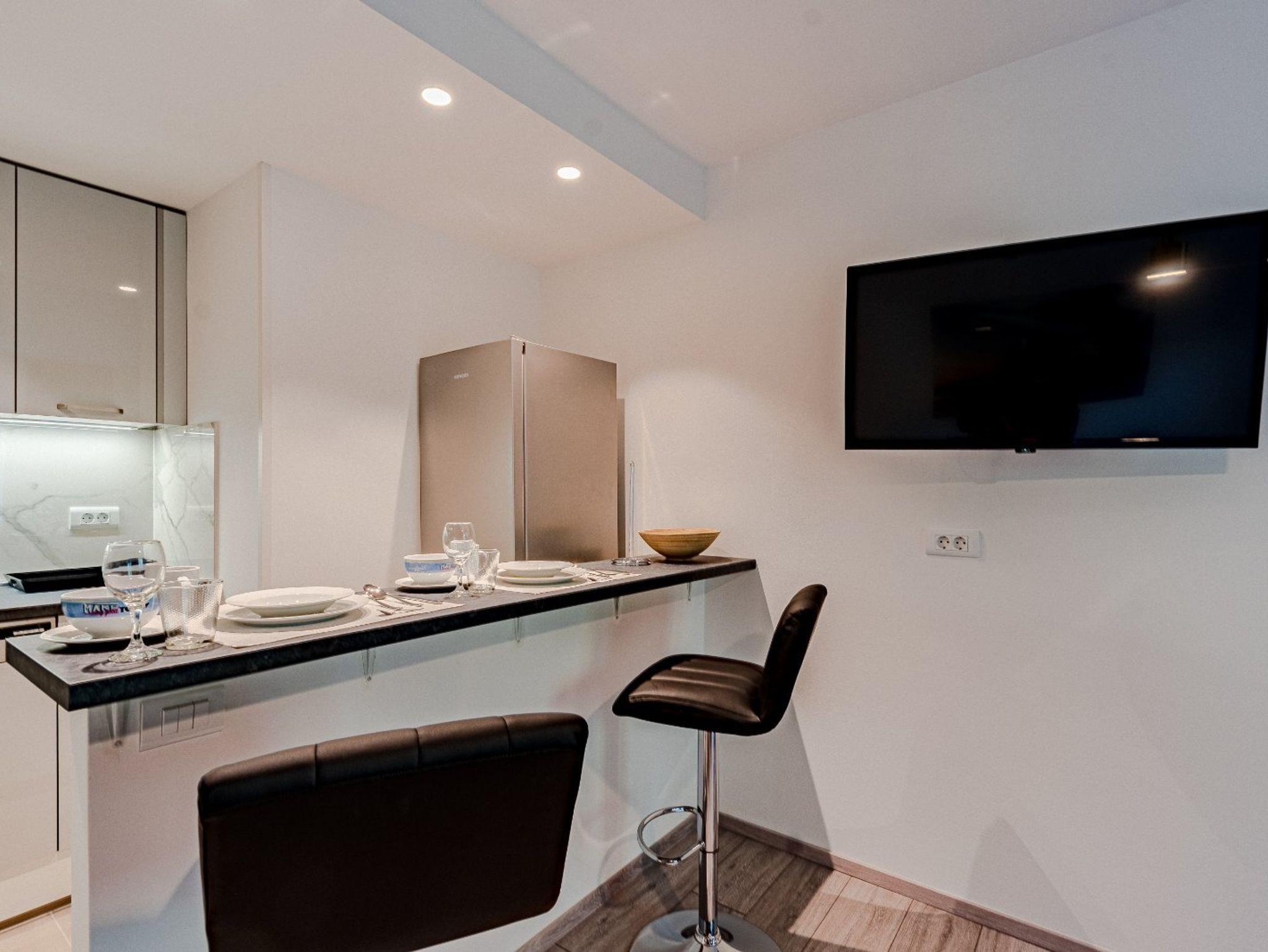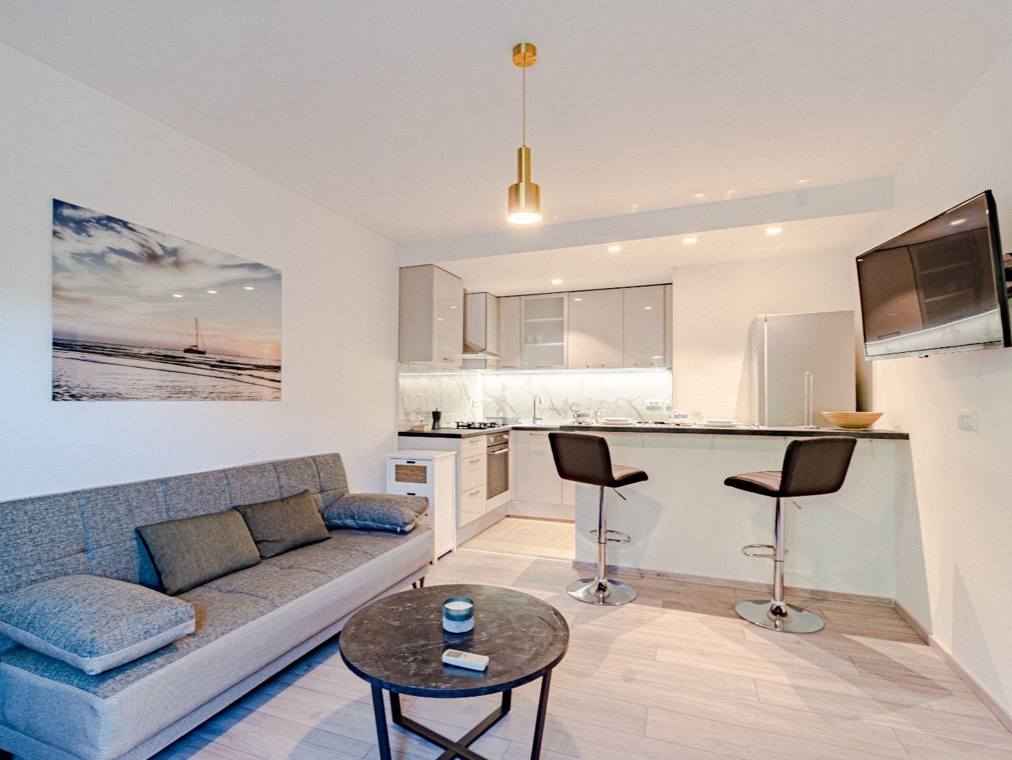 Studio bietet Platz für 2 Gäste. Die Betten sind in Schlafzimmern, die es 1 gibt, innerhalb einer Gesamtfläche von 30m2, angeordnet. Die Gäste haben eine eigene Terrasse zur Verfügung, auf der sie in warmen Sommernächten genießen können. Das Studio-Apartment bietet Meerblick. Es ist erlaubt, Speisen auf dem Gemeinschafts-Grill vorzubereiten. IM PREIS INBEGRIFFEN: Kurtaxe, Endreinigung, Klimatisierung, Parkplatz, Internet. VERBINDLICHE ZUSÄTZLICHE KOSTEN: Aufzahlung für Kurzaufenthalte (prozentualer Zuschlag pro Nächtigungsanzahl: 30% - 1, 20% - 2, 10% - 3). Die Verfügbarkeit zusätzlicher Dienstleistungen in Ihrem reservierten Termin und die Preise derselben (falls nicht aufgeführt) müssen im Voraus überprüft werden. Zusätzliche Dienstleistungen die in der Zahlungsaufforderung nicht aufgeführt sind werden direkt beim Vermieter bezahlt, angenommen der Gast nutzt auch diese. Ermäßigung auf den Grundpreis: Gratistag 14=13 (bei einem Aufenthalt von 14 Tagen oder mehr erhalten Sie einen Gratistag für den Aufenthalt bis 31.12.26).