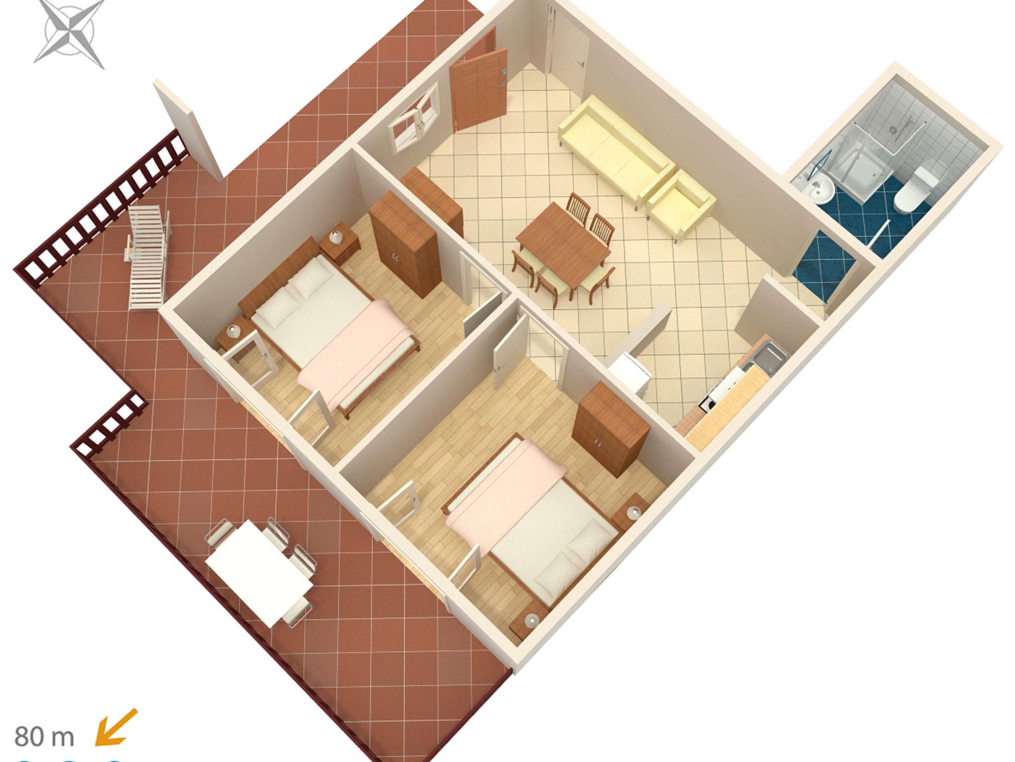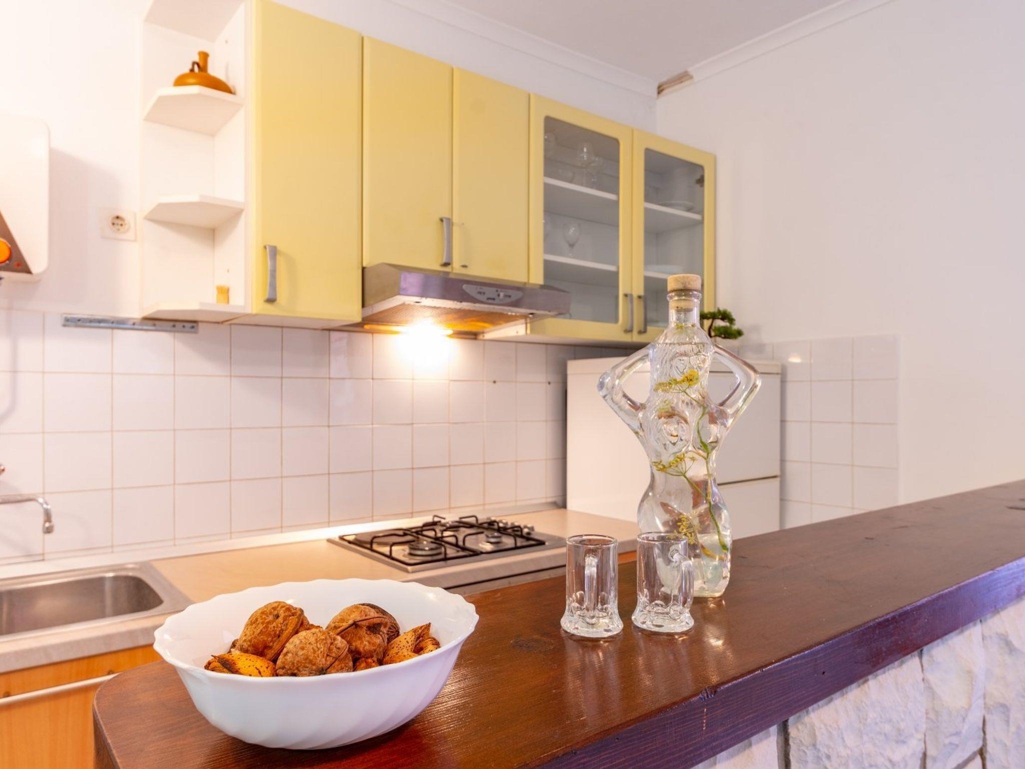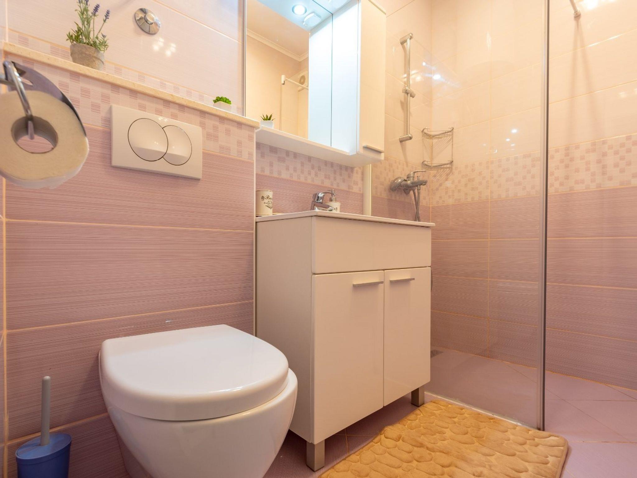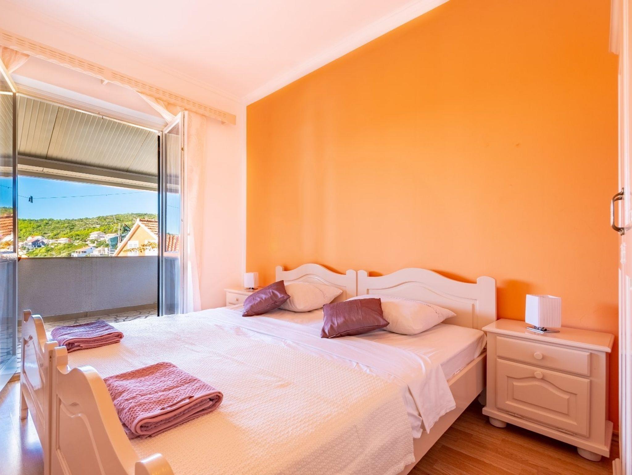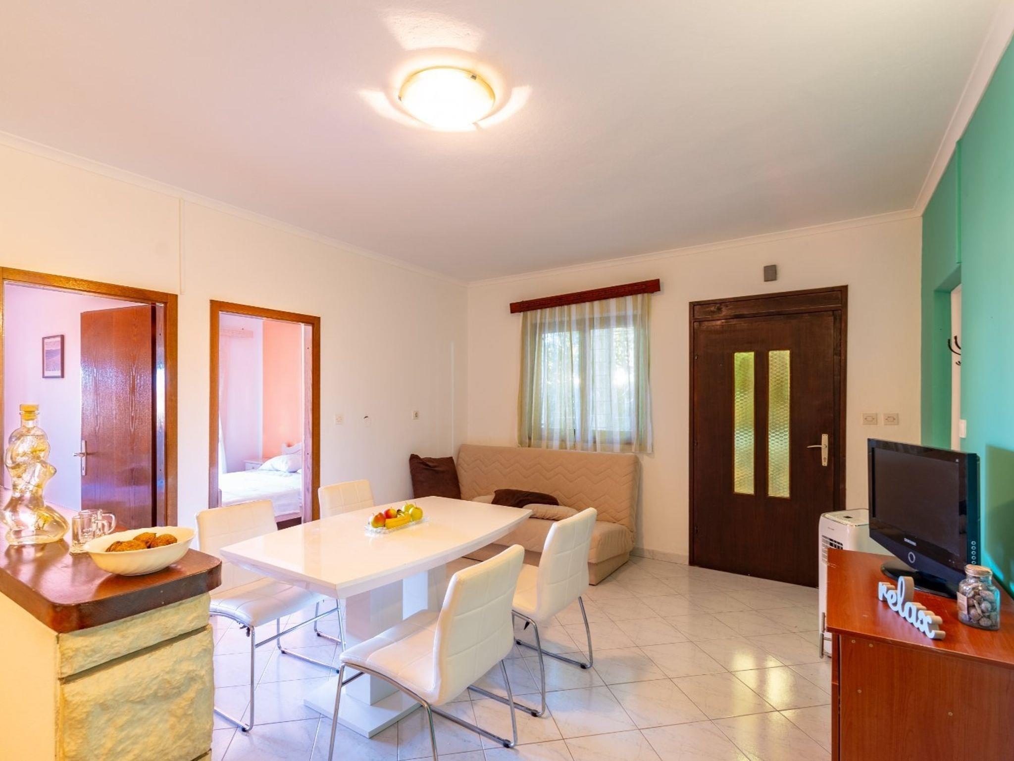 Ferienwohnung bietet Platz für 4 Gäste. Die Betten sind in Schlafzimmern, die es 2 gibt, innerhalb einer Gesamtfläche von 50m2, angeordnet. Die Gäste haben eine eigene Terrasse zur Verfügung, auf der sie in warmen Sommernächten genießen können. Das Apartment bietet Meerblick. Es ist erlaubt, Speisen auf dem Gemeinschafts-Grill vorzubereiten. IM PREIS INBEGRIFFEN: Kurtaxe, Endreinigung, Klimatisierung, Parkplatz, Internet. VERBINDLICHE ZUSÄTZLICHE KOSTEN: Aufzahlung für Kurzaufenthalte (prozentualer Zuschlag pro Nächtigungsanzahl: 30% - 1, 20% - 2, 10% - 3). Die Verfügbarkeit zusätzlicher Dienstleistungen in Ihrem reservierten Termin und die Preise derselben (falls nicht aufgeführt) müssen im Voraus überprüft werden. Zusätzliche Dienstleistungen die in der Zahlungsaufforderung nicht aufgeführt sind werden direkt beim Vermieter bezahlt, angenommen der Gast nutzt auch diese. Ermäßigung auf den Grundpreis: Gratistag 14=13 (bei einem Aufenthalt von 14 Tagen oder mehr erhalten Sie einen Gratistag für den Aufenthalt bis 31.12.26).