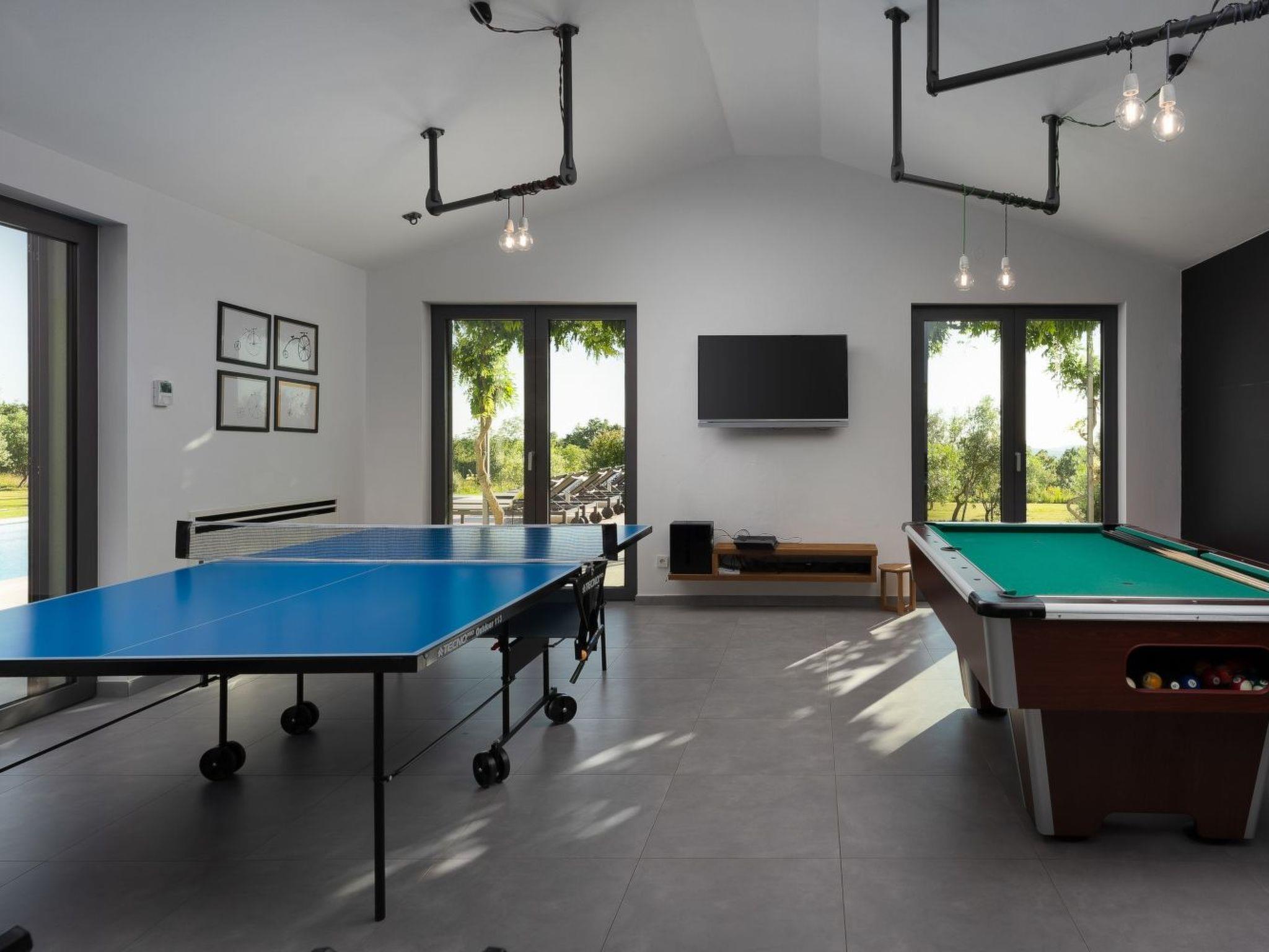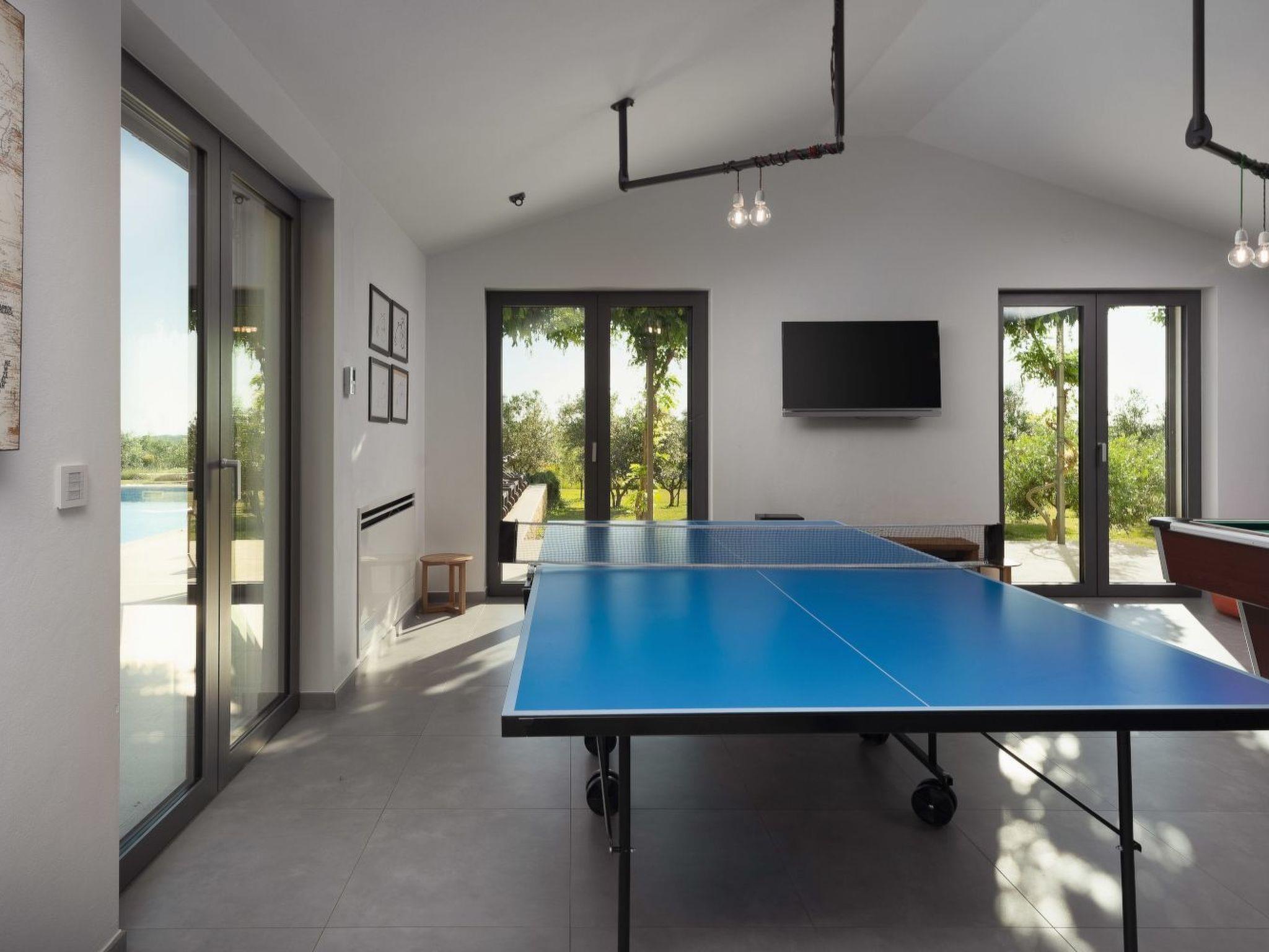 Step inside to discover a spacious and well-appointed interior that promises ease and relaxation. With 4 bedrooms and 5 bathrooms, including showers, bathtubs, and a walk-in shower, privacy and convenience are guaranteed for all guests. The house is equipped with air conditioning throughout, ensuring your comfort regardless of the outside weather. Entertainment is readily available with features such as a Smart TV, a billiards table, table football, and table tennis for endless fun. The kitchen is fully equipped, including a dishwasher for hassle-free meal preparation and clean-up.