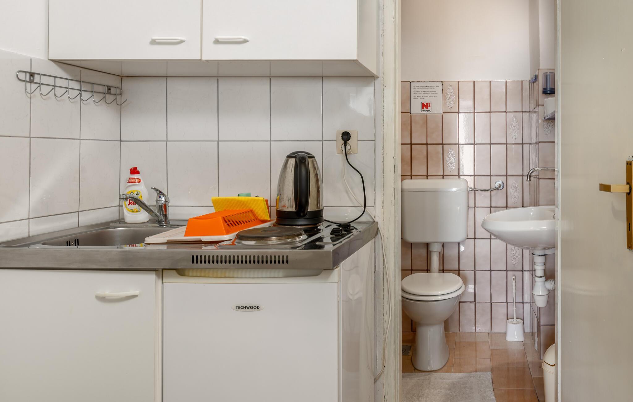 Dieses Studio bietet Ihnen ein behagliches Refugium, während Sie die idyllische Adriaküste erkunden und das mediterrane Klima genießen. Bereiten Sie Ihre Lieblingsgerichte in der funktionalen Küche zu und genießen Sie Ihre Mahlzeiten am heimeligen Essplatz. Schmieden Sie hier Ihre Pläne für den Tag oder lassen Sie den Abend bei einem Brettspiel ausklingen.