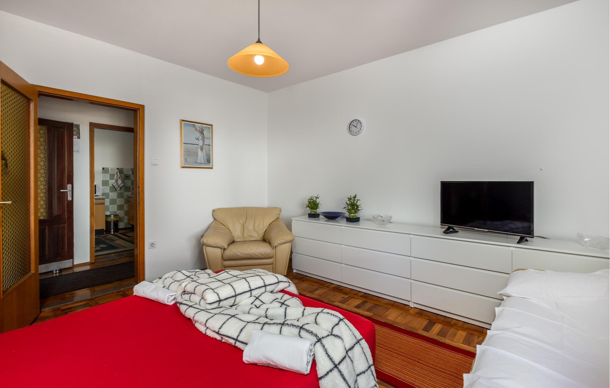 In einer ruhigen Wohngegend und unweit aller Annehmlichkeiten lädt Sie diese freundliche Ferienwohnung zu sonnigen Strandtagen mit Ihren Liebsten ein. Zaubern Sie kroatische Gerichte in der offenen Küche und nutzen Sie den großzügigen Wohnbereich für gesellige Spieleabende und fröhliche Mahlzeiten. Freuen Sie sich auf entspannte Lesestunden und erholsame Siestas nach einem langen Strandtag.