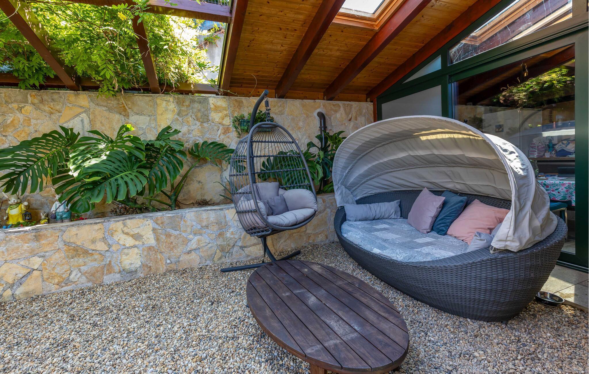 Treten Sie schon morgens mit einer frischen Tasse Kaffee auf die Terrasse. Genießen Sie den Blick in den Garten mit großen Oleanderbüschen und mediterranem Grün. Entspannen Sie sich im Hängesessel oder auf dem Daybed mit ihrer Urlaubslektüre oder beim Plaudern. Entzünden Sie abends den Grill und lassen Sie den Tag bei einem guten Glas Wein ausklingen.