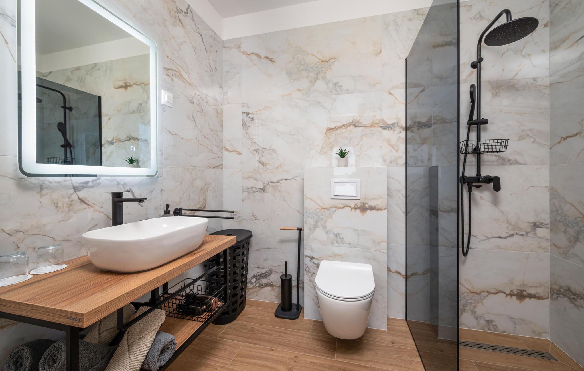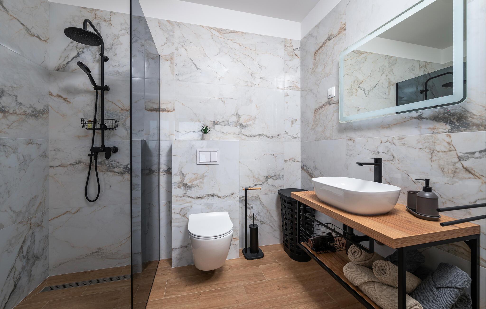 Badezimmer 5m2 (nr. 1) - WC. Warmes und kaltes Wasser. Dusche
