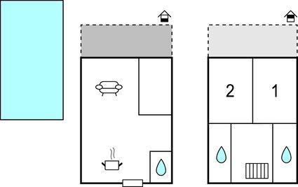 Schlafzimmer 13m2 (nr. 2) - 2 Schlafmöglichkeiten. (Doppelbett(en)). 1 Schlafmöglichkeit. (Schlafsofa,Matratze,Sonstiges).