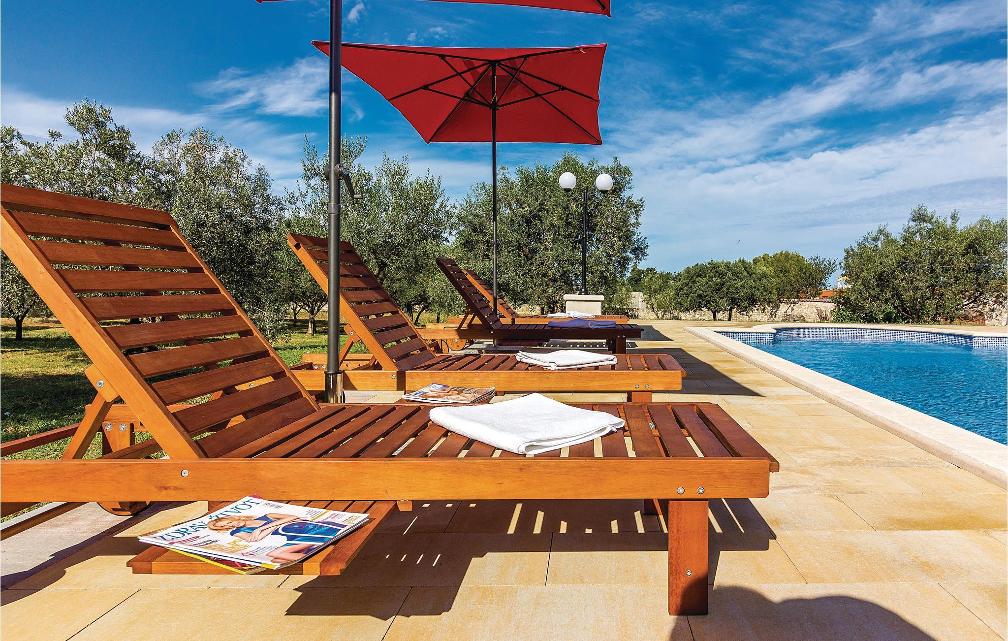 Verbringen Sie einen entspannten Urlaub in diesen praktisch und angenehm eingerichteten Ferienwohnungen in ruhiger Umgebung. Die kleineren Wohnungen CIF167 und CIF168 liegen im Erdgeschoß, wobei CIF167 ein Durchgangszimmer hat. Die etwas größere und komfortable CIF577 erstreckt sich im ersten Stock und besitzt einen schönen Meerblick von der Terrasse. Ein großzügiger Außenpool steht gemeinsam zur Verfügung. Besuchen Sie das romantische Fischerdorf Fazana, die römische Stadt Pula oder die Präsidenteninsel Brijuni. Die letzten 80 m zum Haus sind nicht asphaltiert.