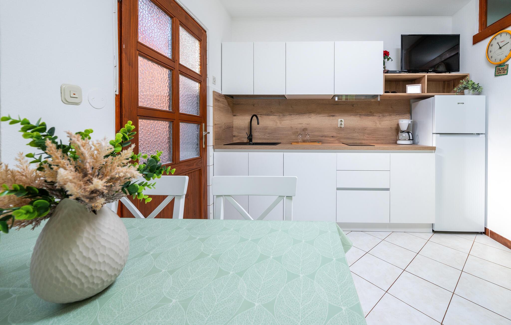 Die Küche verfügt über Warmwasser