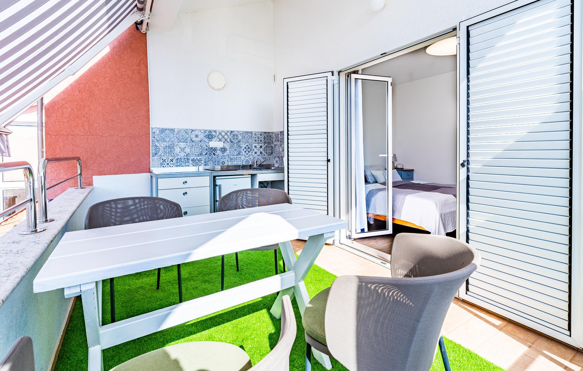 Nur wenige Schritten von der Altstadt und dem Hafen von Fazana entfernt heißt Sie dieses ansprechende Ferienhaus mit mehreren Ferienwohnungen willkommen. Die Wohnungen sind ideal für Paare oder kleine Familie, die sich in dem Studioapartments oder mehreren Zimmern mit liebevollem Design wohlfühlen. Freuen Sie sich auf eine private Terrasse oder den Gemeinschaftsgarten, wo Sie in der Sonne verweilen und sich wohlfühlen können.