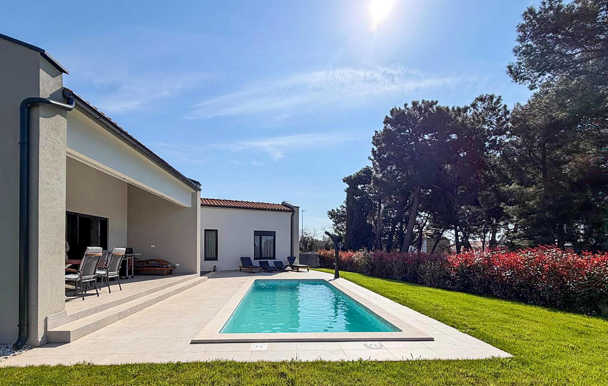 Verbringen Sie herrliche Stunden im Freien, nehmen Sie ein Sonnenbad auf der Terrasse, sehen Sie den Kindern beim Spielen zu, planschen Sie im Pool, servieren Sie leckere Grillgerichte und genießen Sie die lauen Sommerabende.