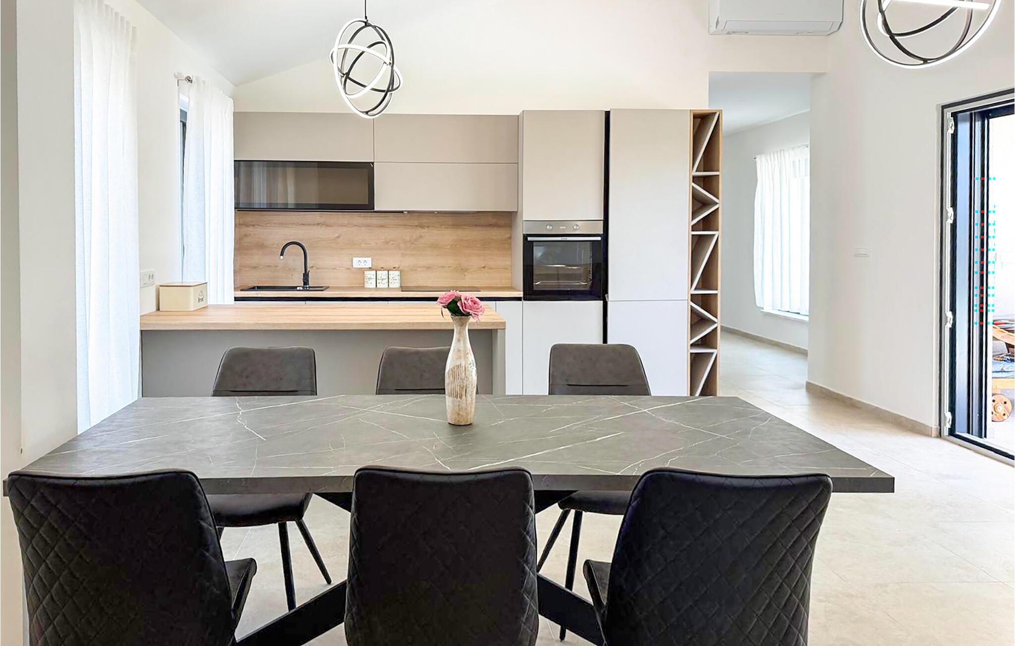 Willkommen in dem einladenden Haus, das Sie nur eine kurze Fahrt vom Meer entfernt begrüßt und den idealen Rahmen für einen erholsamen Urlaub mit Erkundungen der Umgebung und Platz für die ganze Familie bietet. Genießen Sie in den wohnlich und modern möblierten Räumen die gemeinsame Zeit und freuen Sie sich auf gemütliche Abende nach aktiven Tagen.
