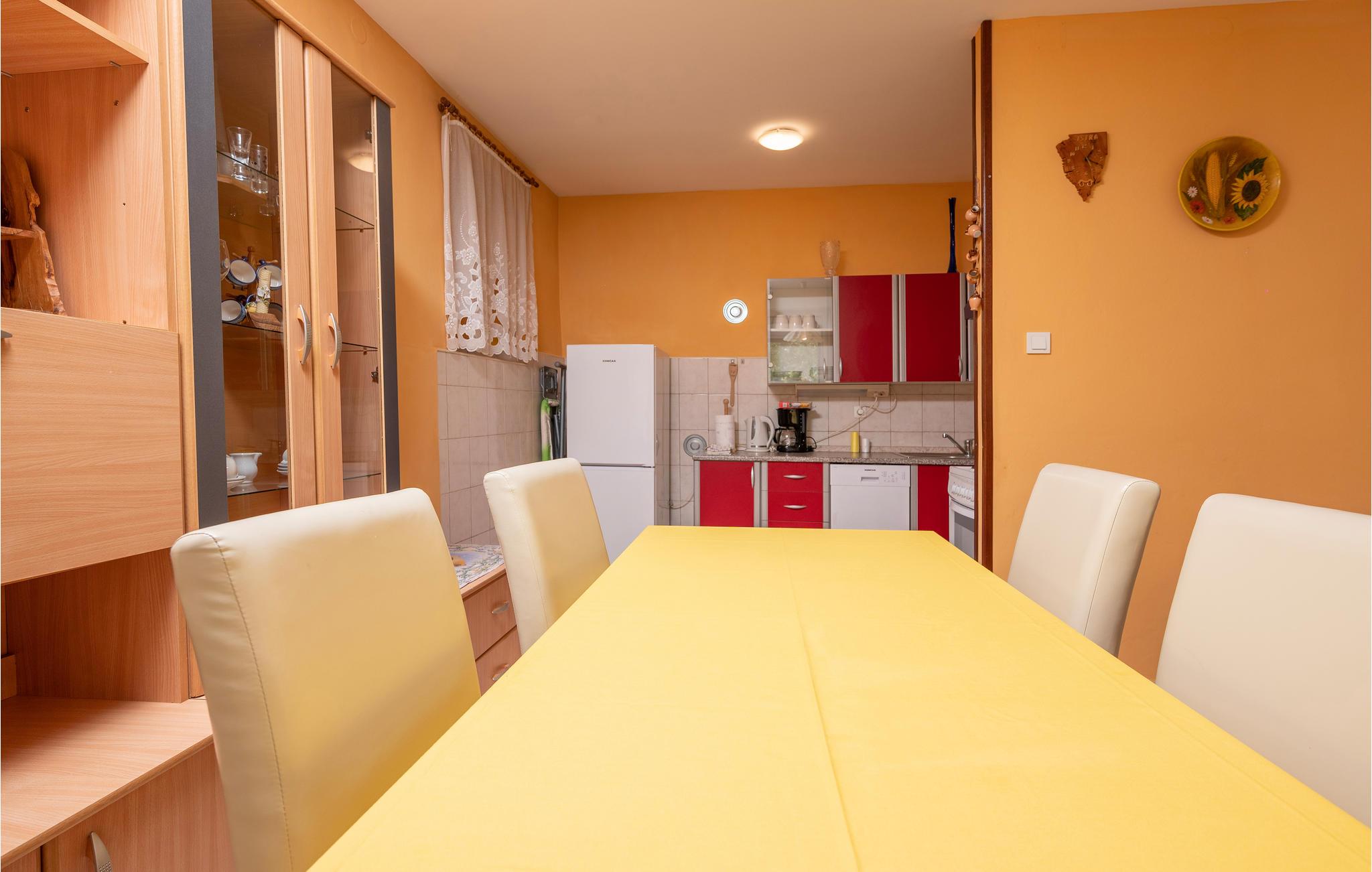 Nett eingerichtete Ferienwohnung im Erdgeschoß. Verbringen Sie gemütliche Stunden in den Sommerabenden auf der kleinen Terrasse. Diese Ferienunterkunft ist ideal für alle, die ohne Fahrzeug einen angenehmen Aufenthalt in einem der schönsten Fischerdörfer im Süden Istriens verbringen wollen. In Fazana gibt es mehrere hervorragende Fischrestaurants und während der Sommermonate haben Sie die Möglichkeit, verschiedene Veranstaltungen und Unterhaltungen zu erleben. Schlendern Sie entlang der Promenade am Meer und genießen Sie die schönen Strände. Besuchen Sie den Nationalpark auf der Insel Brijuni.