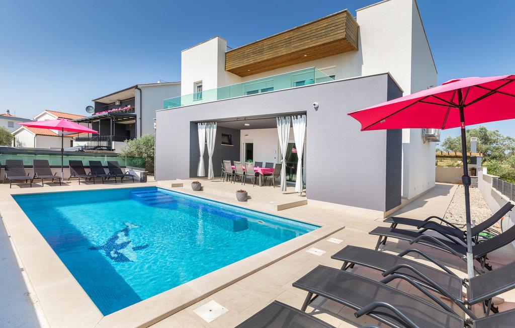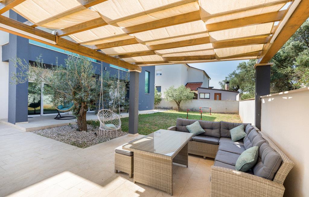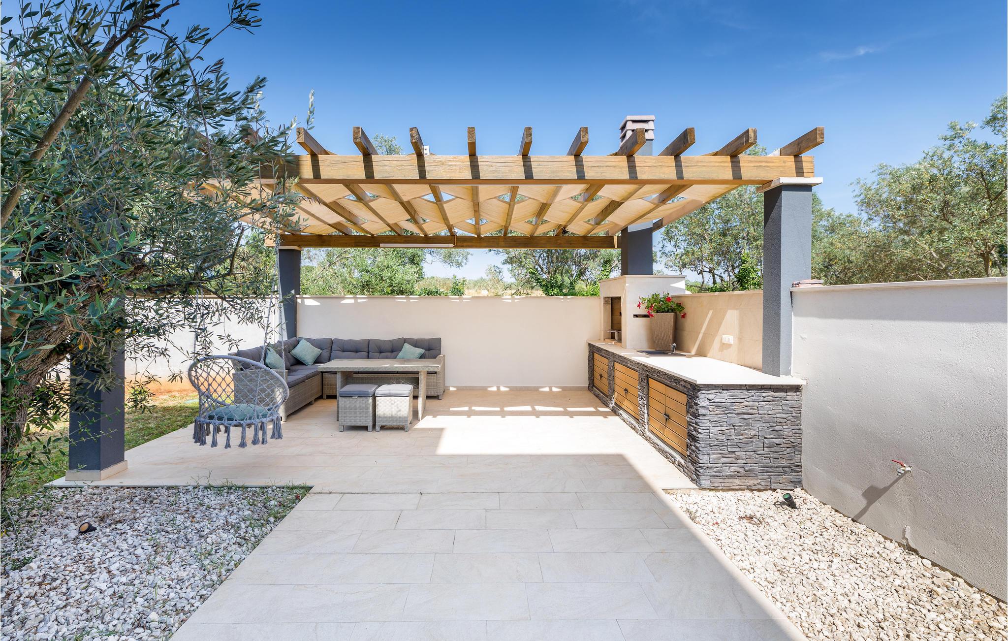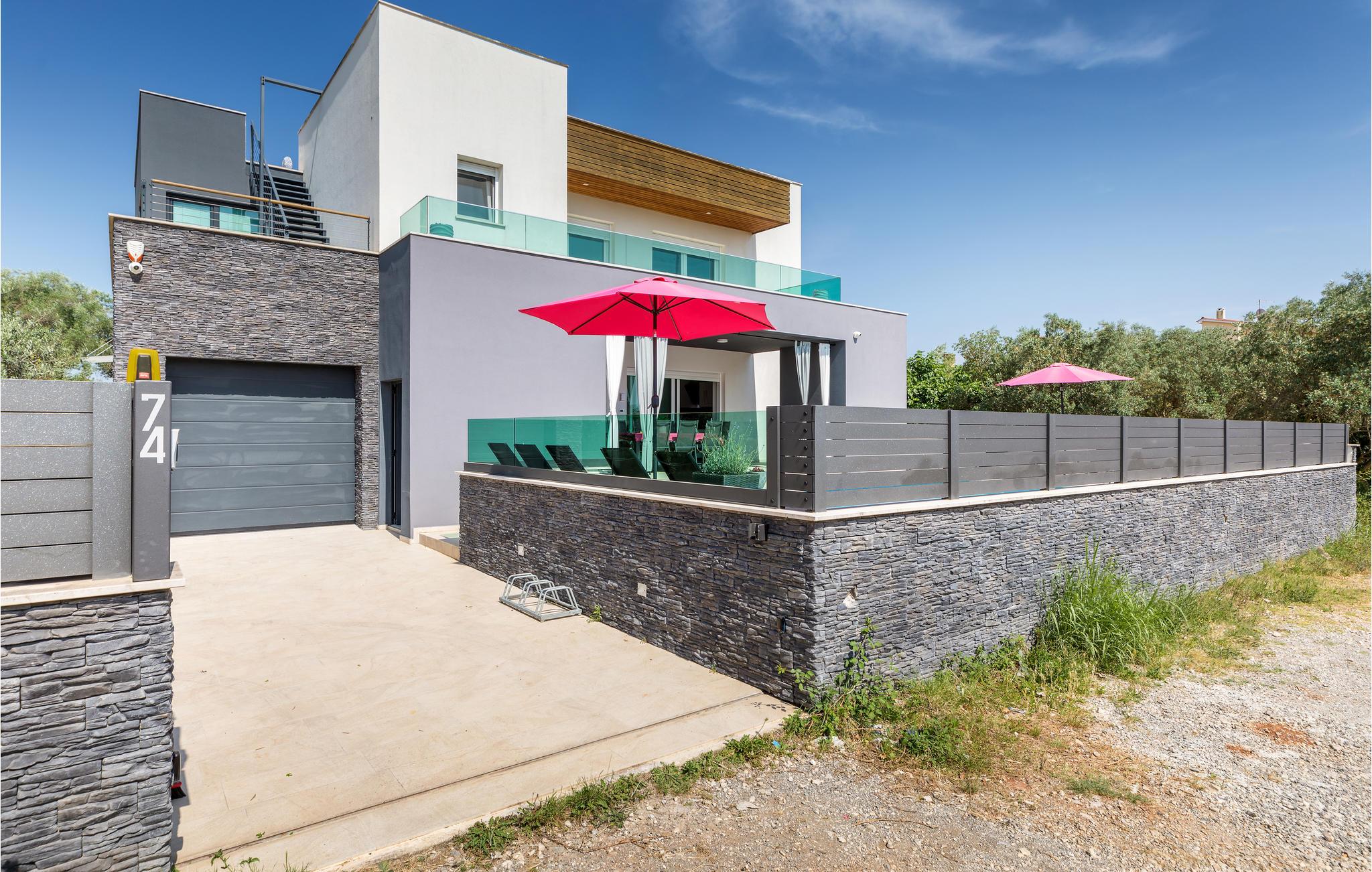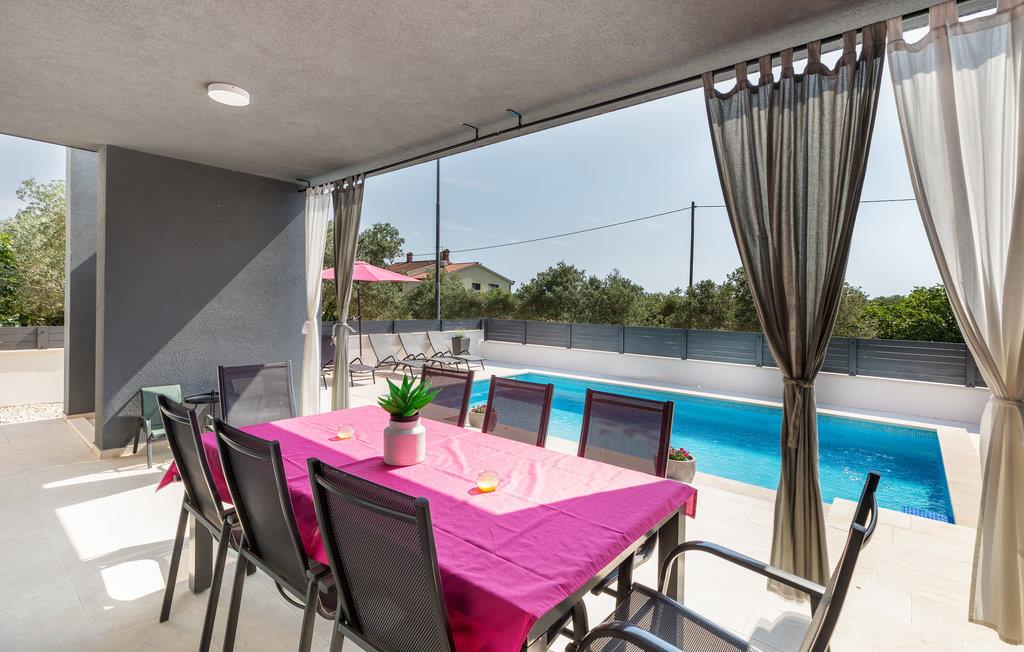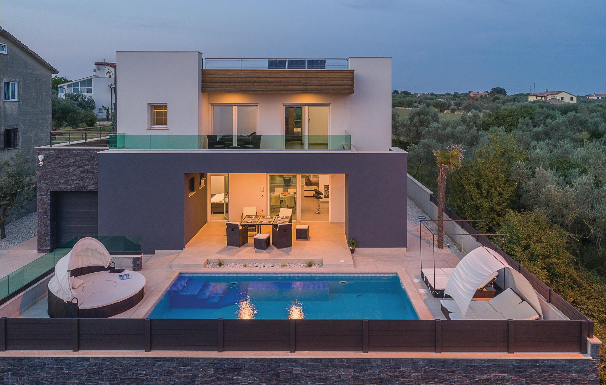 Dieses stilvolle Ferienhaus liegt im Ferienort Fažana und bietet eine Kombination aus Eleganz, Charme und Diskretion für entspannte Momente. Im Erdgeschoss gibt es ein Schlafzimmer und ein geräumiges Wohnzimmer, das Sie zur Terrasse und zum Pool führt. Die anderen Schlafzimmer mit Terrassen befinden sich auf der ersten Etage. Hier erreichen Sie über eine Außentreppe die Dachterrasse, wo Sie den einzigartigen Ausblick auf den Sonnenuntergang und die Inseln von Brijuni genießen können. Wir empfehlen eine eintägige Bootsfahrt von Fažana aus zu den berühmten Brijuni-Inseln. Aufgrund des extrem milden mediterranen Klimas, der natürlichen Schönheit und des klaren Meeres ist dieser romantische Ort die perfekte Wahl für Ihren Urlaub. Ca. 150 m zum Haus führt eine nicht asphaltierte Straße.