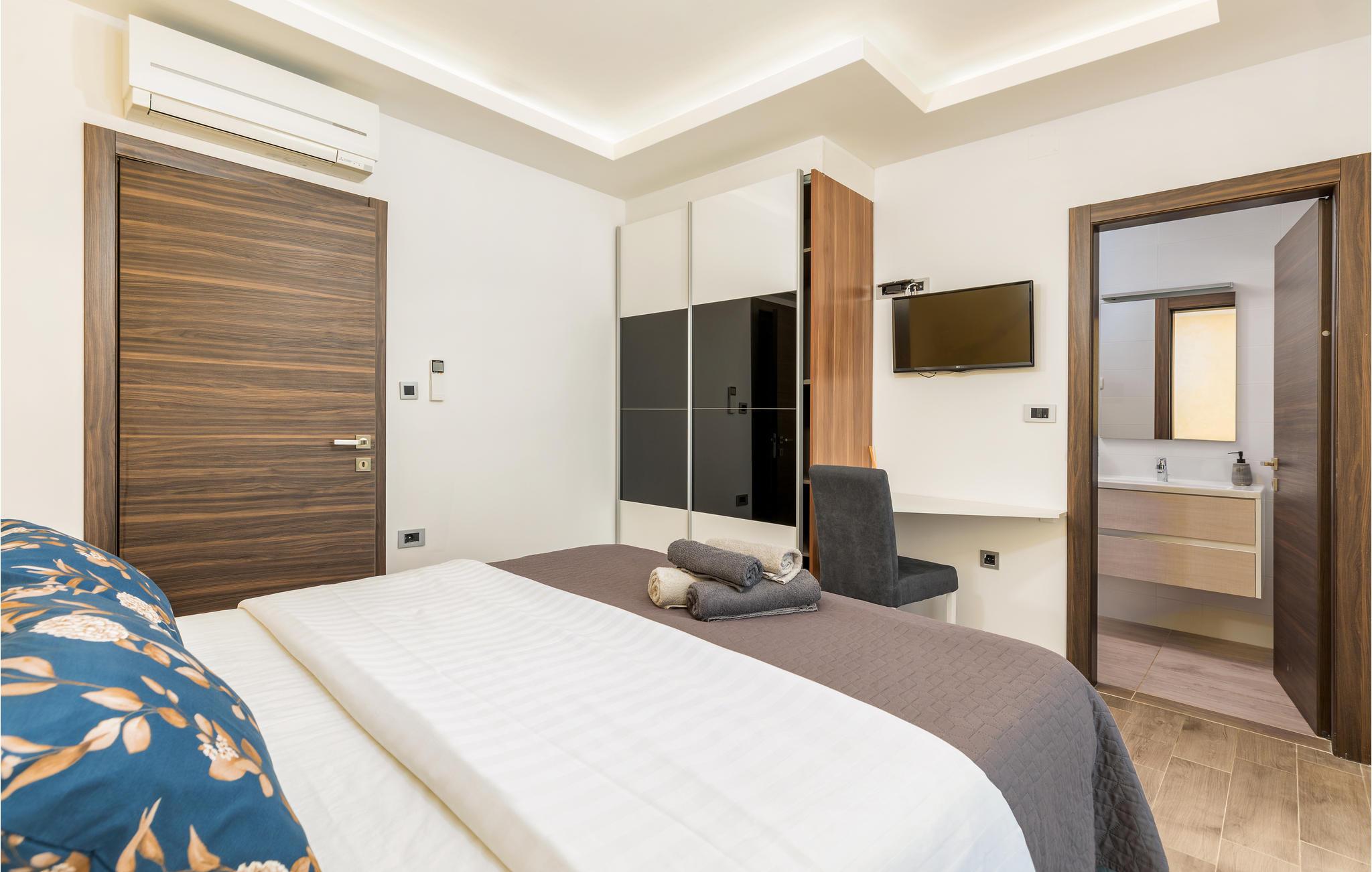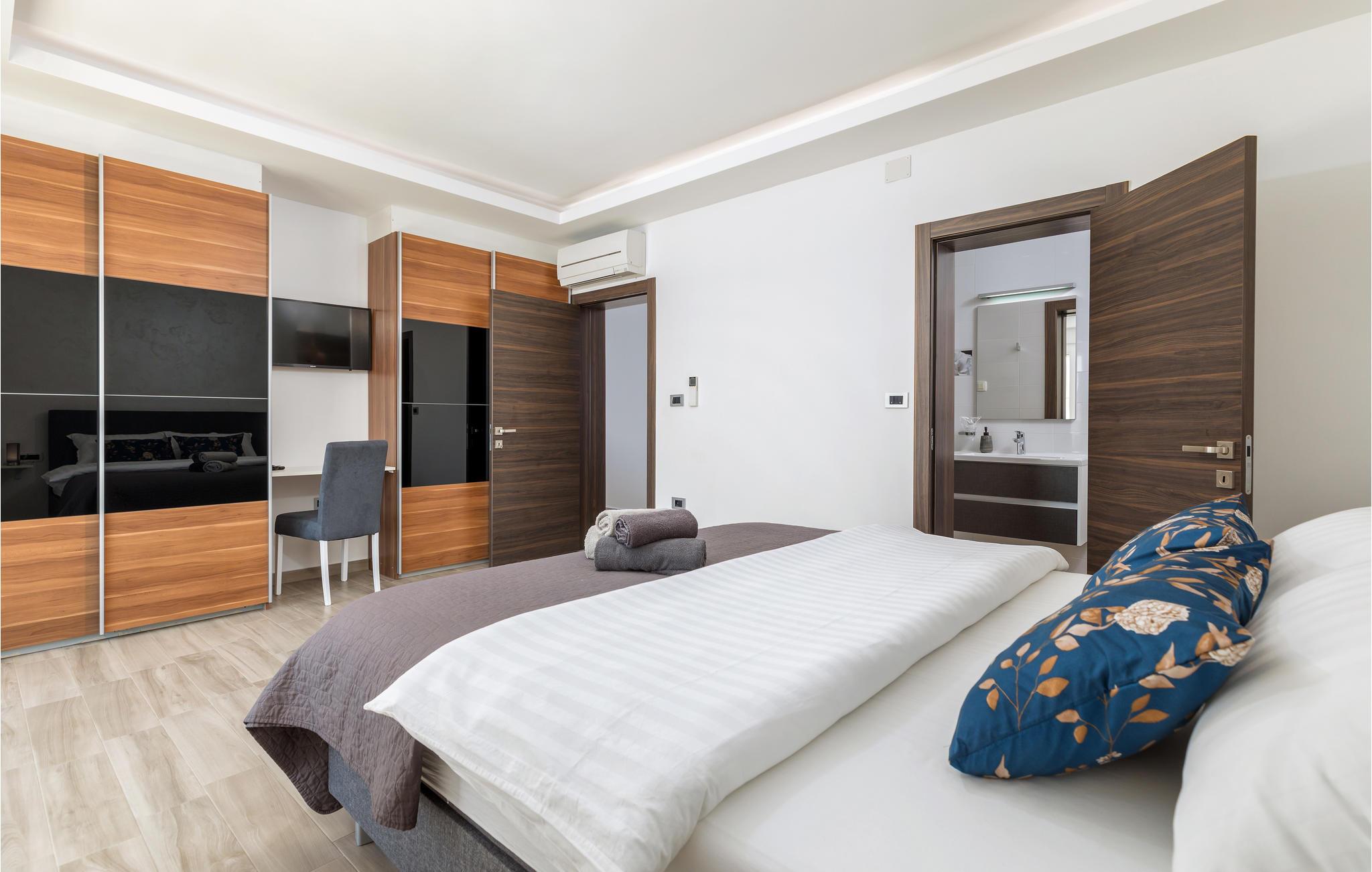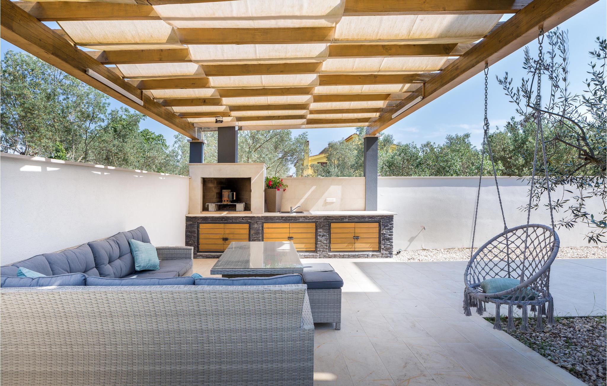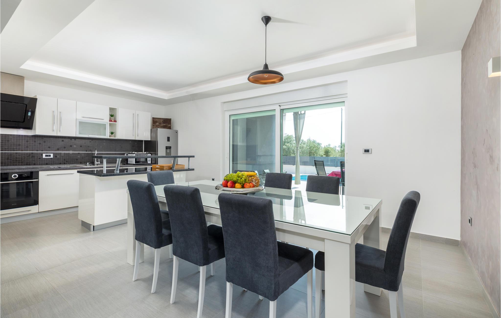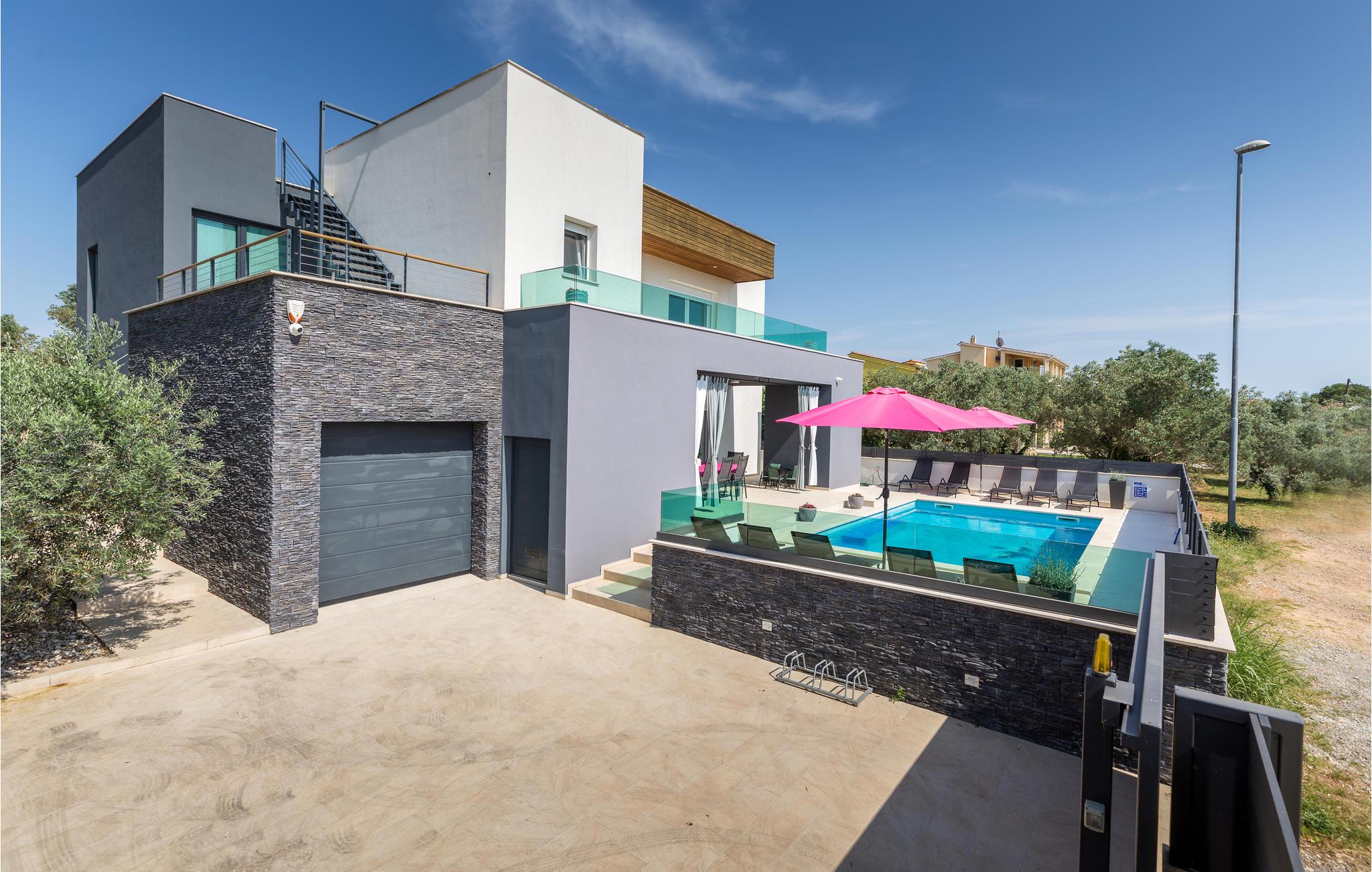 Dieses stilvolle Ferienhaus liegt im Ferienort Fažana und bietet eine Kombination aus Eleganz, Charme und Diskretion für entspannte Momente. Im Erdgeschoss gibt es ein Schlafzimmer und ein geräumiges Wohnzimmer, das Sie zur Terrasse und zum Pool führt. Die anderen Schlafzimmer mit Terrassen befinden sich auf der ersten Etage. Hier erreichen Sie über eine Außentreppe die Dachterrasse, wo Sie den einzigartigen Ausblick auf den Sonnenuntergang und die Inseln von Brijuni genießen können. Wir empfehlen eine eintägige Bootsfahrt von Fažana aus zu den berühmten Brijuni-Inseln. Aufgrund des extrem milden mediterranen Klimas, der natürlichen Schönheit und des klaren Meeres ist dieser romantische Ort die perfekte Wahl für Ihren Urlaub. Ca. 150 m zum Haus führt eine nicht asphaltierte Straße.
