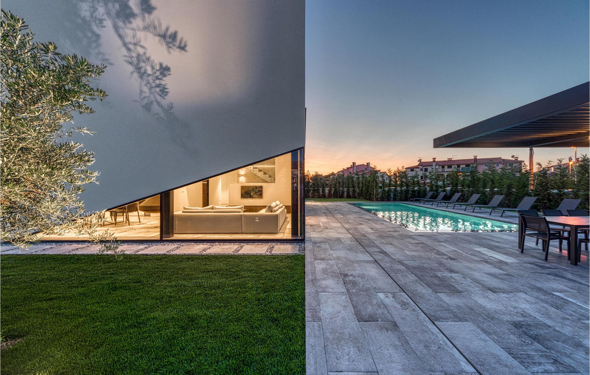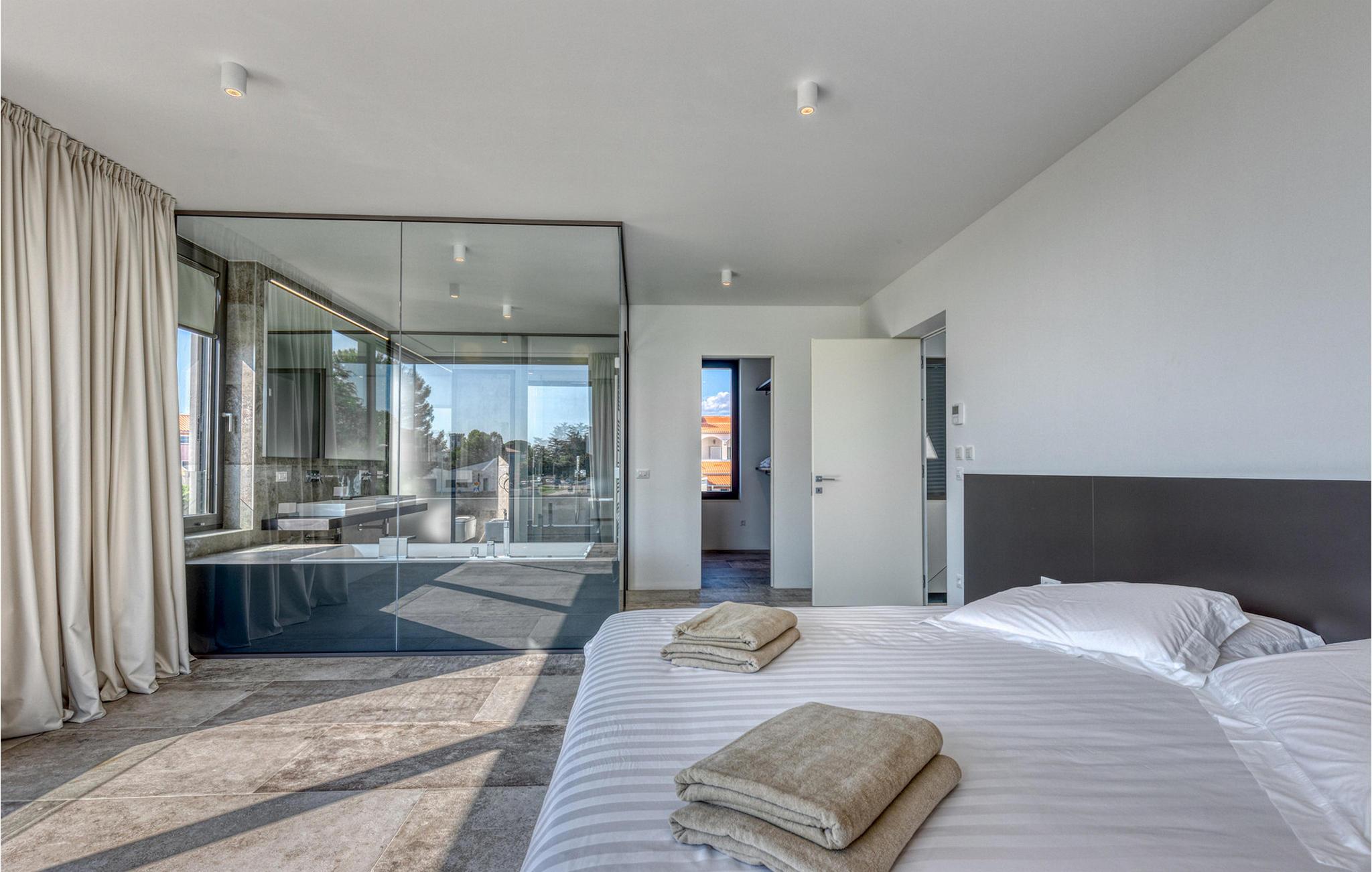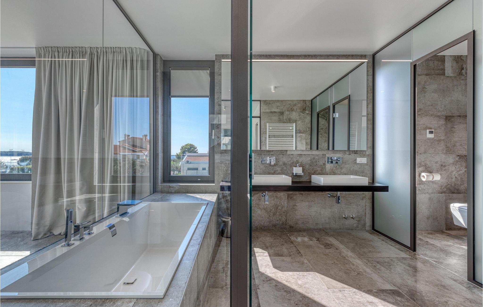 Die moderne, neu erbaute Villa A befindet sich in der charmanten Stadt Fazana im westlichen Teil der Halbinsel Istrien und wird Sie mit Luxus, Komfort und entspannter Atmosphäre begeistern. Es repräsentiert alles, wovon Sie schon immer geträumt haben, damit Sie sich gemeinsam mit Ihrer Familie oder einer Gruppe Ihrer liebsten Freunde voll und ganz dem Genuss hingeben können. Villa A verfügt über 350 m2 und bietet Unterkunft für 8 Gäste. Das luftige, von ungewöhnlichen Fenstern umgebene Wohnzimmer ist von der Sonne durchflutet und mit einem bequemen Sofa und einem interessanten modernen Kamin ausgestattet. Das luxuriöse Design wird durchdrungen von einer voll ausgestatteten Küche, 5 Badezimmern, einem Fitnessstudio und sogar einem überdachten Außengrill, sodass Sie zu jeder Tageszeit köstliche Mahlzeiten genießen können. Es gibt auch einen 40 m2 großen Pool, der von Sonnenliegen umgeben ist, und von der Terrasse aus können Sie einen wunderschönen Blick auf das Meer und die wunderschönen Brijuni-Inseln genießen, die Sie mit ihrer Schönheit und ihrem Reichtum an Flora und Fauna verzaubern werden. Das Erdgeschoss ist rollstuhlgerecht. Die Lage der Villa ist ebenso außergewöhnlich wie die Villa selbst und bietet Ihnen unzählige Möglichkeiten, diesen Teil Kroatiens kennenzulernen. Sie werden keinen Fehler machen, wenn Sie auf Weinstraßen oder Olivenölstraßen ins Landesinnere Istriens fahren oder die reiche Kultur mittelalterlicher Städte kennenlernen, Golf spielen oder sich in einem Wasserpark vergnügen möchten. Der Küstenabschnitt bietet zahlreiche Aktivitäten auf dem Meer und charmante Städte und Orte, die Sie mit ihrem kulturellen und gastronomischen Angebot begeistern werden. *Der Pool ist in der Zeit vom 15. April bis 1. Oktober beheizt. Bitte beachten Sie, dass diese Unterkunft keine Jugendgruppen oder Junggesellenabschiede akzeptiert. Eine Jugendgruppe in dieser Unterkunft besteht aus Personen unter 30 Jahren. Buchen Sie diese Unterkunft nicht, wenn Sie eine Jugendgruppe oder ein Junggesellenabschied sind, da Ihre Buchung nach der Buchung abgelehnt wird, was auch bei der Ankunft in der Unterkunft oder während Ihres Aufenthalts der Fall sein kann, und Sie keine Rückerstattung erhalten.