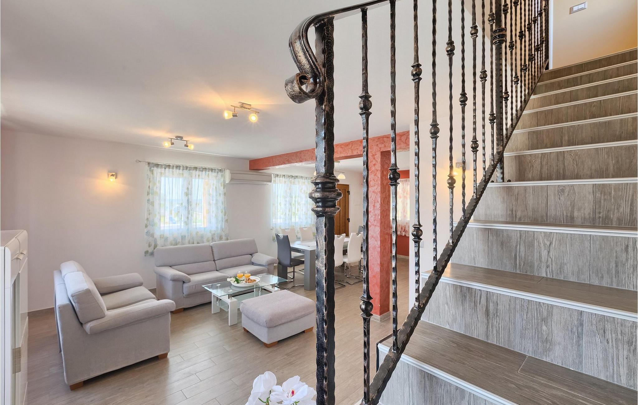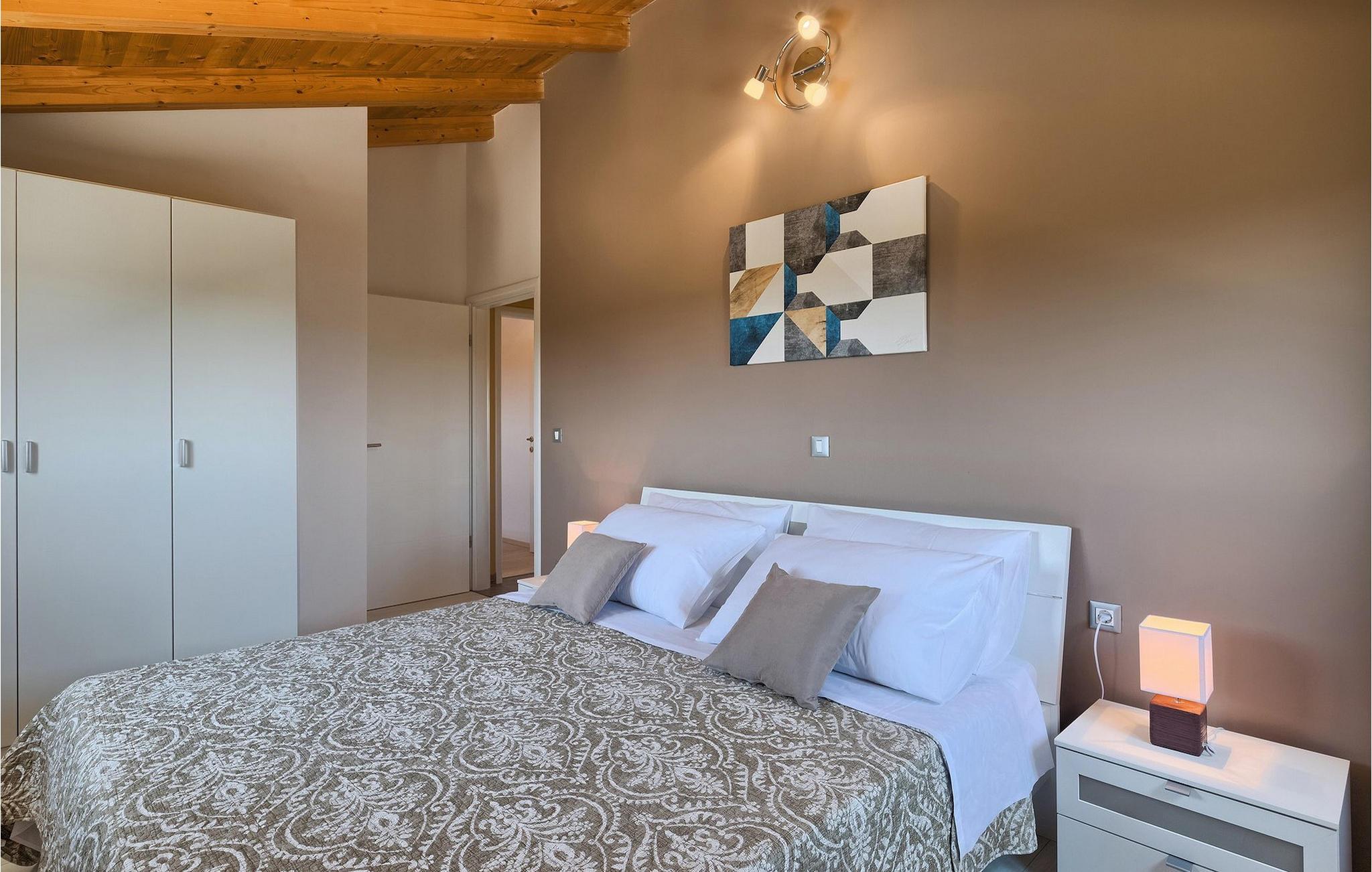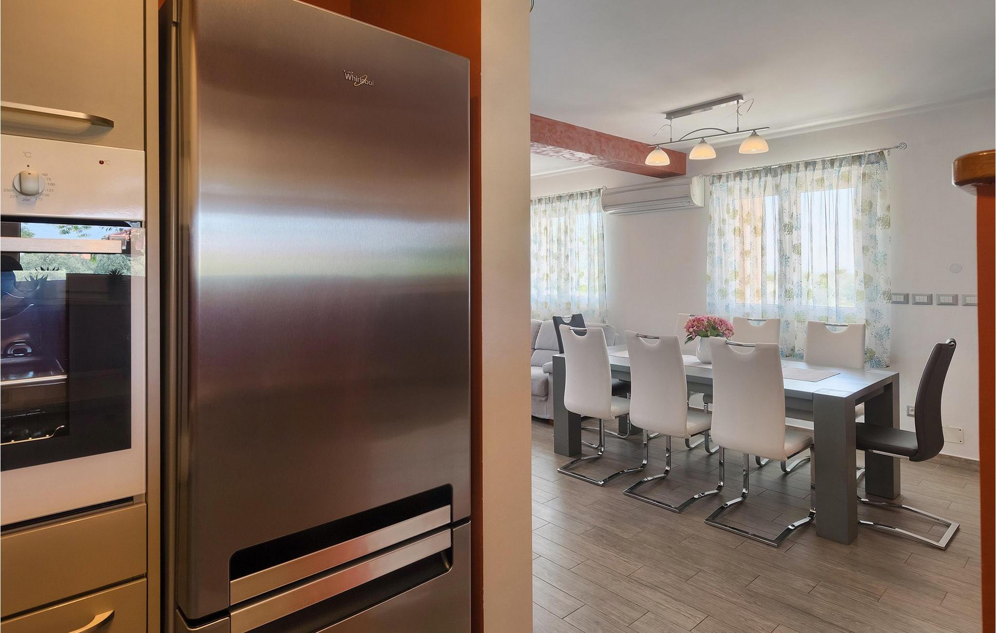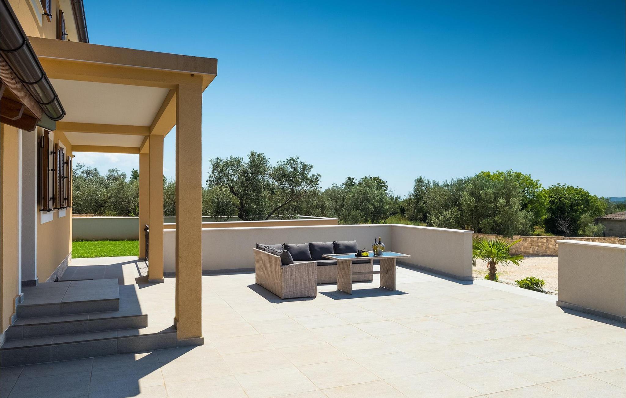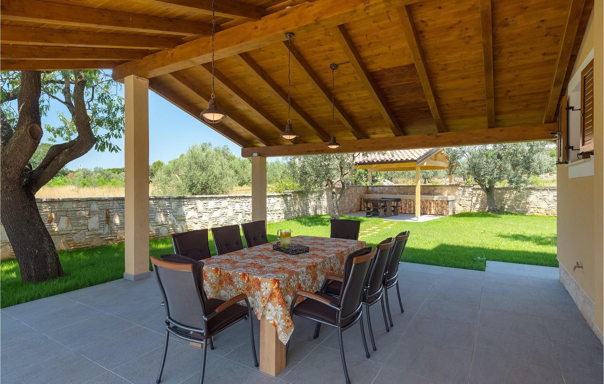 Diese wunderschöne Villa befindet sich in der ländlichen Umgebung von Pula, mit Blick auf die herrliche Adria und die Brioni Inseln, einem der Nationalparks Kroatiens. Die Villa ist für bis zu sechs Personen geeignet, da sie aus drei Schlafzimmern besteht. Zwei Schlafzimmer verfügen über ein Doppelbett, und ein über zwei Einzelbetten. Alle Schlafzimmer befinden sich im Obergeschoss der Villa. Im Erdgeschoss finden Sie ein großes Wohnzimmer mit gemütlichen Sofas, einem Essbereich mit Kamin und einer völlig ausgestatteten Küche. Genießen Sie Ihre Mahlzeiten vom Gasgrill im Schatten der überdachten Terrasse, mit Blick auf den Poolbereich. Die Villa befindet sich auf einem 2300 m2 großen Grundstück, ist komplett umzäunt und bietet drei private Parkplätze. Entspannen Sie sich auf den Liegestühlen neben dem schönen privaten Pool, wahrend die Kleinsten auf den Schaukeln und der Rutsche Spaß haben. Um die Umgebung zu erkunden, stehen Ihnen vier Fahrräder zur Verfügung. Villa Felice bietet alles für einen angenehmen Familienurlaub, nah zum Meer und allen notwendigen Annehmlichkeiten. Die Villa ist klimatisiert und verfügt über wifi. Beachten Sie bitte: Jugendgruppen sind nicht erlaubt.