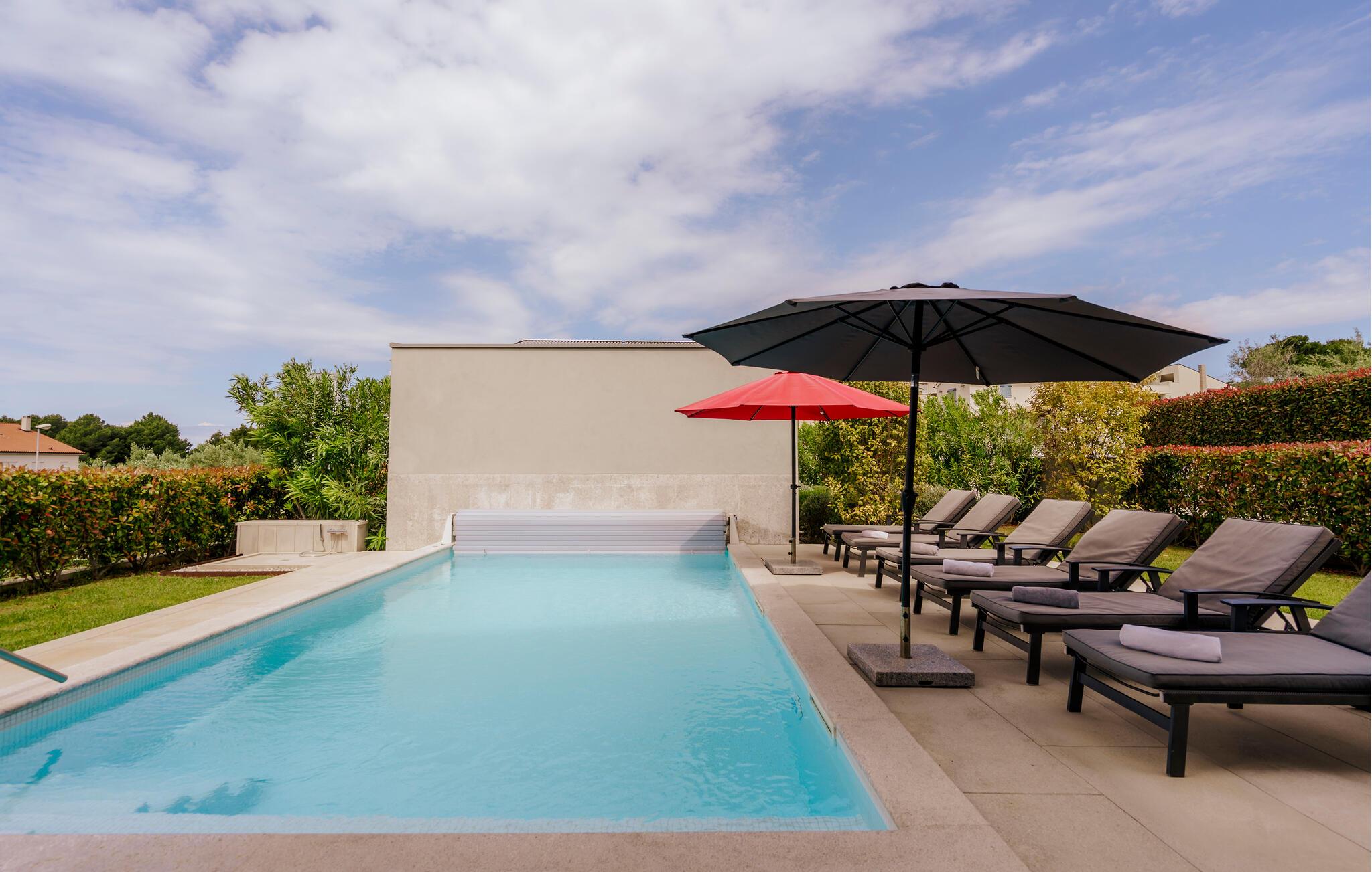 Villa Mima ist eine wunderschöne Villa in Fažana, perfekt geeignet für eine Familie oder Freundesgruppe von 6 Gästen. Die Villa bietet Gästen einen großen Garten und einen privaten Pool für die dringend benötigte Erfrischung an heißen Sommertagen. Erwachsene können es genießen, auf den Liegestühlen zu entspannen und die warme Mittelmeersonne zu genießen, während die Kinder im Pool spielen. Sie können traditionelle Kroatische Speisen auf dem Grill zubereiten und diese Köstlichkeiten im überdachten Essbereich draußen genießen. Für zusätzlichen Spaß stehen den Gästen Citybikes und E-Bikes sowie gegen Aufpreis E-Motorräder zur Erkundung der Umgebung zur Verfügung. Das Innere der Villa Mima ist stilvoll eingerichtet und sehr gut ausgestattet. Dabei finden die Gäste im Erdgeschoss ein geräumiges Wohnzimmer mit TV und Kamin, eine gut ausgestattete Küche und einen gemütlichen Essbereich sowie ein separates WC. Auf der ersten Etage befinden sich 3 Schlafzimmer und ihre 3 en-suite Badezimmer. 2 Schlafzimmer verfügen über Doppelbetten, während das 3. Schlafzimmer über 2 Einzelbetten verfügt, die zusammengeschoben werden können. Jedes Badezimmer verfügt über eine Dusche, während alle Schlafzimmer über einen Fernseher verfügen und voll klimatisiert sind. Die Gäste können ihren ersten Morgenkaffee von den Balkonen im Obergeschoss mit schönem Meerblick genießen. Die Villa Mima liegt außerdem nur 400 m vom Strand entfernt, was zusätzlichen Spaß für die ganze Reisegruppe bedeutet. Wenn Sie während Ihres Urlaubs in Istrien hervorrageFažana ist ein ausgezeichnetes Urlaubsziel für alle, die schöne Strände, klares Meer, ein warmes mediterranes Klima und freundliche und hilfsbereite Einheimische suchen. Dieses Urlaubsziel hat eine interessante Geschichte und Tradition, seine Straßen sind gefüllt mit dem, was viele als "wahren istrischen Charme" bezeichnen, und die Stadt hat ein ausgezeichnetes Angebot für alle Gastronomieliebhaber. Fažana, wie auch Istrien im Allgemeinen, ist bekannt für sein Olivenöl, Fischgerichte, Trüffelgerichte und eine Vielzahl anderer traditioneller Spezialitäten. Sie können in exquisiten Restaurants direkt an der Küste der Stadt speisen und die warmen Sommerabende mit Ihrer Liebsten bei einem romantischen Spaziergang genießen. Die natürliche Schönheit dieser Stadt und der umliegenden Strände sollte nicht übersehen werden. Viele Strände sind für Kinder geeignet, sodass dem Familienurlaub Ihrer Träume nichts im Wege stehen sollte. Diese Lage ist auch ideal für Tagesausflüge in andere großartige Städte wie Pula und Rovinj sowie den atemberaubenden Nationalpark Brijuni. Sie werden es nicht bereuen, wenn Sie Ihren Urlaub in Istrien und Fažana verbringen. Istrien wartet auf Sie!