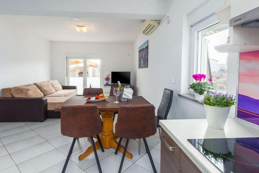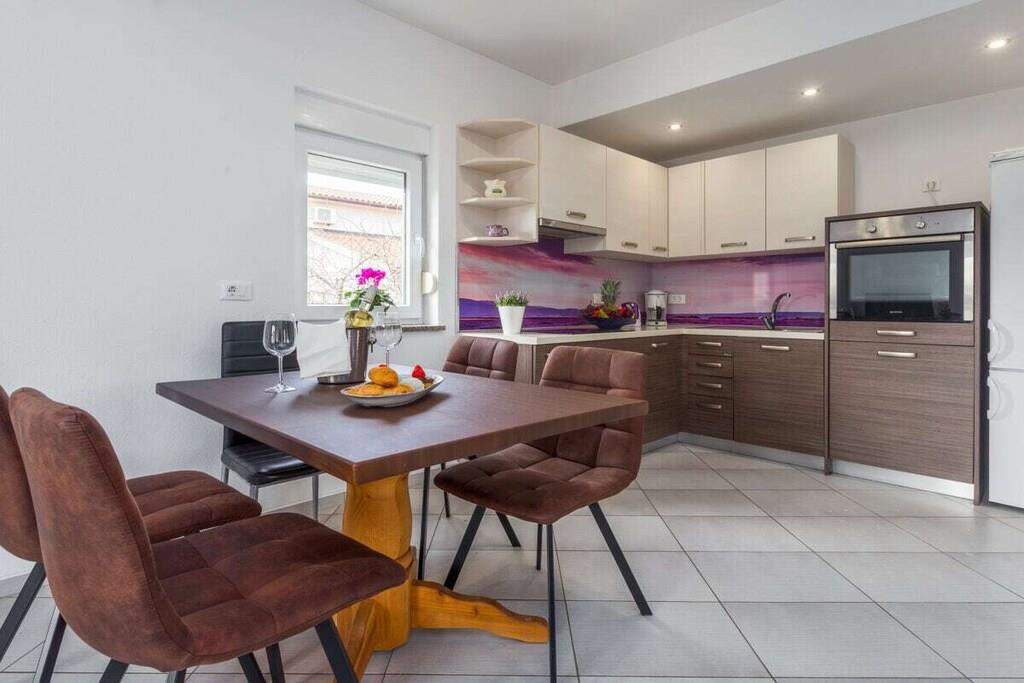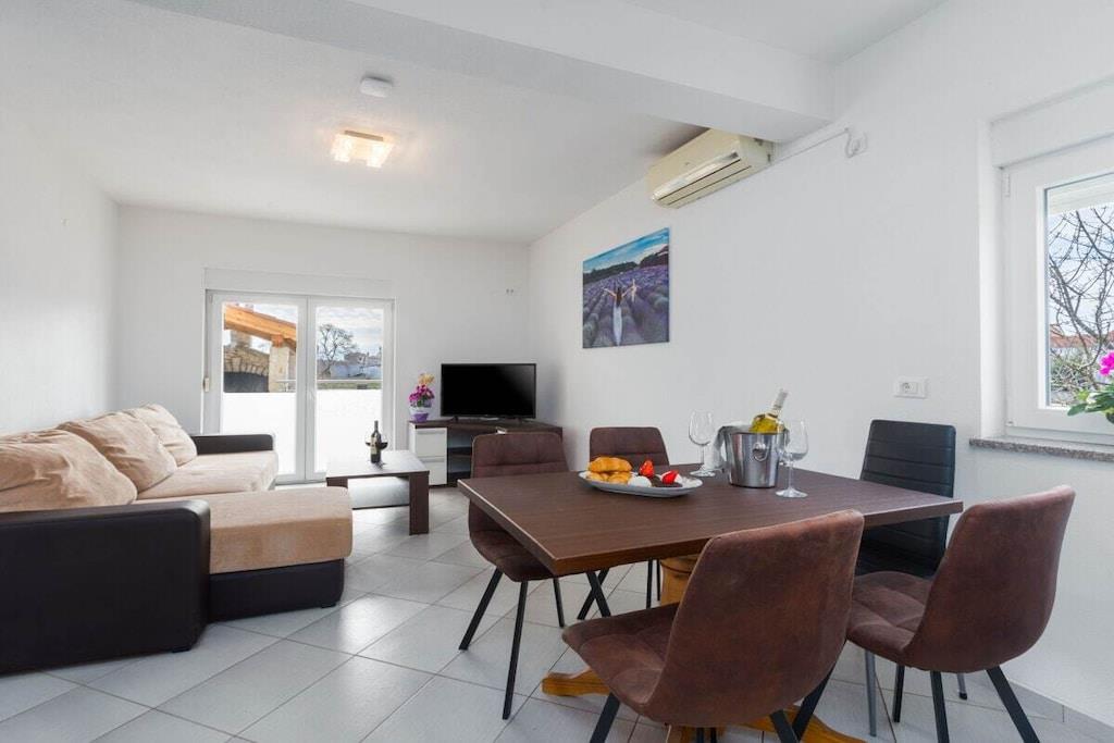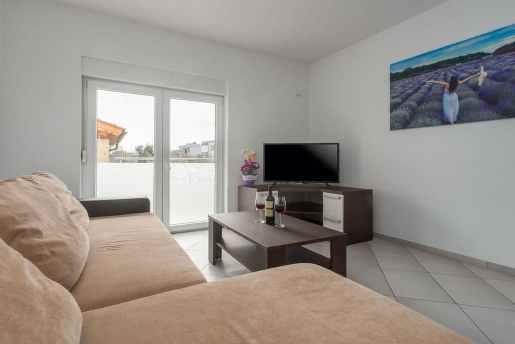Villa Vita liegt in Valbandon – Fažana, 1,5 km vom Strand entfernt. Es gibt 3 größere, moderne und voll ausgestattete Apartments und 3 Studio-Apartments auf 3 Ebenen. Im Garten gibt es eine Sitzecke mit Grill, einen Pool und einen Parkplatz. Das Apartment Lavanda befindet sich im Erdgeschoss und besteht aus 2 Schlafzimmern, Bad, Küche, Wohnzimmer und Balkon. Die Wohnung wurde im Jahr 2020 renoviert.