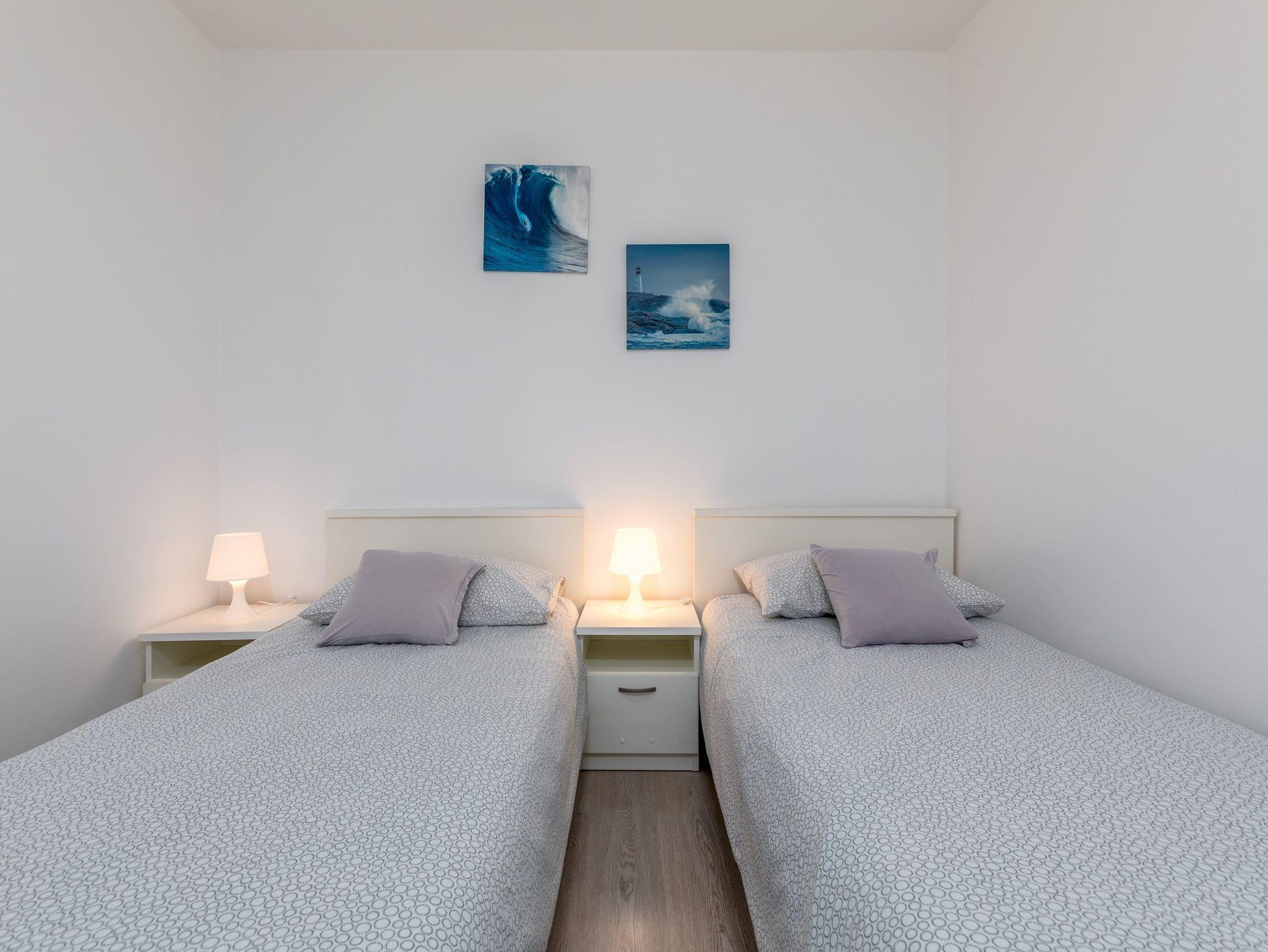 Ferienwohnung bietet Platz für 4 Gäste. Die Betten sind in Schlafzimmern, die es 2 gibt, innerhalb einer Gesamtfläche von 40m2, angeordnet. Die Gäste haben eine eigene Terrasse zur Verfügung, auf der sie in warmen Sommernächten genießen können. Es ist erlaubt, Speisen auf dem Gemeinschafts-Grill vorzubereiten. IM PREIS INBEGRIFFEN: Kurtaxe, Endreinigung, Klimatisierung, Parkplatz, Internet, Kinderbett, Bügeleisen, Bügelbrett, Föhn. VERBINDLICHE ZUSÄTZLICHE KOSTEN: Aufzahlung für Kurzaufenthalte (prozentualer Zuschlag pro Nächtigungsanzahl: 30% - 1, 20% - 2, 10% - 3). UNVERBINDLICHE ZUSÄTZLICHE KOSTEN: Zentralheizung (5,00 € pro Nacht). Die Verfügbarkeit zusätzlicher Dienstleistungen in Ihrem reservierten Termin und die Preise derselben (falls nicht aufgeführt) müssen im Voraus überprüft werden. Zusätzliche Dienstleistungen die in der Zahlungsaufforderung nicht aufgeführt sind werden direkt beim Vermieter bezahlt, angenommen der Gast nutzt auch diese.