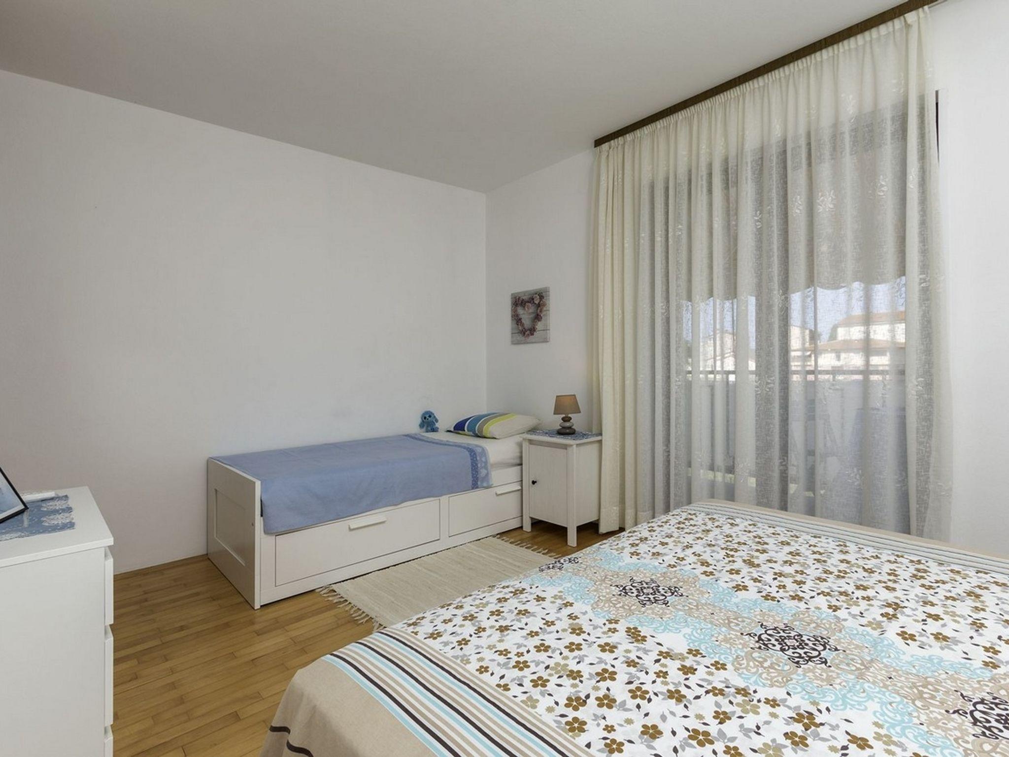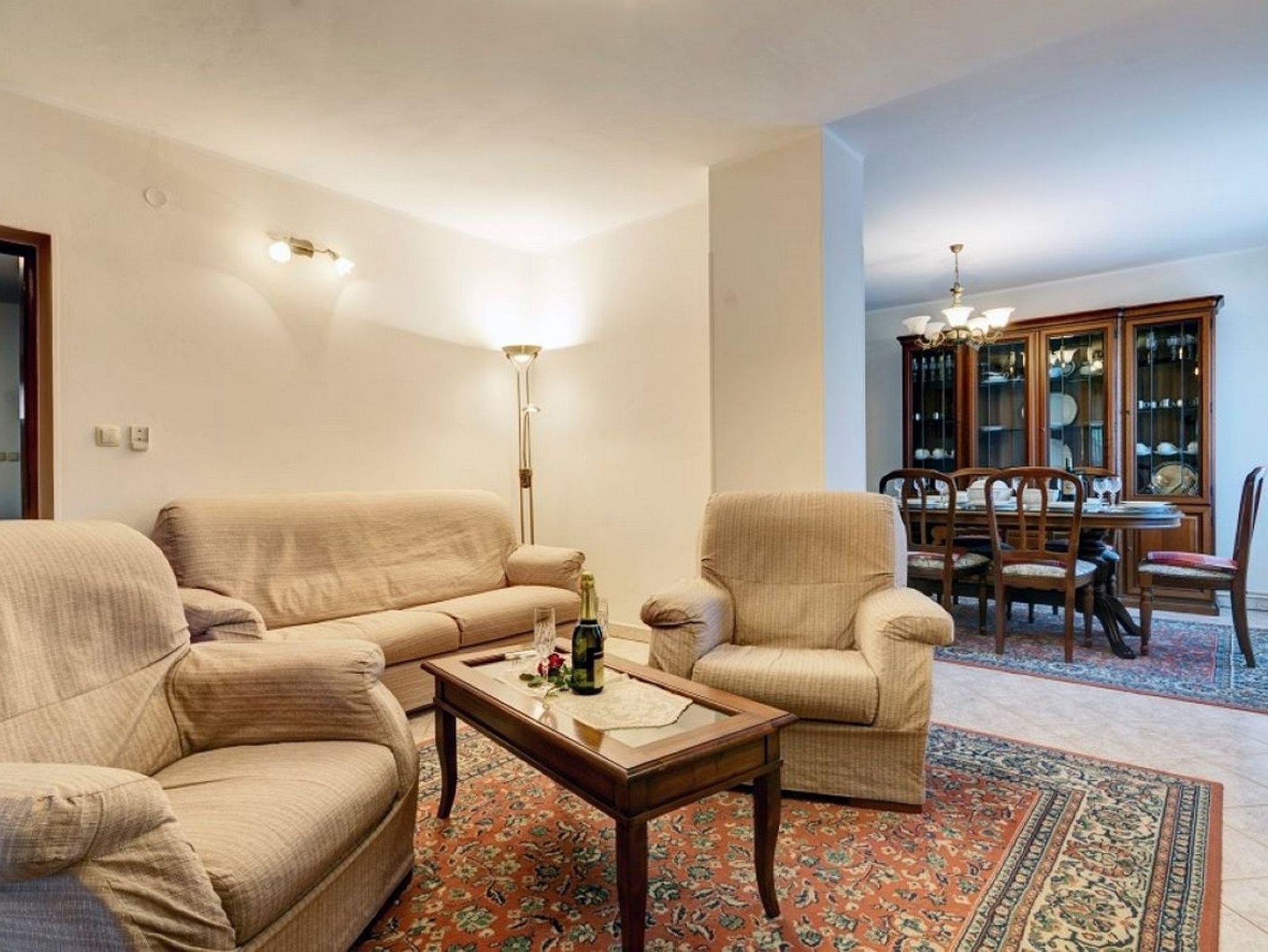 Ferienwohnung bietet Platz für 8 Gäste. Die Betten sind in Schlafzimmern, die es 3 gibt, innerhalb einer Gesamtfläche von 100m2, angeordnet. Die Gäste haben eine eigene Terrasse zur Verfügung, auf der sie in warmen Sommernächten genießen können. Für vollen Genuss und Entspannung gibt es einen privaten Grill für Gäste dieser Unterkunft. Unterkunftseinheit hat Räume, die von dem Rest der Einheit abgetrennt werden. IM PREIS INBEGRIFFEN: Kurtaxe, Endreinigung, Klimatisierung, Zentralheizung, Parkplatz, Internet, Kinderbett, Bügeleisen, Bügelbrett, Föhn. Die Verfügbarkeit zusätzlicher Dienstleistungen in Ihrem reservierten Termin und die Preise derselben (falls nicht aufgeführt) müssen im Voraus überprüft werden. Zusätzliche Dienstleistungen die in der Zahlungsaufforderung nicht aufgeführt sind werden direkt beim Vermieter bezahlt, angenommen der Gast nutzt auch diese.