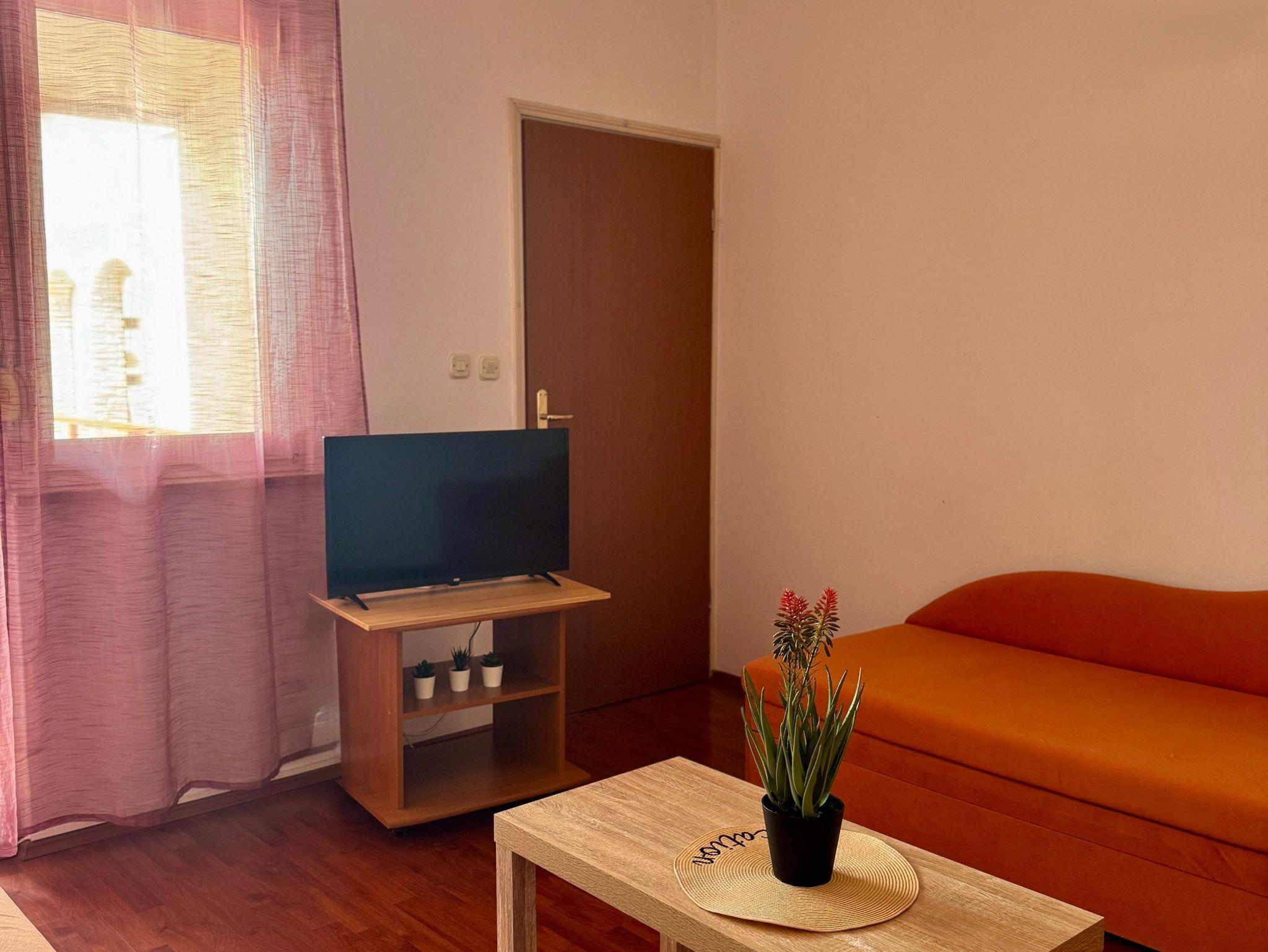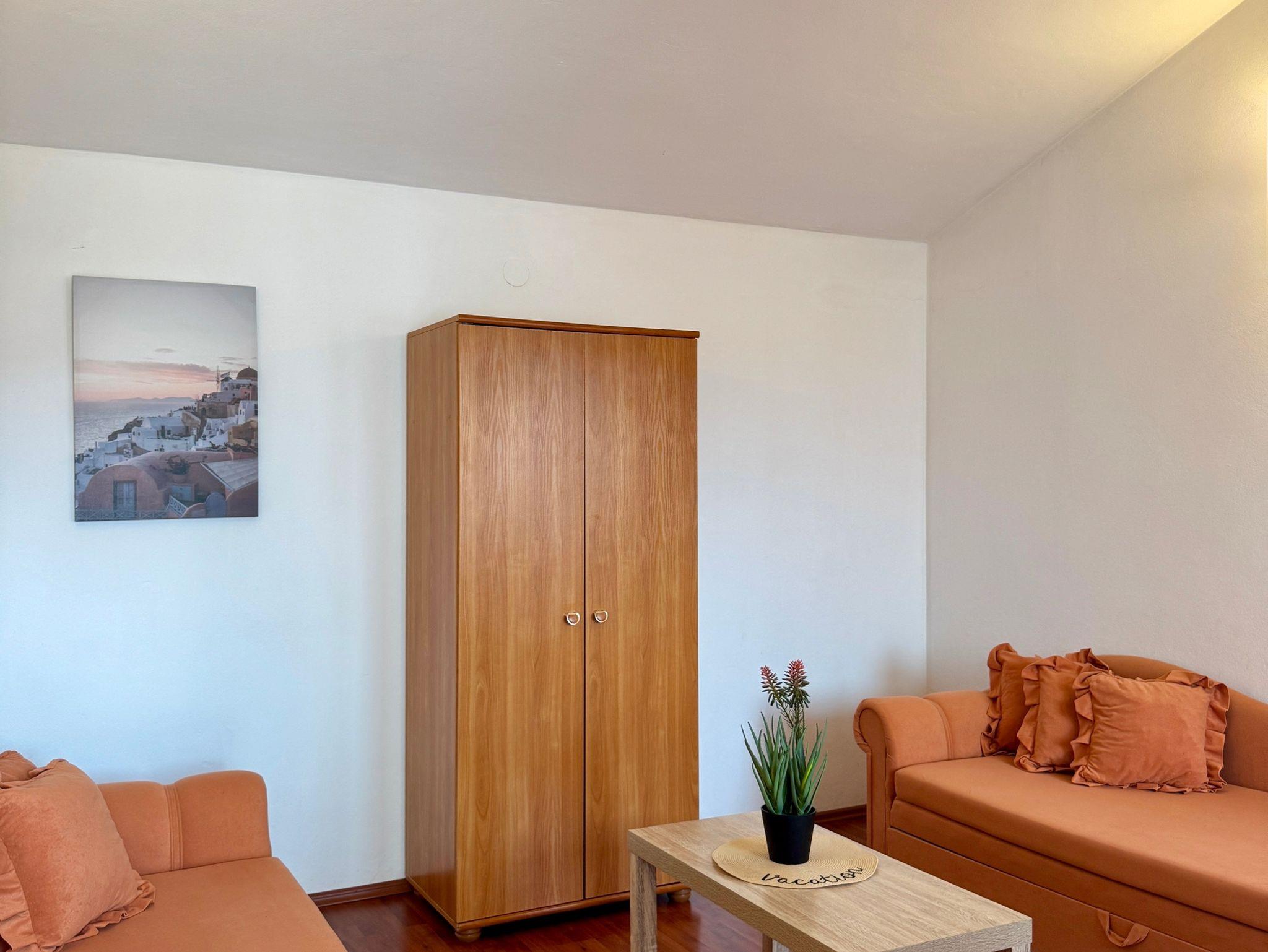 Ferienwohnung bietet Platz für 4 Gäste. Die Betten sind in Schlafzimmern, die es 1 gibt, und in Wohnzimmer, innerhalb einer Gesamtfläche von 42m2, angeordnet. Die Gäste haben einen eigenen Balkon zur Verfügung, auf der sie in warmen Sommernächten genießen können. Es ist erlaubt, Speisen auf dem Gemeinschafts-Grill vorzubereiten. In der Unterkunftseinheit besteht die Möglichkeit des Mitbringens von Haustieren gegen Aufpreis. IM PREIS INBEGRIFFEN: Kurtaxe, Endreinigung, Klimatisierung, Parkplatz, Internet, Kinderbett, Bügeleisen, Bügelbrett, Föhn, tragbarer Grill. VERBINDLICHE ZUSÄTZLICHE KOSTEN: Aufzahlung für Kurzaufenthalte (prozentualer Zuschlag pro Nächtigungsanzahl: 30% - 1, 20% - 2, 10% - 3). UNVERBINDLICHE ZUSÄTZLICHE KOSTEN: Haustiere (5,00 € pro Nacht). Die Verfügbarkeit zusätzlicher Dienstleistungen in Ihrem reservierten Termin und die Preise derselben (falls nicht aufgeführt) müssen im Voraus überprüft werden. Zusätzliche Dienstleistungen die in der Zahlungsaufforderung nicht aufgeführt sind werden direkt beim Vermieter bezahlt, angenommen der Gast nutzt auch diese.