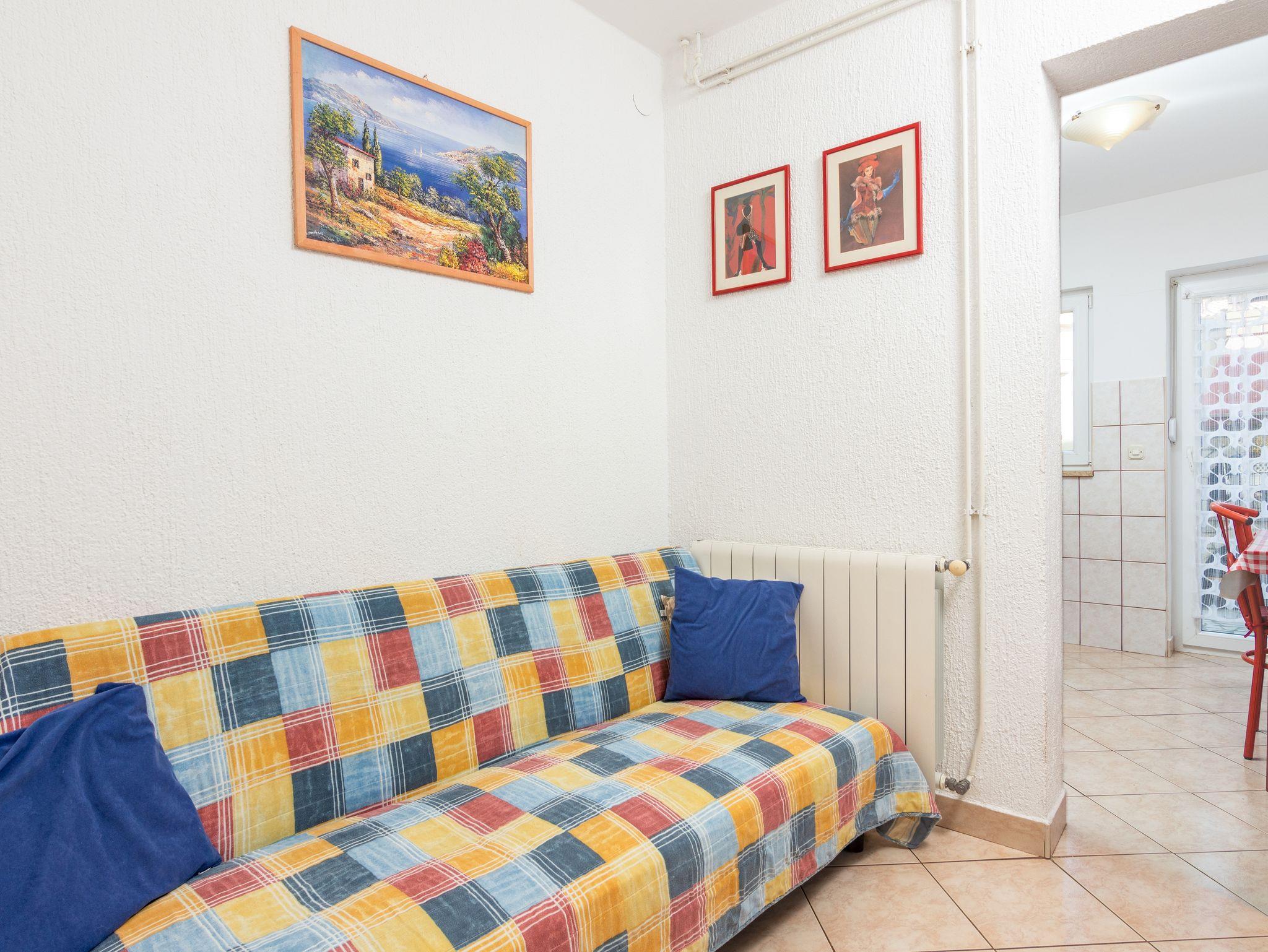 Ferienwohnung bietet Platz für 3 Gäste. Die Betten sind in Schlafzimmern, die es 1 gibt, und in Wohnzimmer, innerhalb einer Gesamtfläche von 30m2, angeordnet. Die Gäste haben eine eigene Terrasse zur Verfügung, auf der sie in warmen Sommernächten genießen können. Es ist erlaubt, Speisen auf dem Gemeinschafts-Grill vorzubereiten. In der Unterkunftseinheit besteht die Möglichkeit des Mitbringens von Haustieren gegen Aufpreis. IM PREIS INBEGRIFFEN: Kurtaxe, Endreinigung, Klimatisierung, Zentralheizung, Parkplatz, Internet, Bügeleisen, Bügelbrett, Föhn. VERBINDLICHE ZUSÄTZLICHE KOSTEN: Aufzahlung für Kurzaufenthalte (prozentualer Zuschlag pro Nächtigungsanzahl: 30% - 1, 20% - 2, 10% - 3). UNVERBINDLICHE ZUSÄTZLICHE KOSTEN: Haustiere (5,00 € pro Nacht). Die Verfügbarkeit zusätzlicher Dienstleistungen in Ihrem reservierten Termin und die Preise derselben (falls nicht aufgeführt) müssen im Voraus überprüft werden. Zusätzliche Dienstleistungen die in der Zahlungsaufforderung nicht aufgeführt sind werden direkt beim Vermieter bezahlt, angenommen der Gast nutzt auch diese.