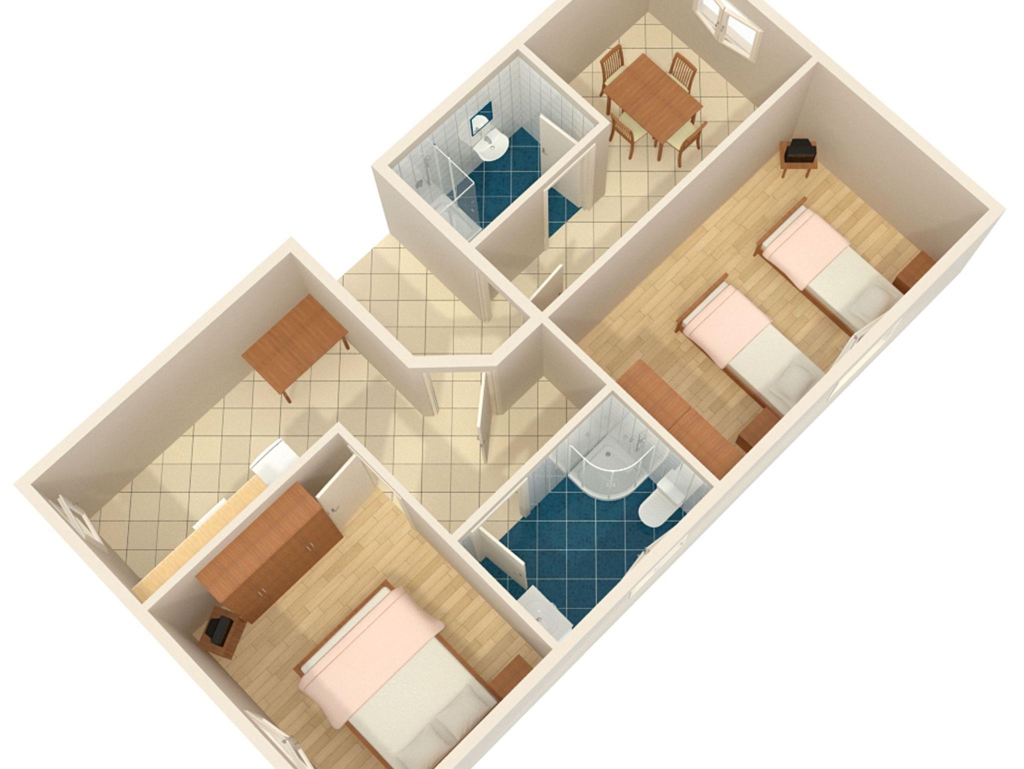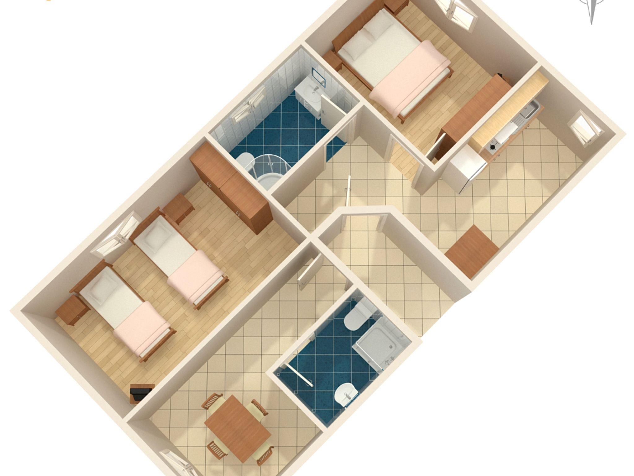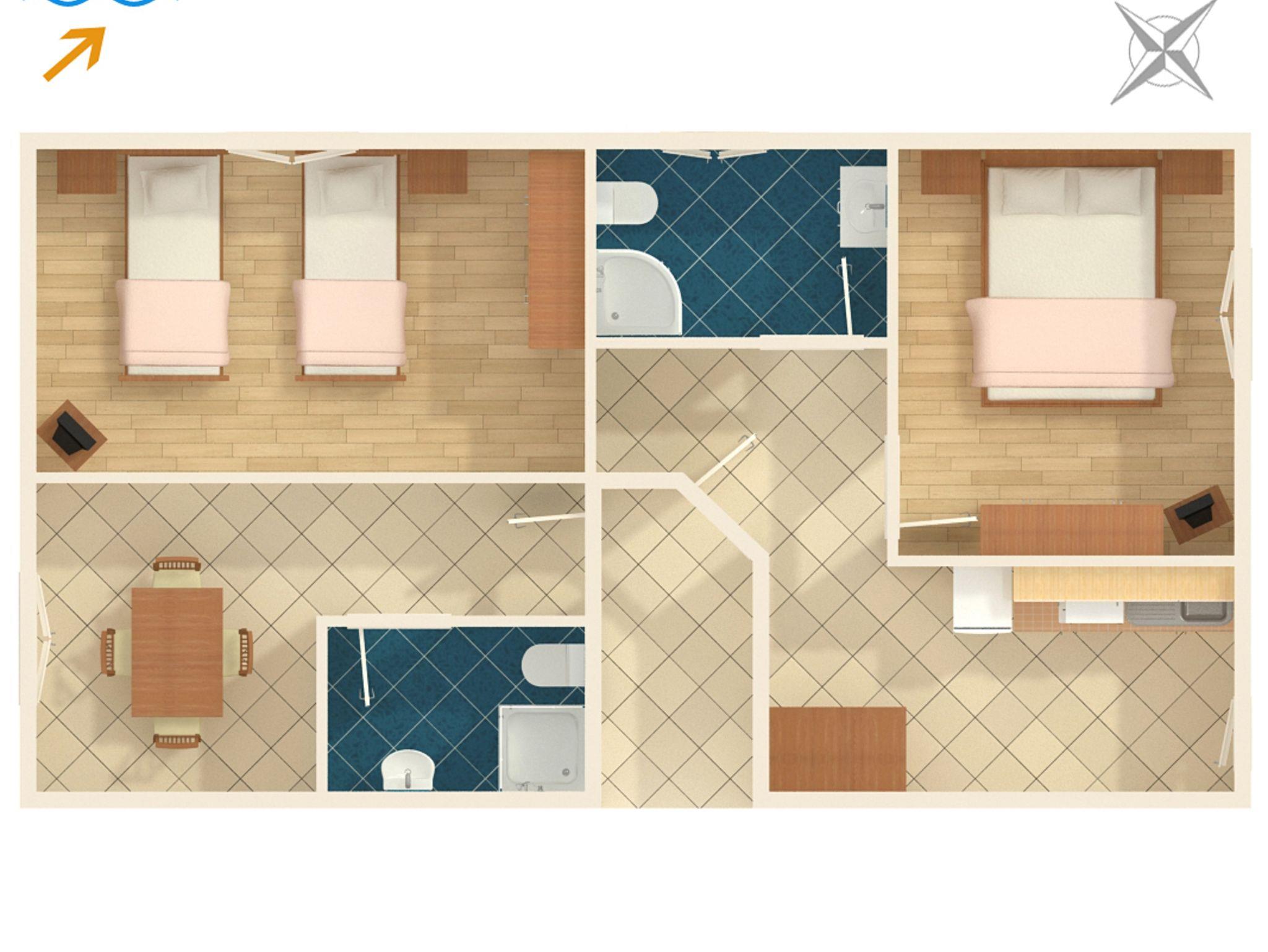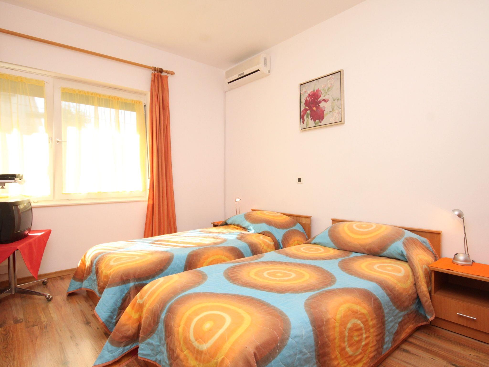 Ferienwohnung bietet Platz für 4 Gäste. Die Betten sind in Schlafzimmern, die es 2 gibt, innerhalb einer Gesamtfläche von 47m2, angeordnet. Die Gäste haben eine eigene Terrasse zur Verfügung, auf der sie in warmen Sommernächten genießen können. Es ist erlaubt, Speisen auf dem Gemeinschafts-Grill vorzubereiten. Während ihres Aufenthalts können Gäste das gemeinsam zur Nutzung stehende Schwimmbad benutzen. Räume der gebuchten Unterkunftseinheit werden nicht in eine Ganze verbunden. Unterkunftseinheit hat Räume, die von dem Rest der Einheit abgetrennt werden. In der gebuchten Unterkunftseinheit zahlt man am Ort ein Depositum ( der Preis ist an der Internetseite angeführt ). IM PREIS INBEGRIFFEN: Kurtaxe, Endreinigung, Klimatisierung, Pool, Parkplatz, Internet, Fahrrad, Kinderbett, Bügeleisen, Bügelbrett, Föhn. VERBINDLICHE ZUSÄTZLICHE KOSTEN: Kaution (100,00 € Einmalzahlung), Aufzahlung für Kurzaufenthalte (prozentualer Zuschlag pro Nächtigungsanzahl: 30% - 1, 20% - 2, 10% - 3). UNVERBINDLICHE ZUSÄTZLICHE KOSTEN: Wäschewaschen (4,00 € Waschen). Die Verfügbarkeit zusätzlicher Dienstleistungen in Ihrem reservierten Termin und die Preise derselben (falls nicht aufgeführt) müssen im Voraus überprüft werden. Zusätzliche Dienstleistungen die in der Zahlungsaufforderung nicht aufgeführt sind werden direkt beim Vermieter bezahlt, angenommen der Gast nutzt auch diese.