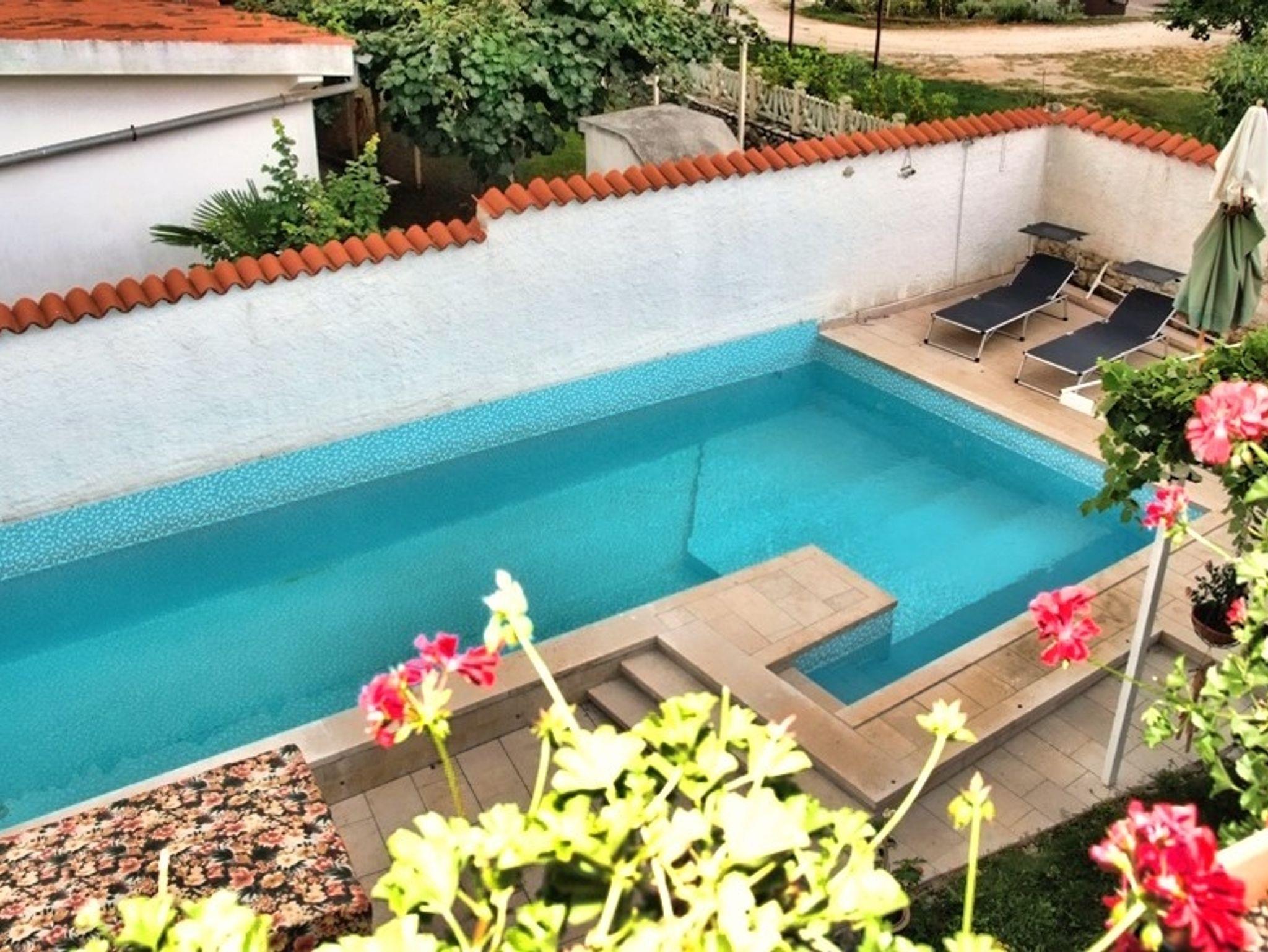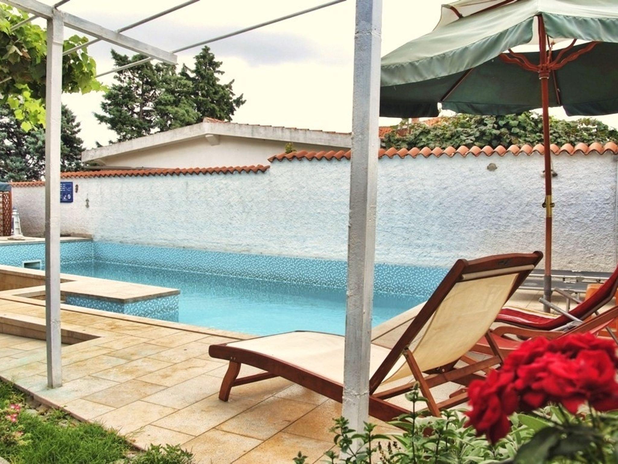 Hof (200m2, Kinderbereich, Sitzbereich), Parkplatz (Anzahl der Parkplätze: 4, Entfernung vom Objekt: im Hof), Pool: gemeinsam, Dimensionen: 9m x 3.5m x 1.5m, Wassertyp: Süßwasser, Grill: gemeinsam, WiFi Internet, Wäschewaschen, Fahrrad (Anzahl: 2), Föhn, Bügeleisen, Bügelbrett, Kinderbett