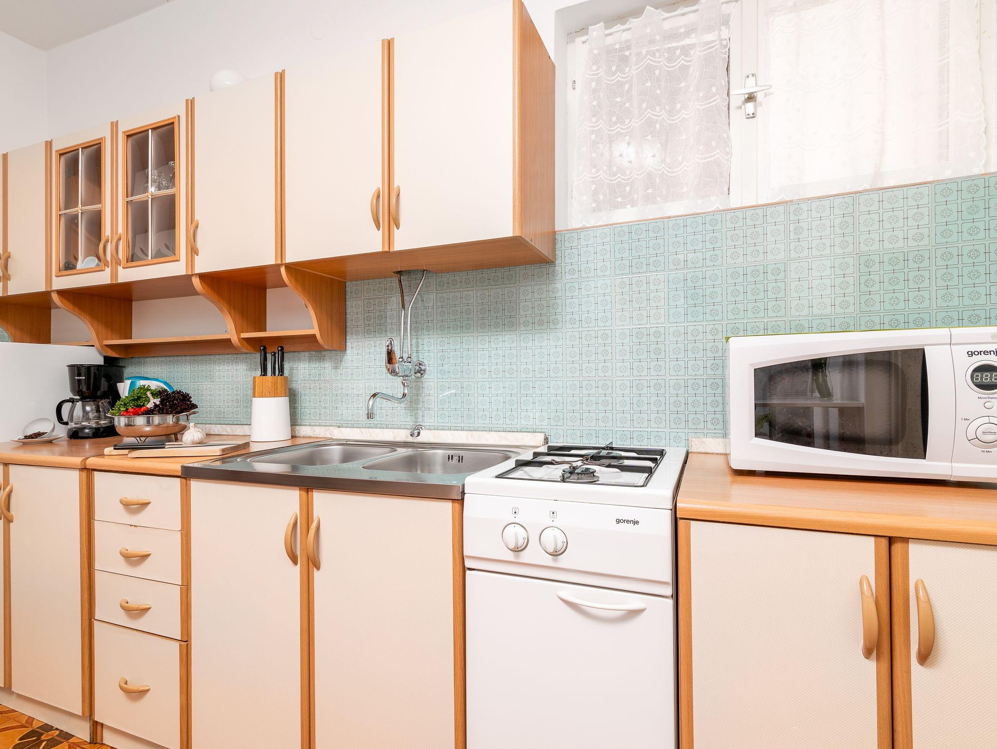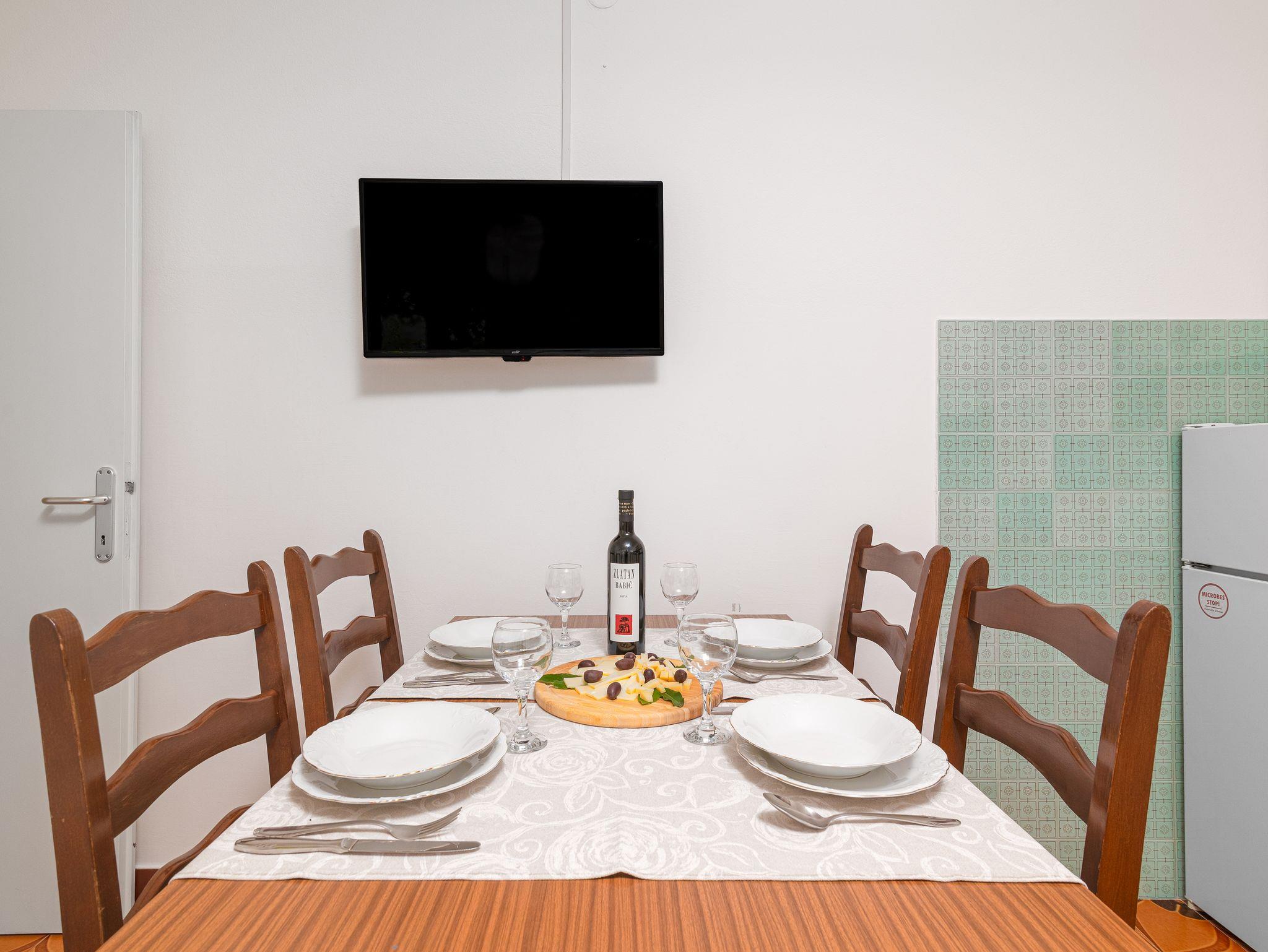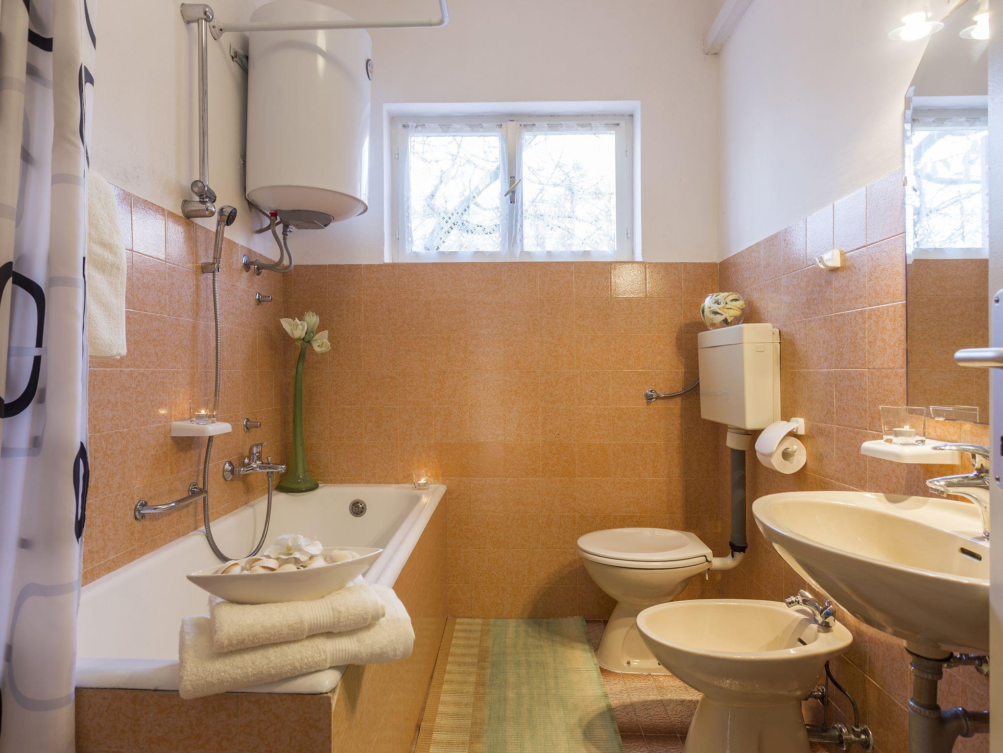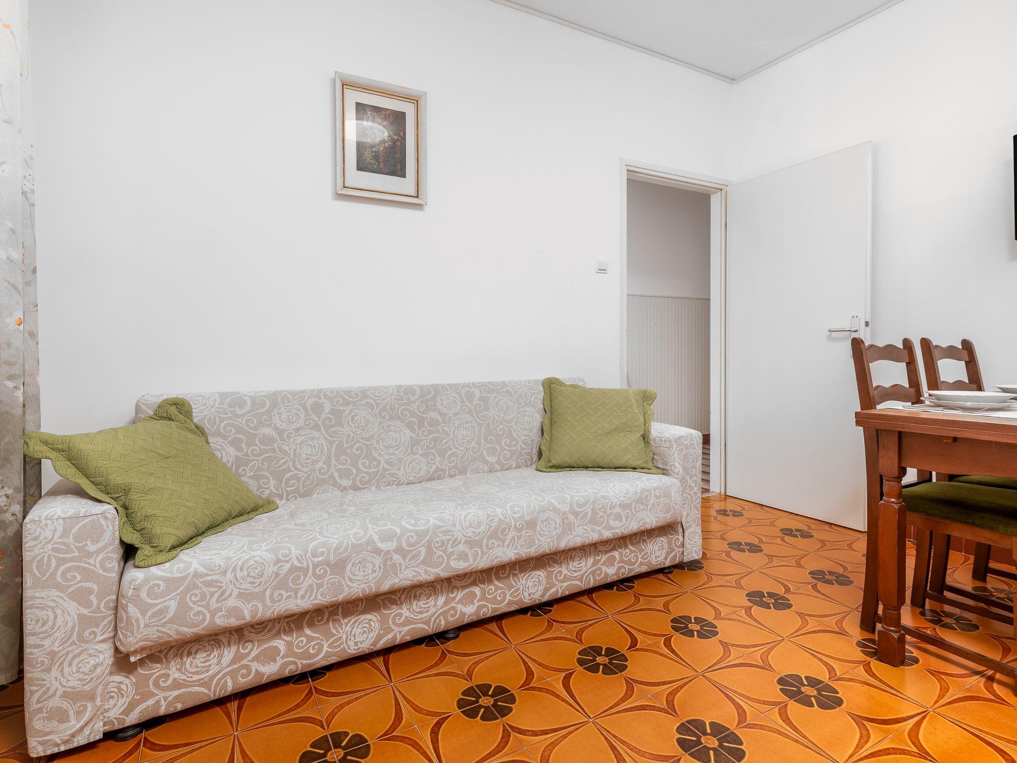 Ferienwohnung bietet Platz für 4 Gäste. Die Betten sind in Schlafzimmern, die es 2 gibt, innerhalb einer Gesamtfläche von 56m2, angeordnet. Die Gäste haben eine eigene Terrasse zur Verfügung, auf der sie in warmen Sommernächten genießen können. Es ist erlaubt, Speisen auf dem Gemeinschafts-Grill vorzubereiten. In der Unterkunftseinheit besteht die Möglichkeit des Mitbringens von Haustieren gegen Aufpreis. IM PREIS INBEGRIFFEN: Kurtaxe, Endreinigung, Klimatisierung, Parkplatz, Internet, Fahrrad, Kinderbett, Bügeleisen, Bügelbrett, Föhn, tragbarer Grill, Liegestühle. VERBINDLICHE ZUSÄTZLICHE KOSTEN: Aufzahlung für Kurzaufenthalte (prozentualer Zuschlag pro Nächtigungsanzahl: 30% - 1, 20% - 2, 10% - 3). UNVERBINDLICHE ZUSÄTZLICHE KOSTEN: Haustiere (5,00 € pro Nacht). Die Verfügbarkeit zusätzlicher Dienstleistungen in Ihrem reservierten Termin und die Preise derselben (falls nicht aufgeführt) müssen im Voraus überprüft werden. Zusätzliche Dienstleistungen die in der Zahlungsaufforderung nicht aufgeführt sind werden direkt beim Vermieter bezahlt, angenommen der Gast nutzt auch diese.