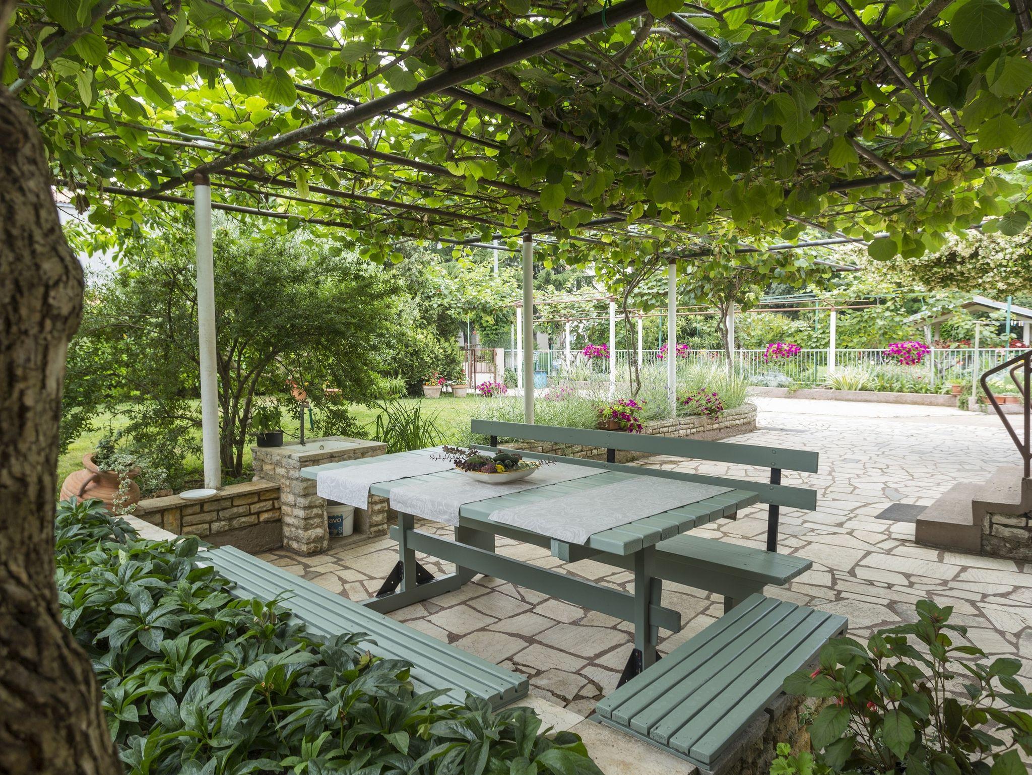 Umgebung des Objekts (Eingerichtet), Hof (400m2, Kinderbereich, Sitzbereich), Parkplatz (Anzahl der Parkplätze: 3, Entfernung vom Objekt: im Hof), WiFi Internet, Fahrrad (Anzahl: 2), Föhn, Bügeleisen, Bügelbrett, Tragbarer Grill, Liegestühle, Kinderbett