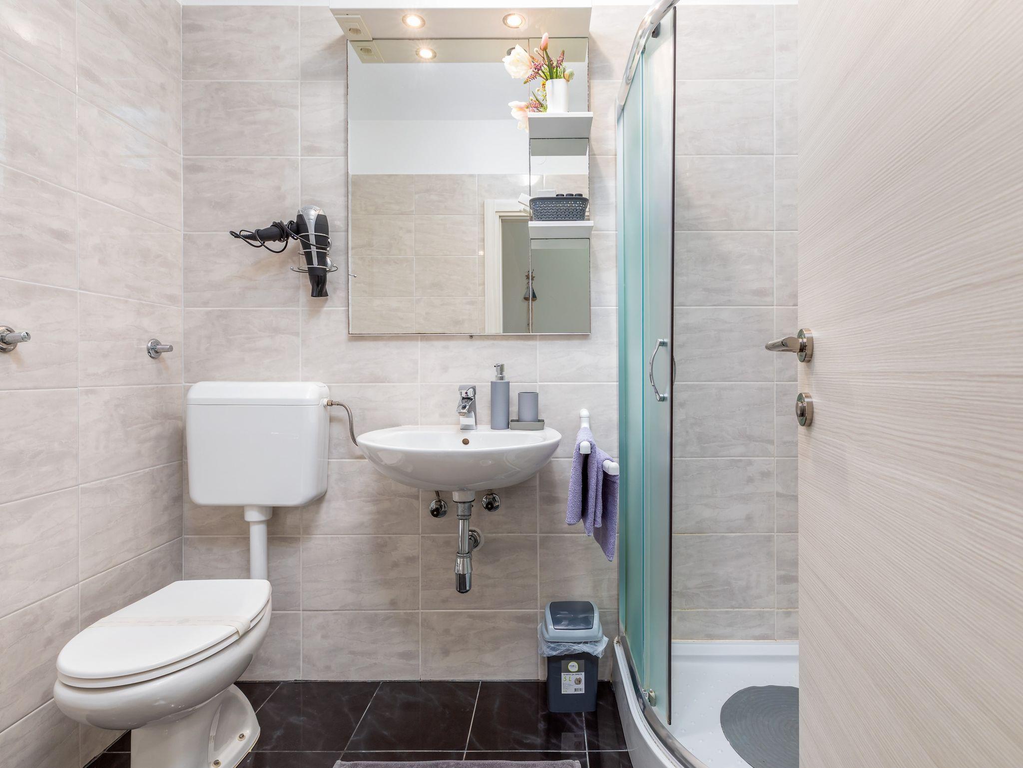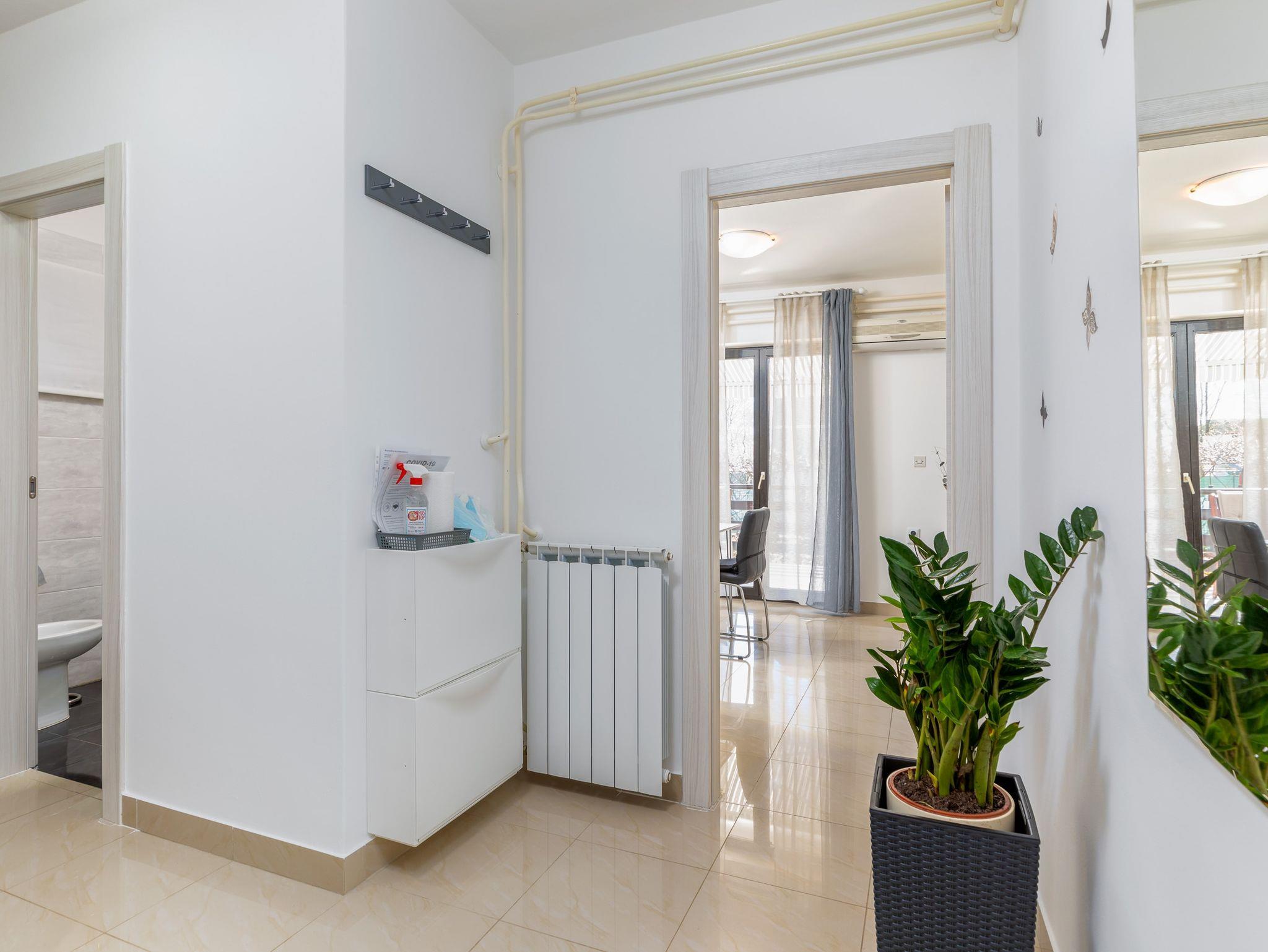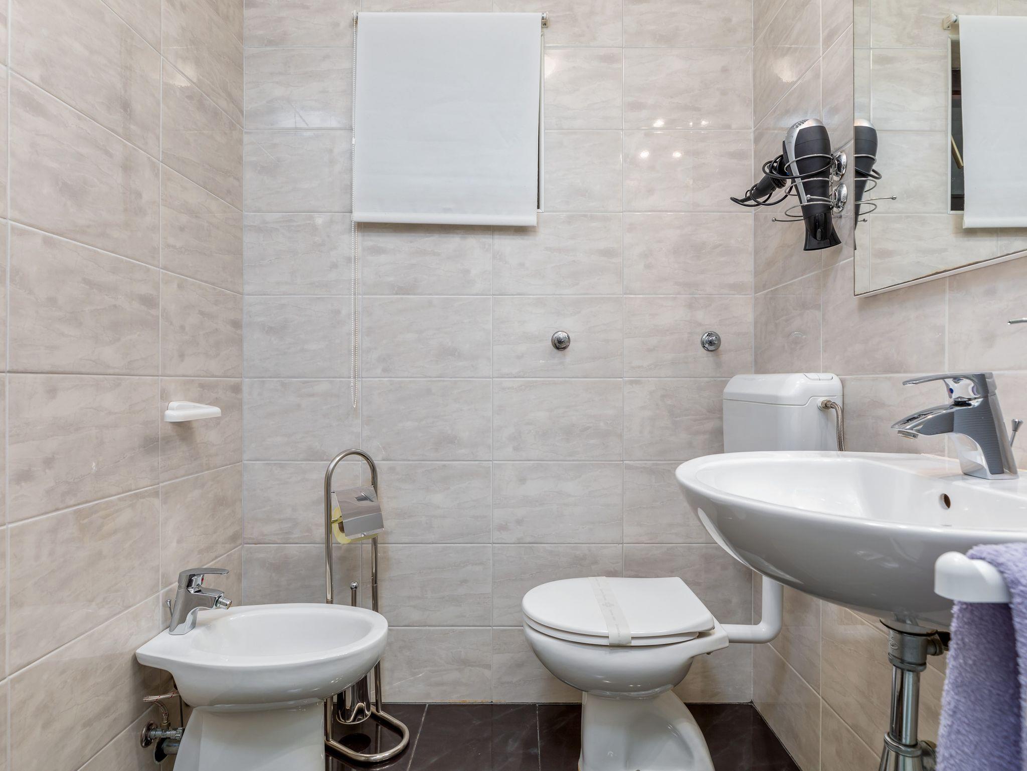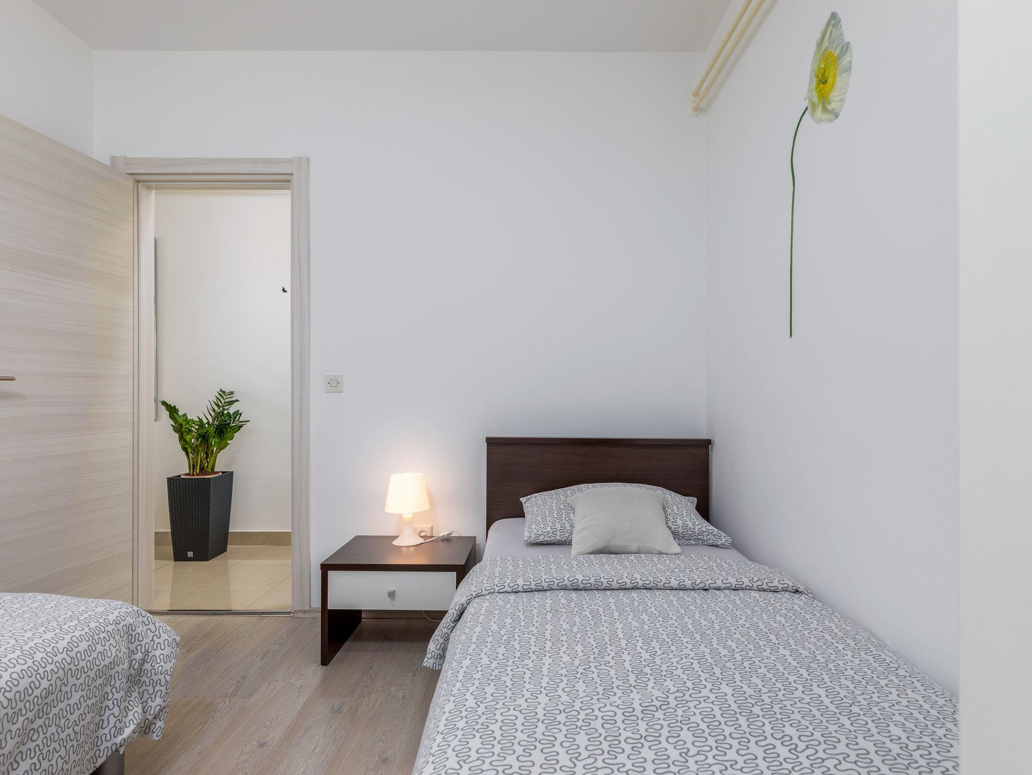 Ferienwohnung bietet Platz für 4 Gäste. Die Betten sind in Schlafzimmern, die es 2 gibt, innerhalb einer Gesamtfläche von 44m2, angeordnet. Die Gäste haben eine eigene Terrasse zur Verfügung, auf der sie in warmen Sommernächten genießen können. Es ist erlaubt, Speisen auf dem Gemeinschafts-Grill vorzubereiten. IM PREIS INBEGRIFFEN: Kurtaxe, Endreinigung, Klimatisierung, Parkplatz, Internet, Kinderbett, Bügeleisen, Bügelbrett, Föhn. VERBINDLICHE ZUSÄTZLICHE KOSTEN: Aufzahlung für Kurzaufenthalte (prozentualer Zuschlag pro Nächtigungsanzahl: 30% - 1, 20% - 2, 10% - 3). UNVERBINDLICHE ZUSÄTZLICHE KOSTEN: Zentralheizung (5,00 € pro Nacht). Die Verfügbarkeit zusätzlicher Dienstleistungen in Ihrem reservierten Termin und die Preise derselben (falls nicht aufgeführt) müssen im Voraus überprüft werden. Zusätzliche Dienstleistungen die in der Zahlungsaufforderung nicht aufgeführt sind werden direkt beim Vermieter bezahlt, angenommen der Gast nutzt auch diese.