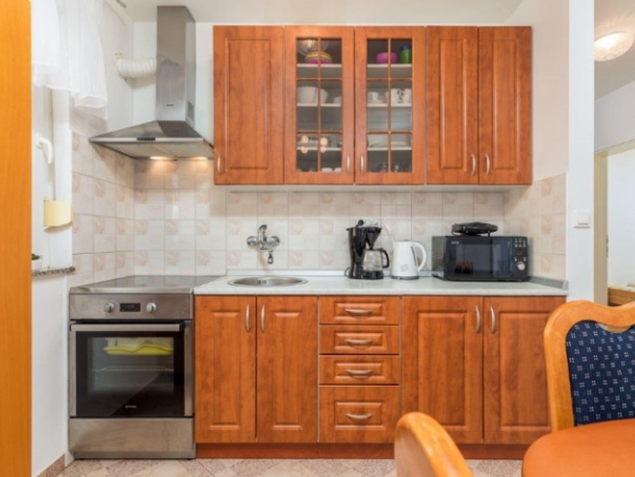 Ferienwohnung bietet Platz für 4 Gäste. Die Betten sind in Schlafzimmern, die es 2 gibt, innerhalb einer Gesamtfläche von 46m2, angeordnet. Für vollen Genuss und Entspannung gibt es einen privaten Grill für Gäste dieser Unterkunft. Die reservierte Unterkunftseinheit hat keinen Balkon und keine Terrasse. IM PREIS INBEGRIFFEN: Kurtaxe, Endreinigung, Klimatisierung, Parkplatz, Internet, Bügeleisen, Föhn. VERBINDLICHE ZUSÄTZLICHE KOSTEN: Aufzahlung für Kurzaufenthalte (prozentualer Zuschlag pro Nächtigungsanzahl: 30% - 1, 20% - 2, 10% - 3). Die Verfügbarkeit zusätzlicher Dienstleistungen in Ihrem reservierten Termin und die Preise derselben (falls nicht aufgeführt) müssen im Voraus überprüft werden. Zusätzliche Dienstleistungen die in der Zahlungsaufforderung nicht aufgeführt sind werden direkt beim Vermieter bezahlt, angenommen der Gast nutzt auch diese.