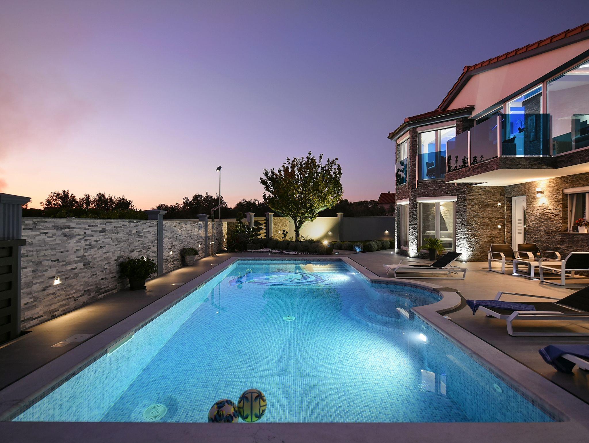 Haus bietet Platz für 10 Gäste. Die Betten sind in Schlafzimmern, die es 4 gibt, und in Wohnzimmer, innerhalb einer Gesamtfläche von 112m2, angeordnet. Die Gäste haben eine eigene Terrasse zur Verfügung, auf der sie in warmen Sommernächten genießen können. Für vollen Genuss und Entspannung gibt es einen privaten Grill für Gäste dieser Unterkunft. Während ihres Aufenthalts können sich Gäste im privaten Schwimmbad entspannen. Räume der gebuchten Unterkunftseinheit werden nicht in eine Ganze verbunden. In der gebuchten Unterkunftseinheit zahlt man am Ort ein Depositum ( der Preis ist an der Internetseite angeführt ). IM PREIS INBEGRIFFEN: Kurtaxe, Endreinigung, Klimatisierung, Pool, Parkplatz, Internet, Bügeleisen, Föhn. VERBINDLICHE ZUSÄTZLICHE KOSTEN: Kaution (300,00 € Einmalzahlung). Die Verfügbarkeit zusätzlicher Dienstleistungen in Ihrem reservierten Termin und die Preise derselben (falls nicht aufgeführt) müssen im Voraus überprüft werden. Zusätzliche Dienstleistungen die in der Zahlungsaufforderung nicht aufgeführt sind werden direkt beim Vermieter bezahlt, angenommen der Gast nutzt auch diese.
