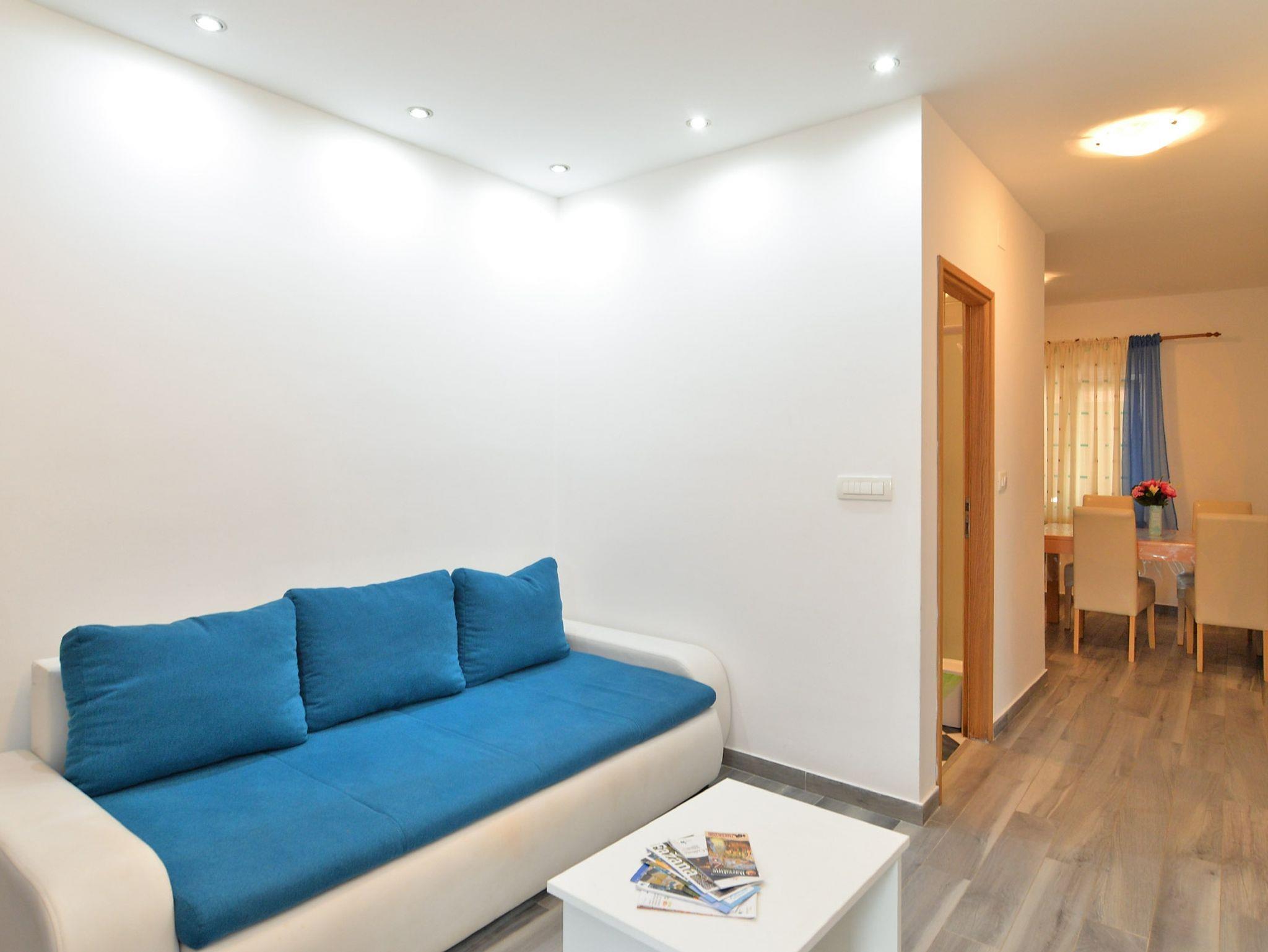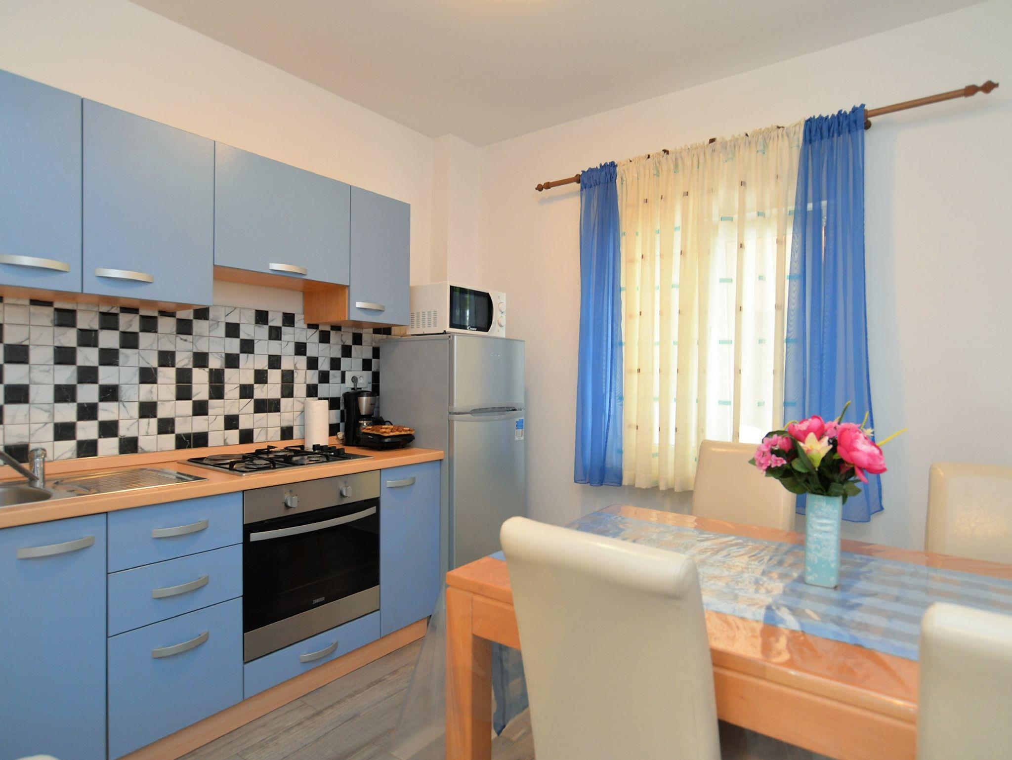 Ferienwohnung bietet Platz für 5 Gäste. Die Betten sind in Schlafzimmern, die es 2 gibt, und in Esszimmer, innerhalb einer Gesamtfläche von 55m2, angeordnet. Die Gäste haben eine eigene Terrasse zur Verfügung, auf der sie in warmen Sommernächten genießen können. Es ist erlaubt, Speisen auf dem Gemeinschafts-Grill vorzubereiten. Während ihres Aufenthalts können Gäste das gemeinsam zur Nutzung stehende Schwimmbad benutzen. In der Unterkunftseinheit besteht die Möglichkeit des Mitbringens von Haustieren gegen Aufpreis. In der gebuchten Unterkunftseinheit zahlt man am Ort ein Depositum ( der Preis ist an der Internetseite angeführt ). IM PREIS INBEGRIFFEN: Kurtaxe, Endreinigung, Klimatisierung, Pool, Parkplatz, Internet. VERBINDLICHE ZUSÄTZLICHE KOSTEN: Kaution (300,00 € Einmalzahlung). UNVERBINDLICHE ZUSÄTZLICHE KOSTEN: Haustiere (10,00 € pro Nacht). Die Verfügbarkeit zusätzlicher Dienstleistungen in Ihrem reservierten Termin und die Preise derselben (falls nicht aufgeführt) müssen im Voraus überprüft werden. Zusätzliche Dienstleistungen die in der Zahlungsaufforderung nicht aufgeführt sind werden direkt beim Vermieter bezahlt, angenommen der Gast nutzt auch diese.