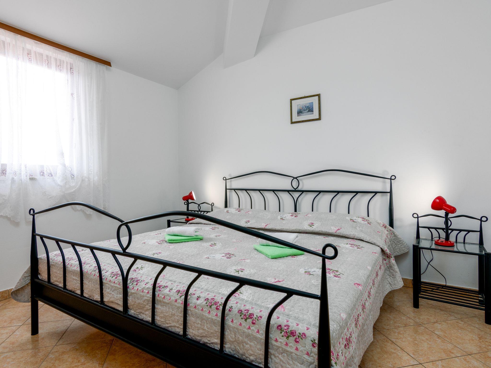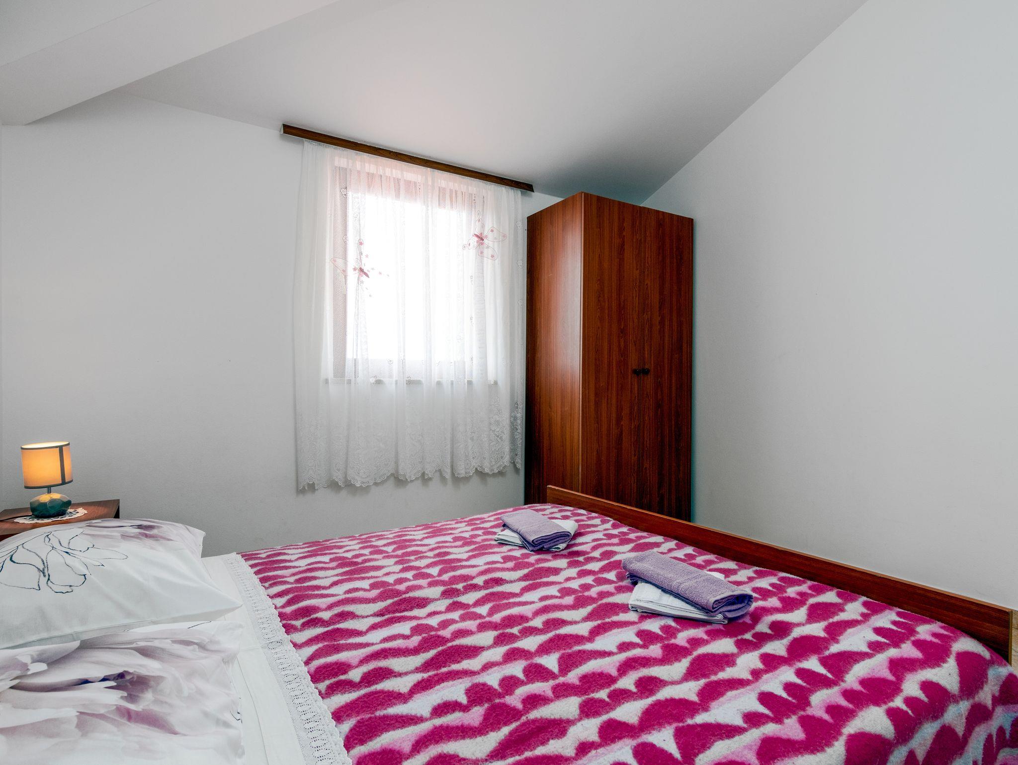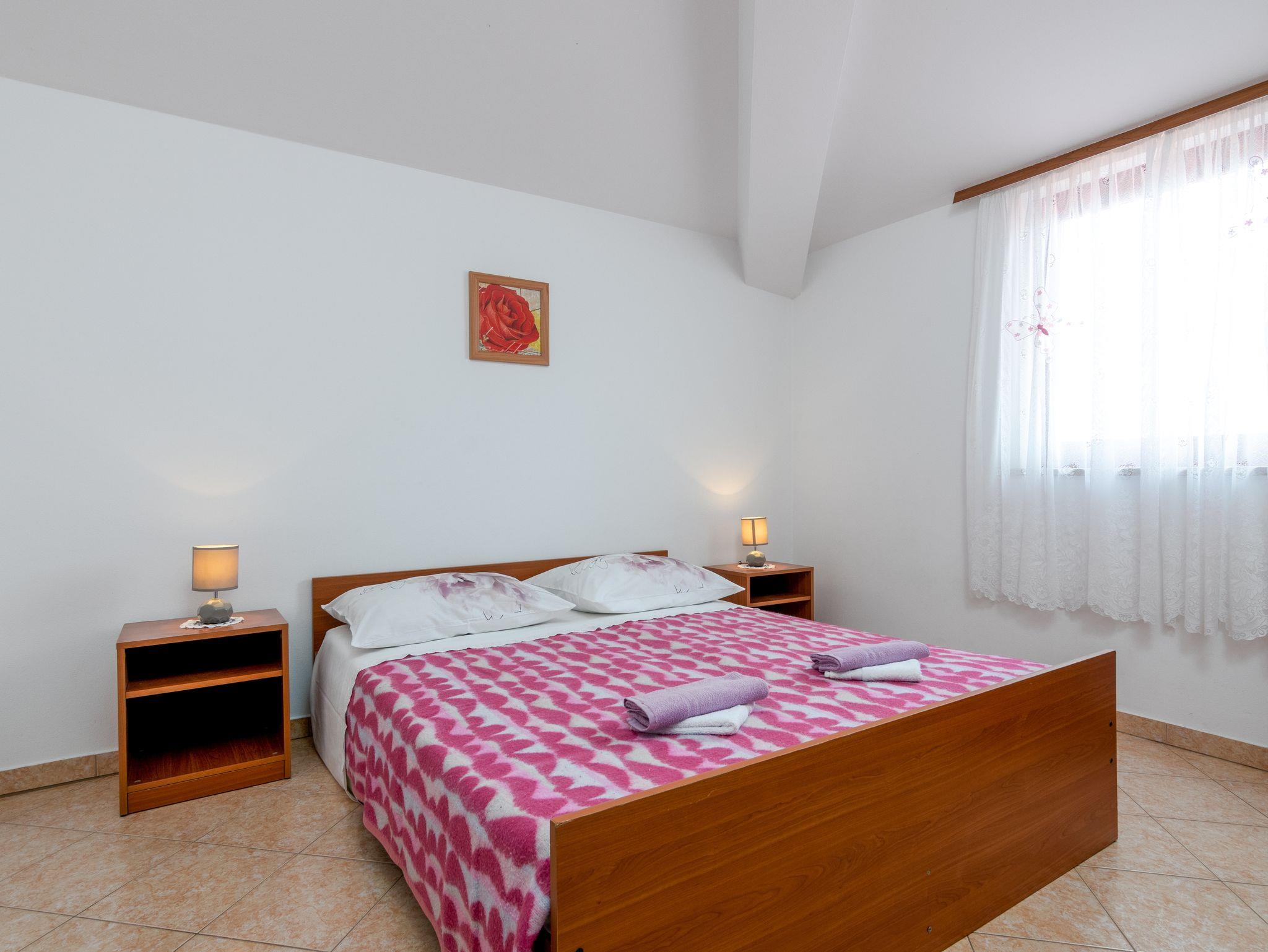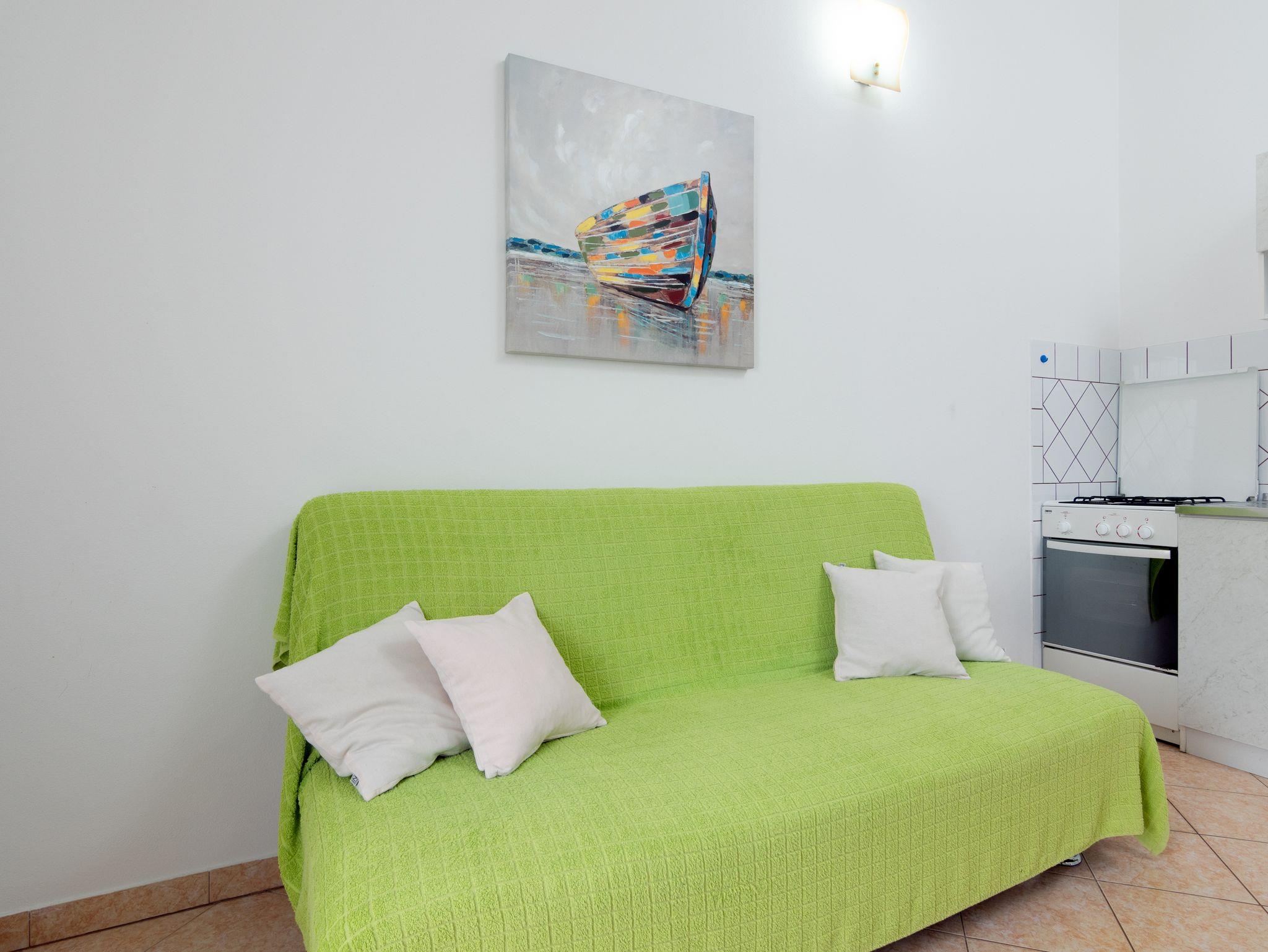 Ferienwohnung bietet Platz für 4 Gäste. Die Betten sind in Schlafzimmern, die es 2 gibt, innerhalb einer Gesamtfläche von 47m2, angeordnet. Die Gäste haben eine eigene Terrasse zur Verfügung, auf der sie in warmen Sommernächten genießen können. Es ist erlaubt, Speisen auf dem Gemeinschafts-Grill vorzubereiten. Während ihres Aufenthalts können Gäste das gemeinsam zur Nutzung stehende Schwimmbad benutzen. In der Unterkunftseinheit besteht die Möglichkeit des Mitbringens von Haustieren gegen Aufpreis. IM PREIS INBEGRIFFEN: Kurtaxe, Endreinigung, Pool, Parkplatz, Internet, Kinderbett, Bügeleisen, Bügelbrett, Föhn. VERBINDLICHE ZUSÄTZLICHE KOSTEN: Aufzahlung für Kurzaufenthalte (prozentualer Zuschlag pro Nächtigungsanzahl: 30% - 1, 20% - 2, 10% - 3). UNVERBINDLICHE ZUSÄTZLICHE KOSTEN: Klimatisierung (5,00 € pro Nacht), Wäschewaschen (10,00 € Waschen), Haustiere (10,00 € pro Nacht), Zusatzbett (10,00 € pro Nacht). Die Verfügbarkeit zusätzlicher Dienstleistungen in Ihrem reservierten Termin und die Preise derselben (falls nicht aufgeführt) müssen im Voraus überprüft werden. Zusätzliche Dienstleistungen die in der Zahlungsaufforderung nicht aufgeführt sind werden direkt beim Vermieter bezahlt, angenommen der Gast nutzt auch diese.