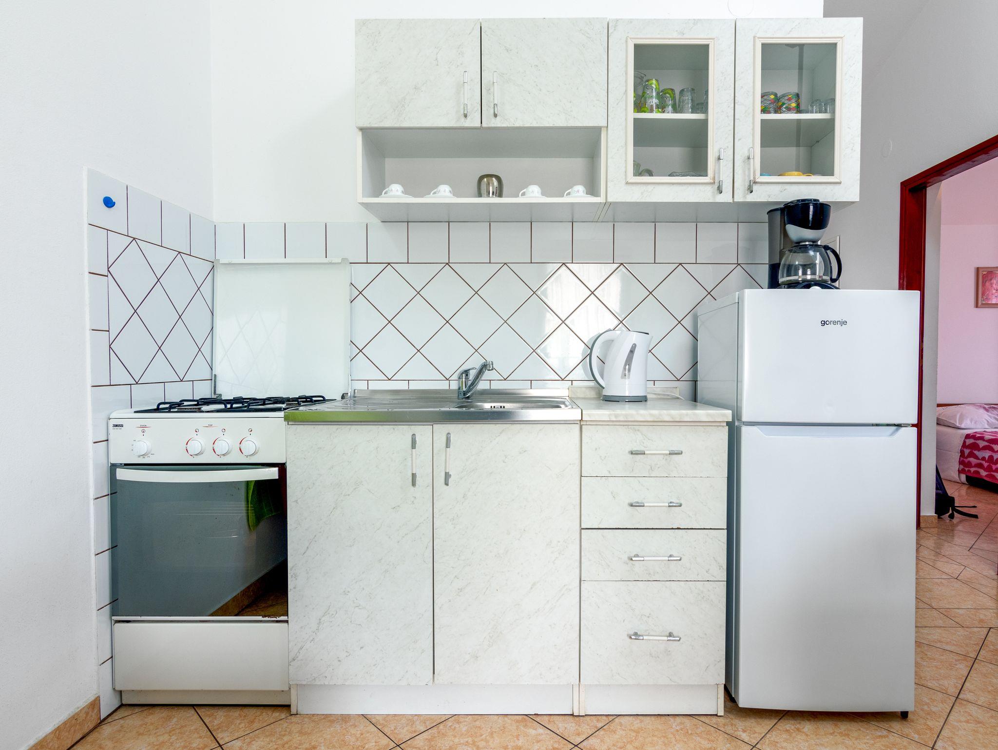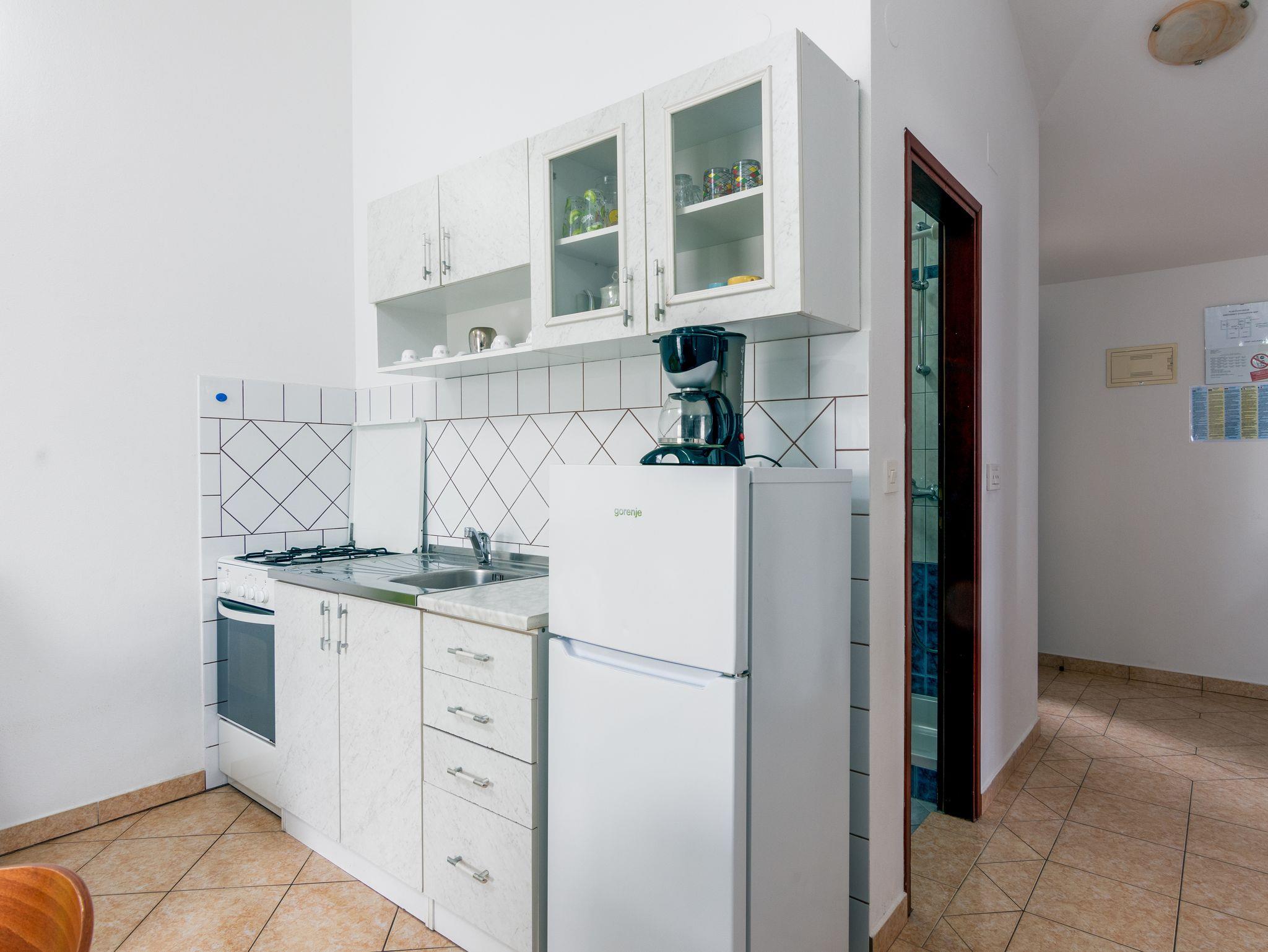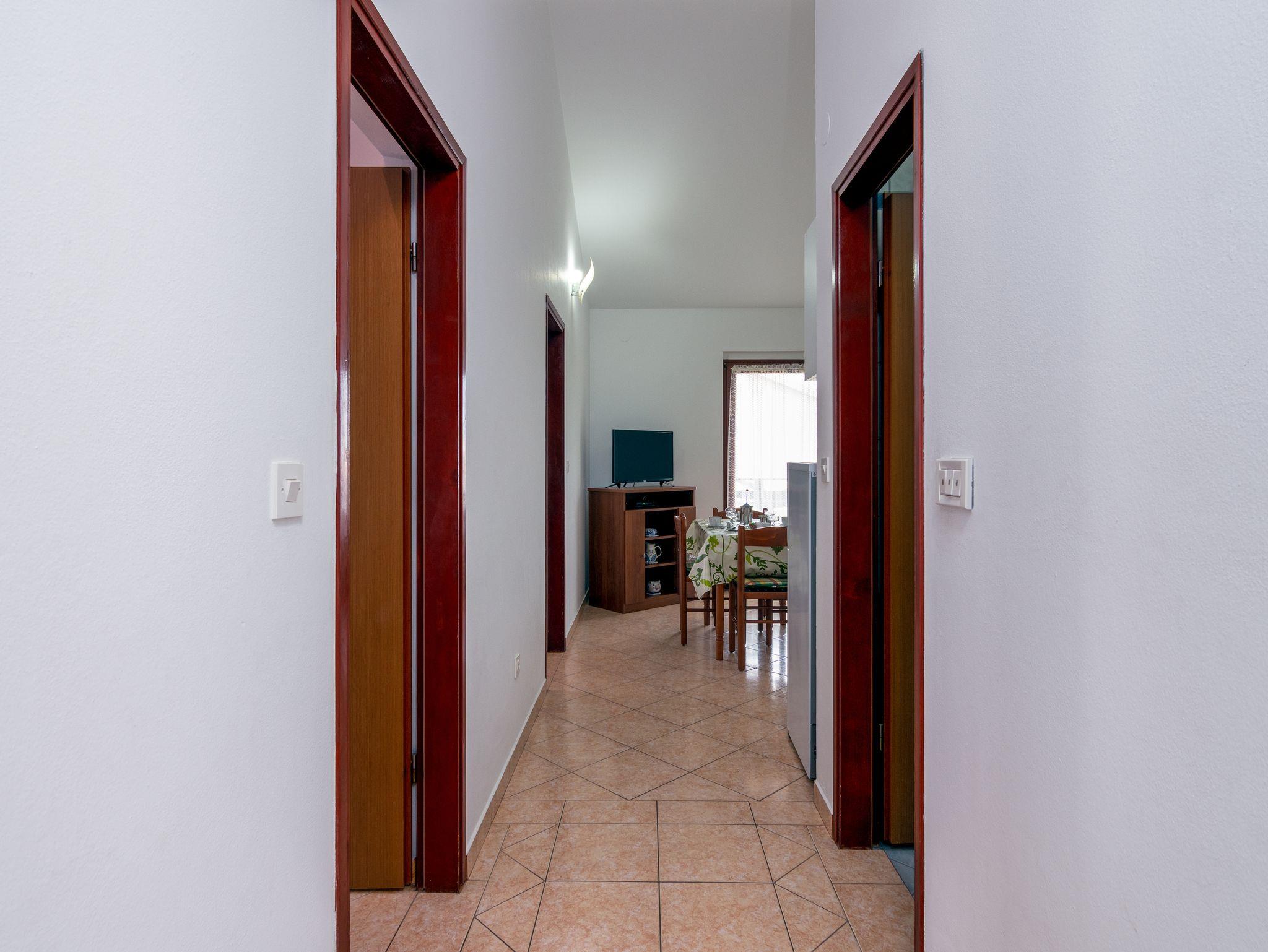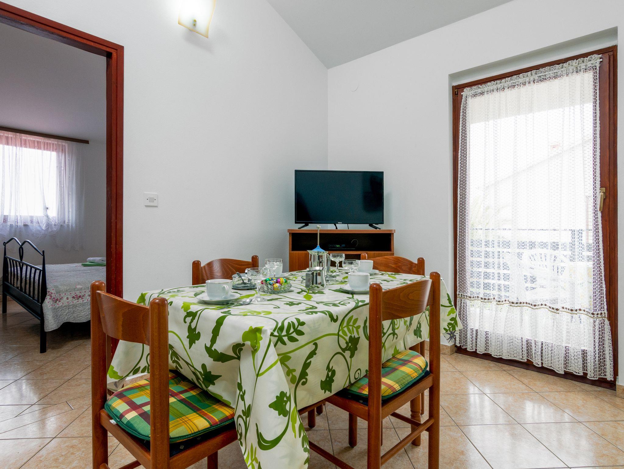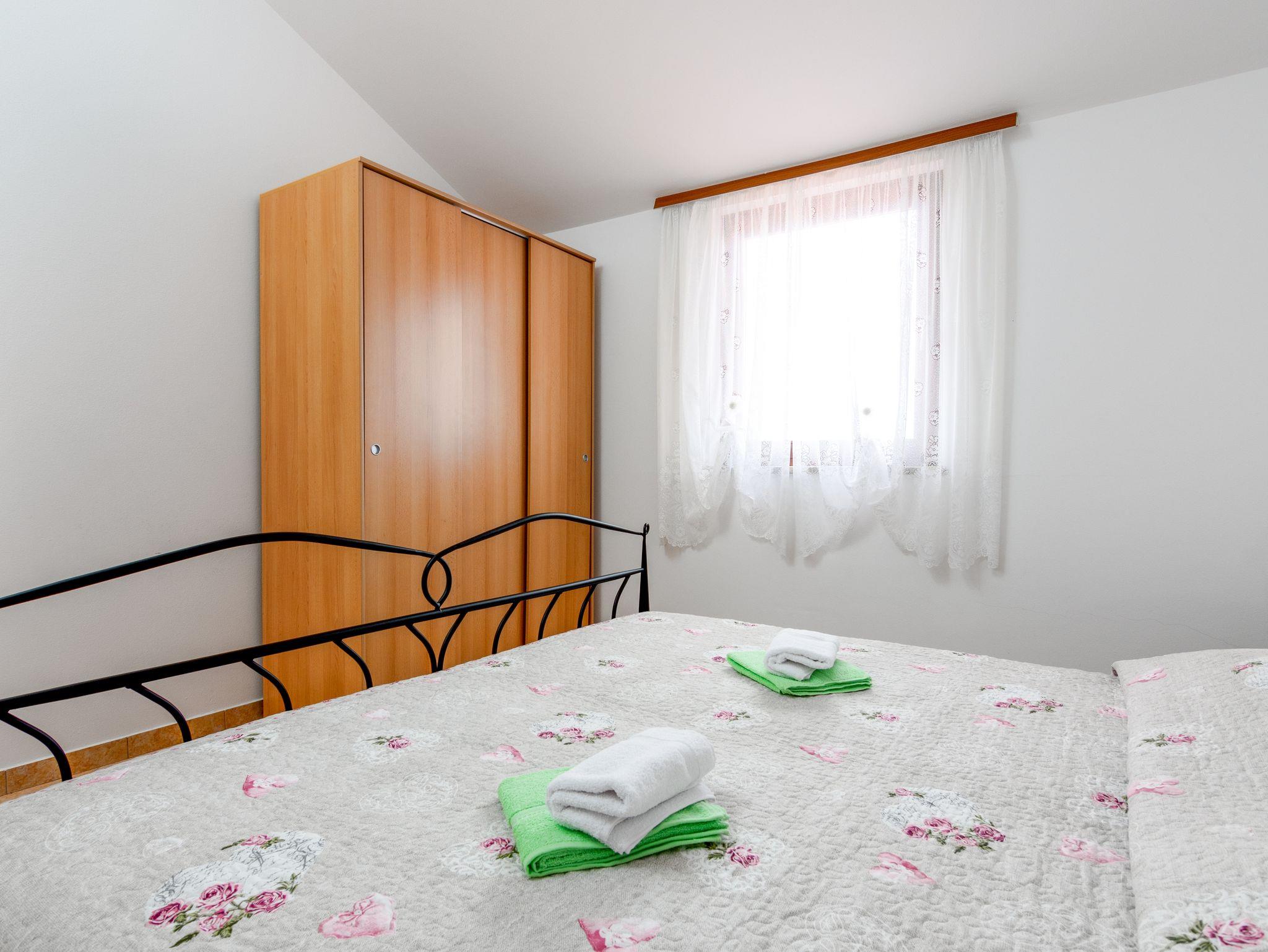 Ferienwohnung bietet Platz für 4 Gäste. Die Betten sind in Schlafzimmern, die es 2 gibt, innerhalb einer Gesamtfläche von 47m2, angeordnet. Die Gäste haben eine eigene Terrasse zur Verfügung, auf der sie in warmen Sommernächten genießen können. Es ist erlaubt, Speisen auf dem Gemeinschafts-Grill vorzubereiten. Während ihres Aufenthalts können Gäste das gemeinsam zur Nutzung stehende Schwimmbad benutzen. In der Unterkunftseinheit besteht die Möglichkeit des Mitbringens von Haustieren gegen Aufpreis. IM PREIS INBEGRIFFEN: Kurtaxe, Endreinigung, Pool, Parkplatz, Internet, Kinderbett, Bügeleisen, Bügelbrett, Föhn. VERBINDLICHE ZUSÄTZLICHE KOSTEN: Aufzahlung für Kurzaufenthalte (prozentualer Zuschlag pro Nächtigungsanzahl: 30% - 1, 20% - 2, 10% - 3). UNVERBINDLICHE ZUSÄTZLICHE KOSTEN: Klimatisierung (5,00 € pro Nacht), Wäschewaschen (10,00 € Waschen), Haustiere (10,00 € pro Nacht), Zusatzbett (10,00 € pro Nacht). Die Verfügbarkeit zusätzlicher Dienstleistungen in Ihrem reservierten Termin und die Preise derselben (falls nicht aufgeführt) müssen im Voraus überprüft werden. Zusätzliche Dienstleistungen die in der Zahlungsaufforderung nicht aufgeführt sind werden direkt beim Vermieter bezahlt, angenommen der Gast nutzt auch diese.