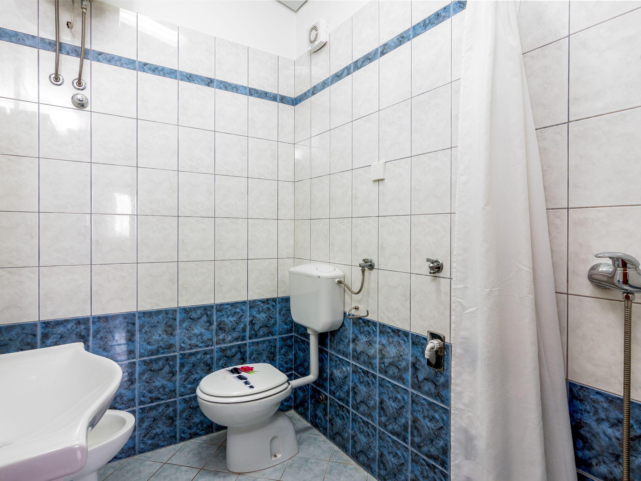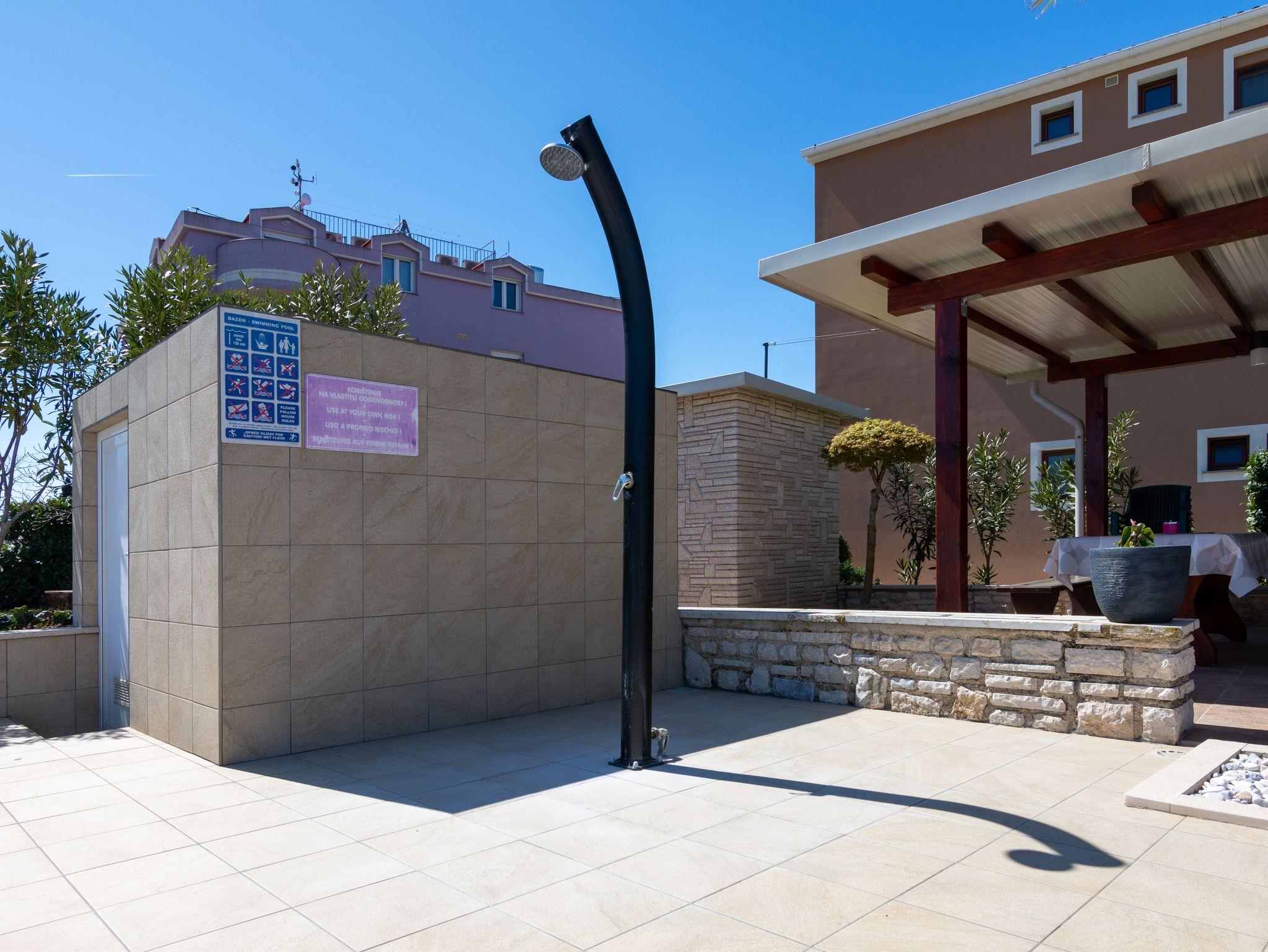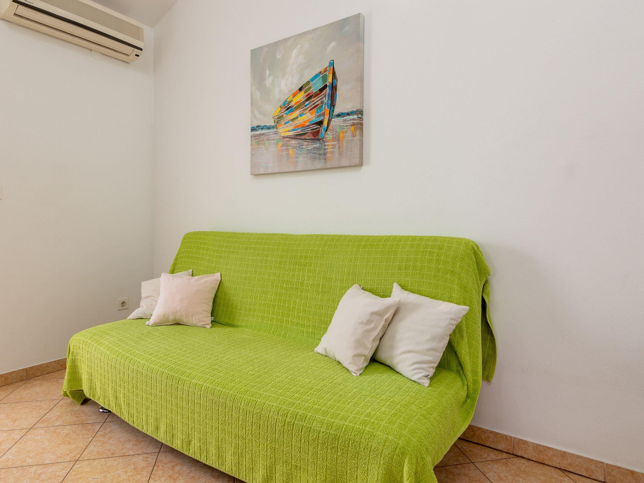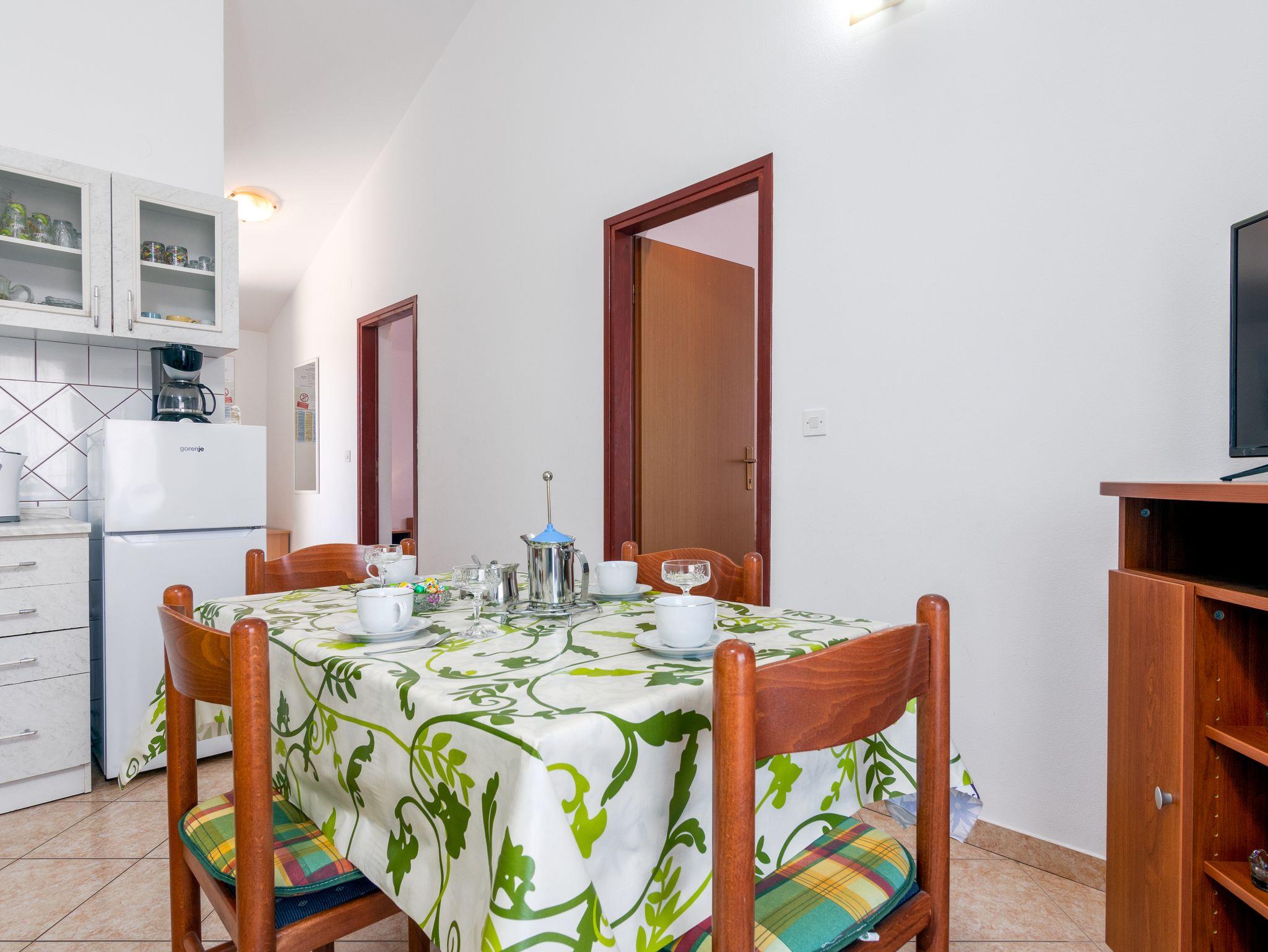 Ferienwohnung bietet Platz für 4 Gäste. Die Betten sind in Schlafzimmern, die es 2 gibt, innerhalb einer Gesamtfläche von 47m2, angeordnet. Die Gäste haben eine eigene Terrasse zur Verfügung, auf der sie in warmen Sommernächten genießen können. Es ist erlaubt, Speisen auf dem Gemeinschafts-Grill vorzubereiten. Während ihres Aufenthalts können Gäste das gemeinsam zur Nutzung stehende Schwimmbad benutzen. In der Unterkunftseinheit besteht die Möglichkeit des Mitbringens von Haustieren gegen Aufpreis. IM PREIS INBEGRIFFEN: Kurtaxe, Endreinigung, Pool, Parkplatz, Internet, Kinderbett, Bügeleisen, Bügelbrett, Föhn. VERBINDLICHE ZUSÄTZLICHE KOSTEN: Aufzahlung für Kurzaufenthalte (prozentualer Zuschlag pro Nächtigungsanzahl: 30% - 1, 20% - 2, 10% - 3). UNVERBINDLICHE ZUSÄTZLICHE KOSTEN: Klimatisierung (5,00 € pro Nacht), Wäschewaschen (10,00 € Waschen), Haustiere (10,00 € pro Nacht), Zusatzbett (10,00 € pro Nacht). Die Verfügbarkeit zusätzlicher Dienstleistungen in Ihrem reservierten Termin und die Preise derselben (falls nicht aufgeführt) müssen im Voraus überprüft werden. Zusätzliche Dienstleistungen die in der Zahlungsaufforderung nicht aufgeführt sind werden direkt beim Vermieter bezahlt, angenommen der Gast nutzt auch diese.