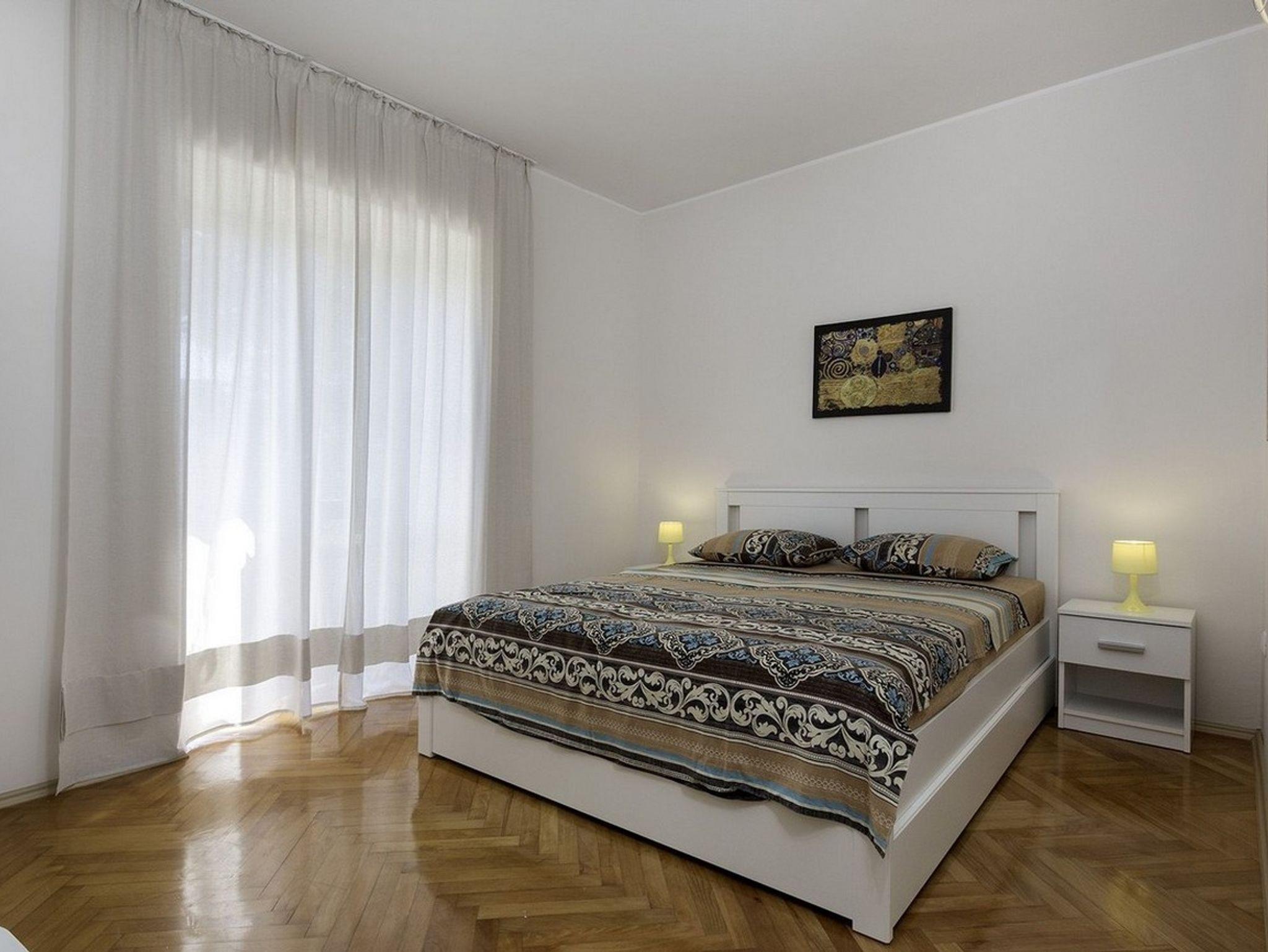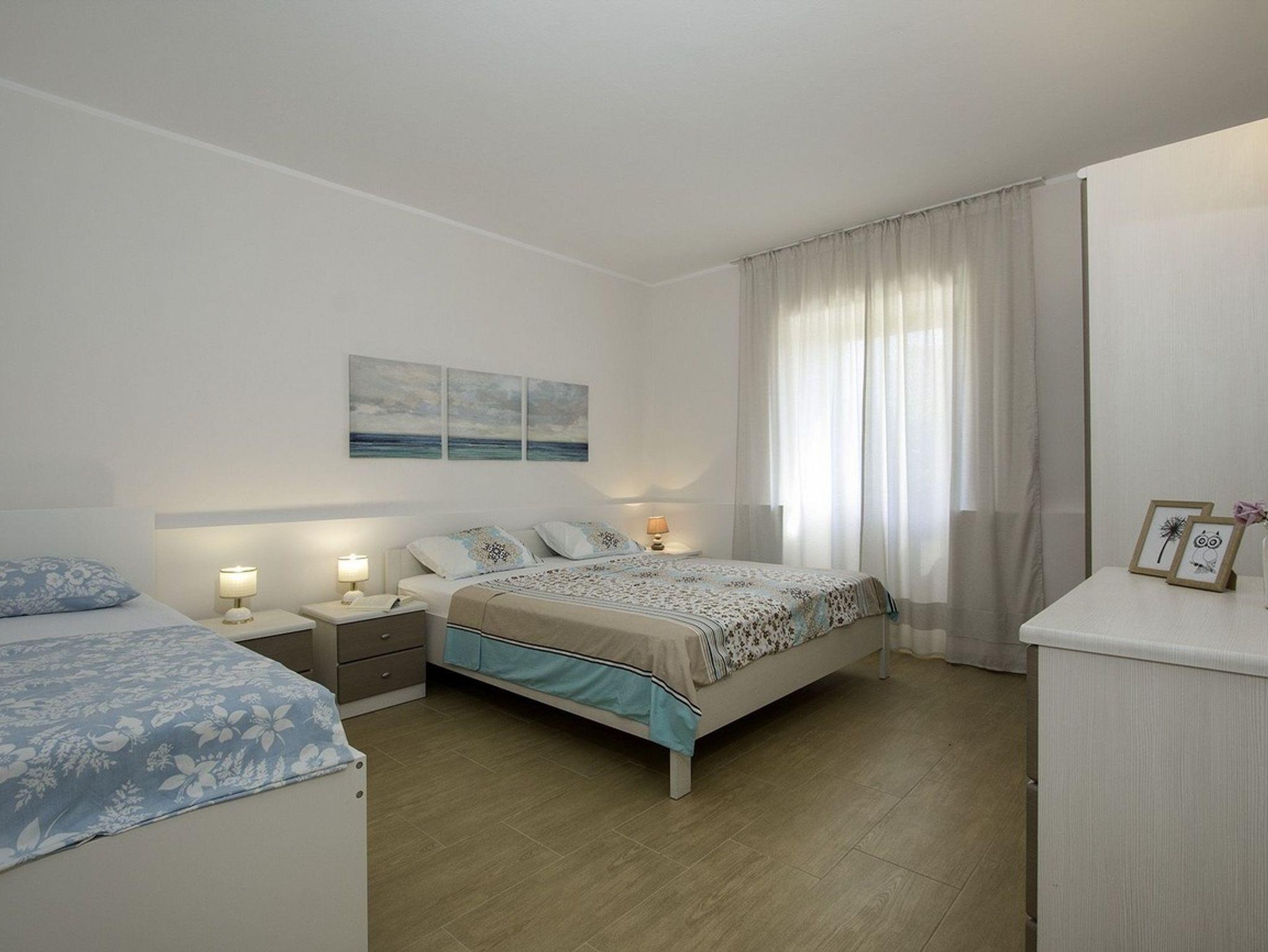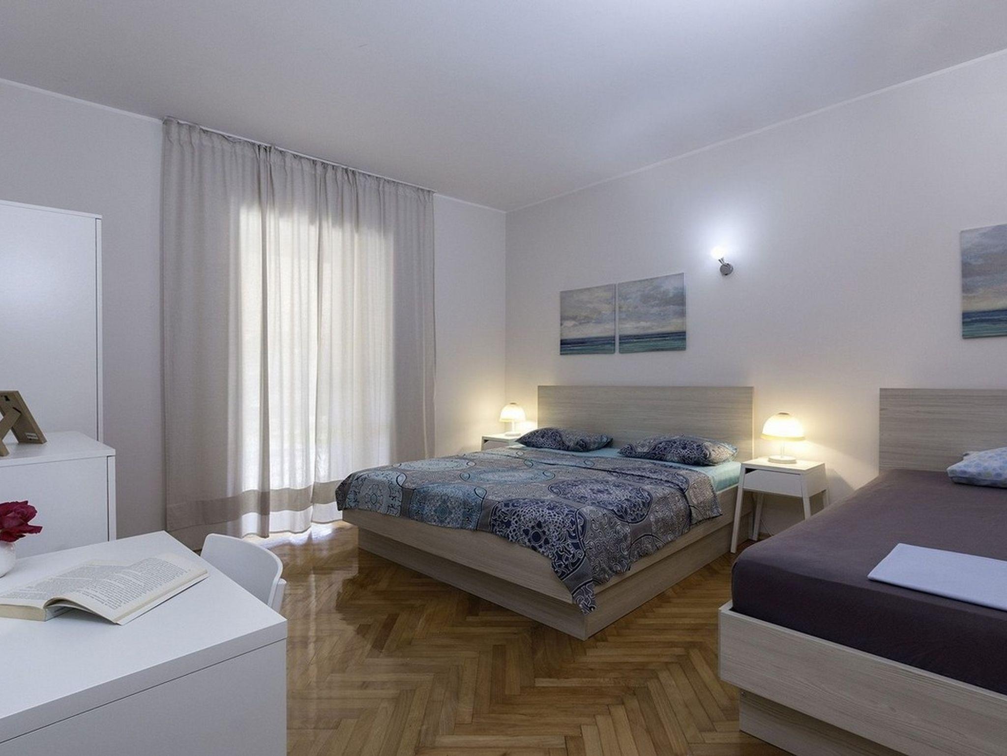 Ferienwohnung bietet Platz für 8 Gäste. Die Betten sind in Schlafzimmern, die es 3 gibt, innerhalb einer Gesamtfläche von 95m2, angeordnet. Die Gäste haben eine eigene Terrasse zur Verfügung, auf der sie in warmen Sommernächten genießen können. Für vollen Genuss und Entspannung gibt es einen privaten Grill für Gäste dieser Unterkunft. IM PREIS INBEGRIFFEN: Kurtaxe, Endreinigung, Klimatisierung, Parkplatz, Internet, Kinderbett, Bügeleisen, Bügelbrett, Föhn. Die Verfügbarkeit zusätzlicher Dienstleistungen in Ihrem reservierten Termin und die Preise derselben (falls nicht aufgeführt) müssen im Voraus überprüft werden. Zusätzliche Dienstleistungen die in der Zahlungsaufforderung nicht aufgeführt sind werden direkt beim Vermieter bezahlt, angenommen der Gast nutzt auch diese.