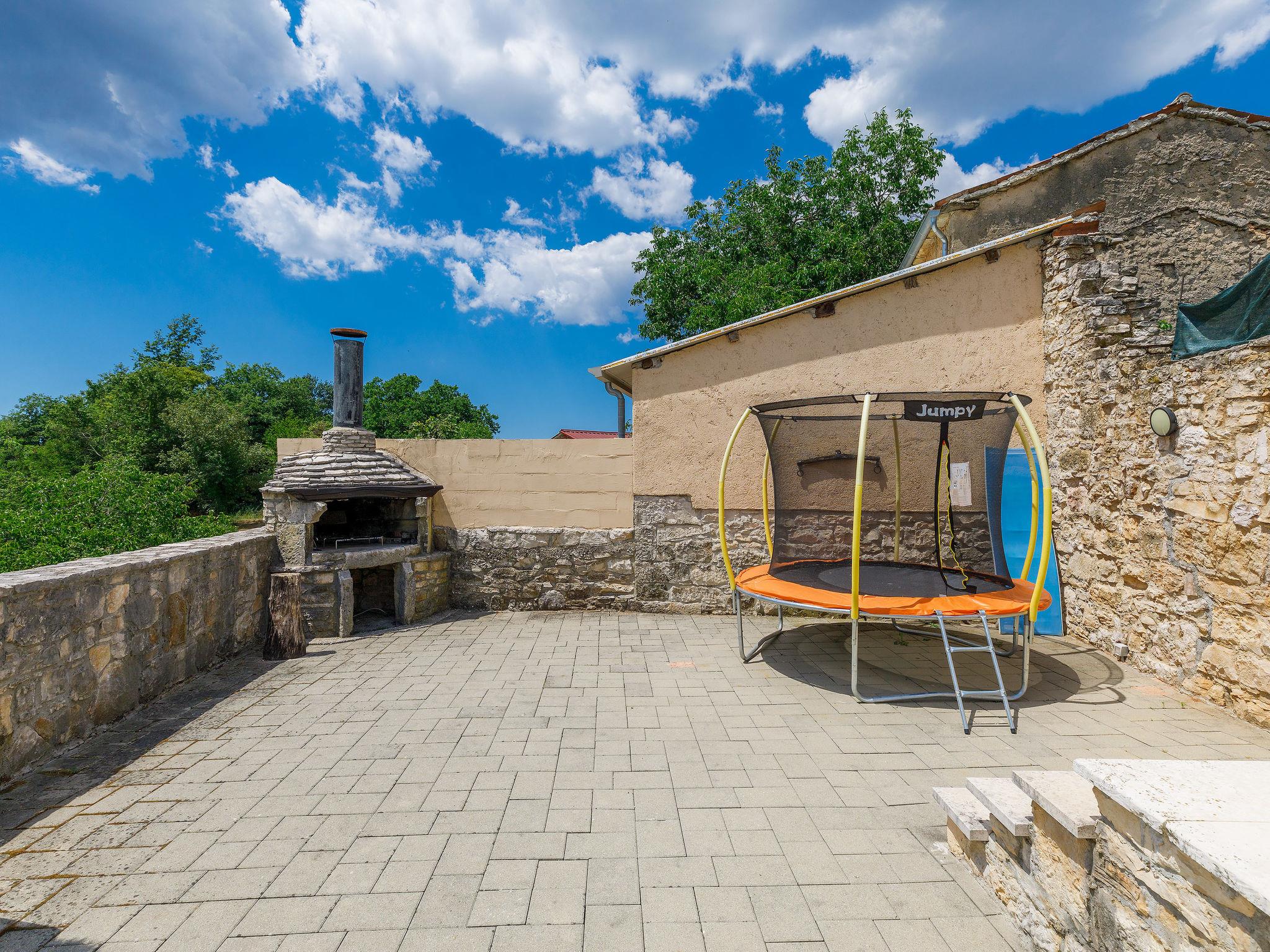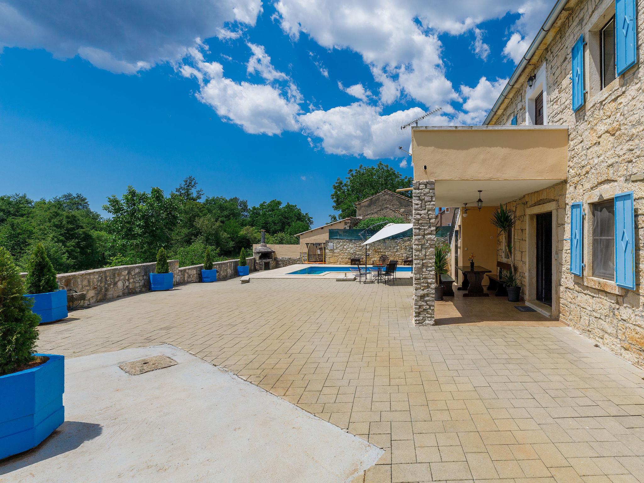 Frankovici 10 km von Motovun: Einfamilienhaus "Šterna", auf 2 Stockwerken. Im Weiler Frankovici, 8 km vom Zentrum von Pazin, 30 km vom Meer, im Grünen. Zur Alleinbenutzung: Grundstück 300 m2 (eingezäunt), Schwimmbad eckig (7 x 3 m, 24 m2, 140 cm tief, saisonale Verfügbarkeit: 20.Apr. - 30.Sep.) mit Innentreppe. Dusche/WC im Poolbereich, Terrasse, Grill. Im Hause: Internetzugang, Tischfussball, Waschmaschine. Parkplatz beim Haus auf dem Grundstück. Einkaufsgeschäft 3 km, Restaurant 3 km, Bushaltestelle 5 km, Kieselstrand 30 km. Bitte beachten: Tiere in der Umgebung. Dorf mit Bauernhöfen und Nutztieren.