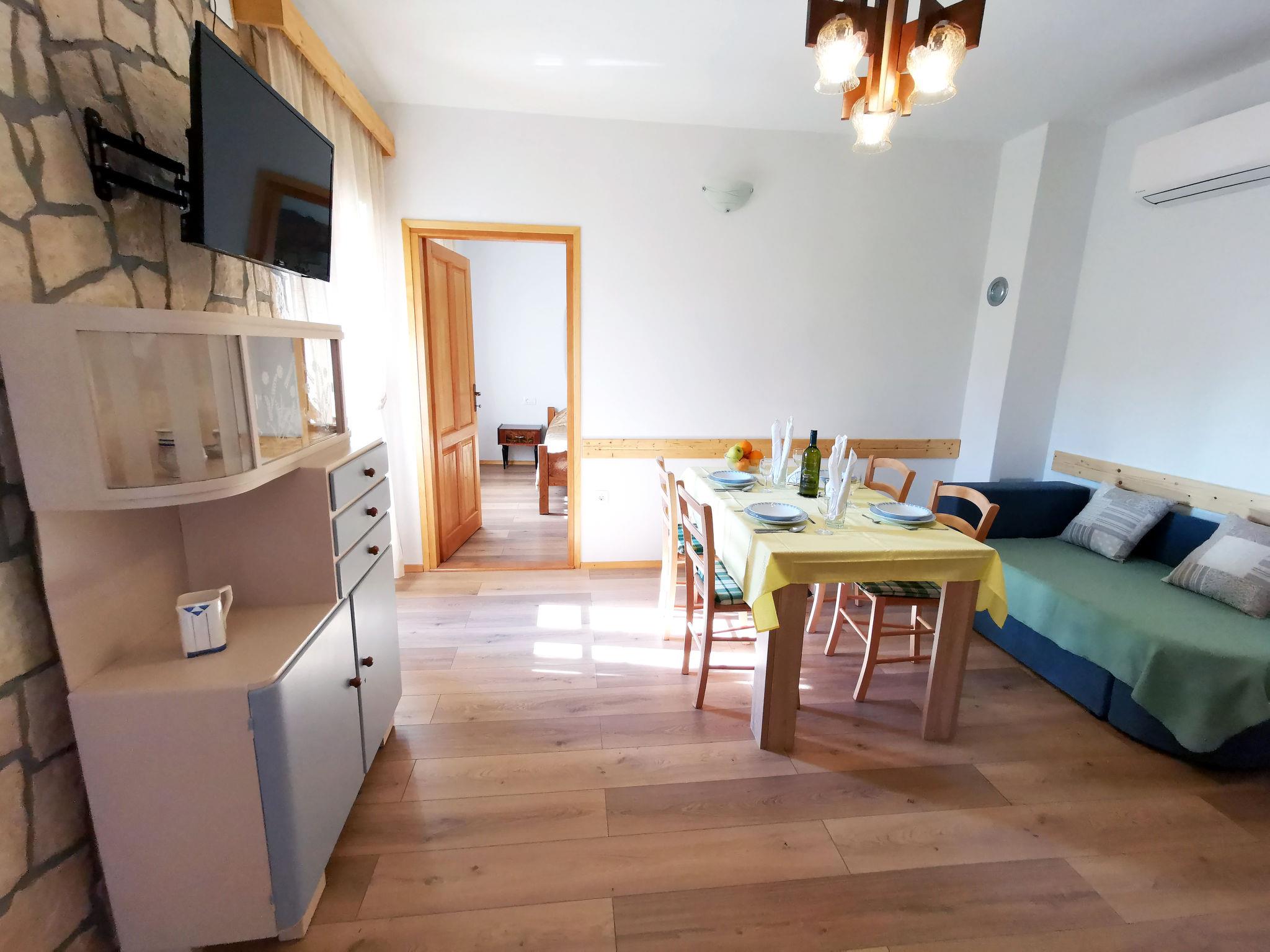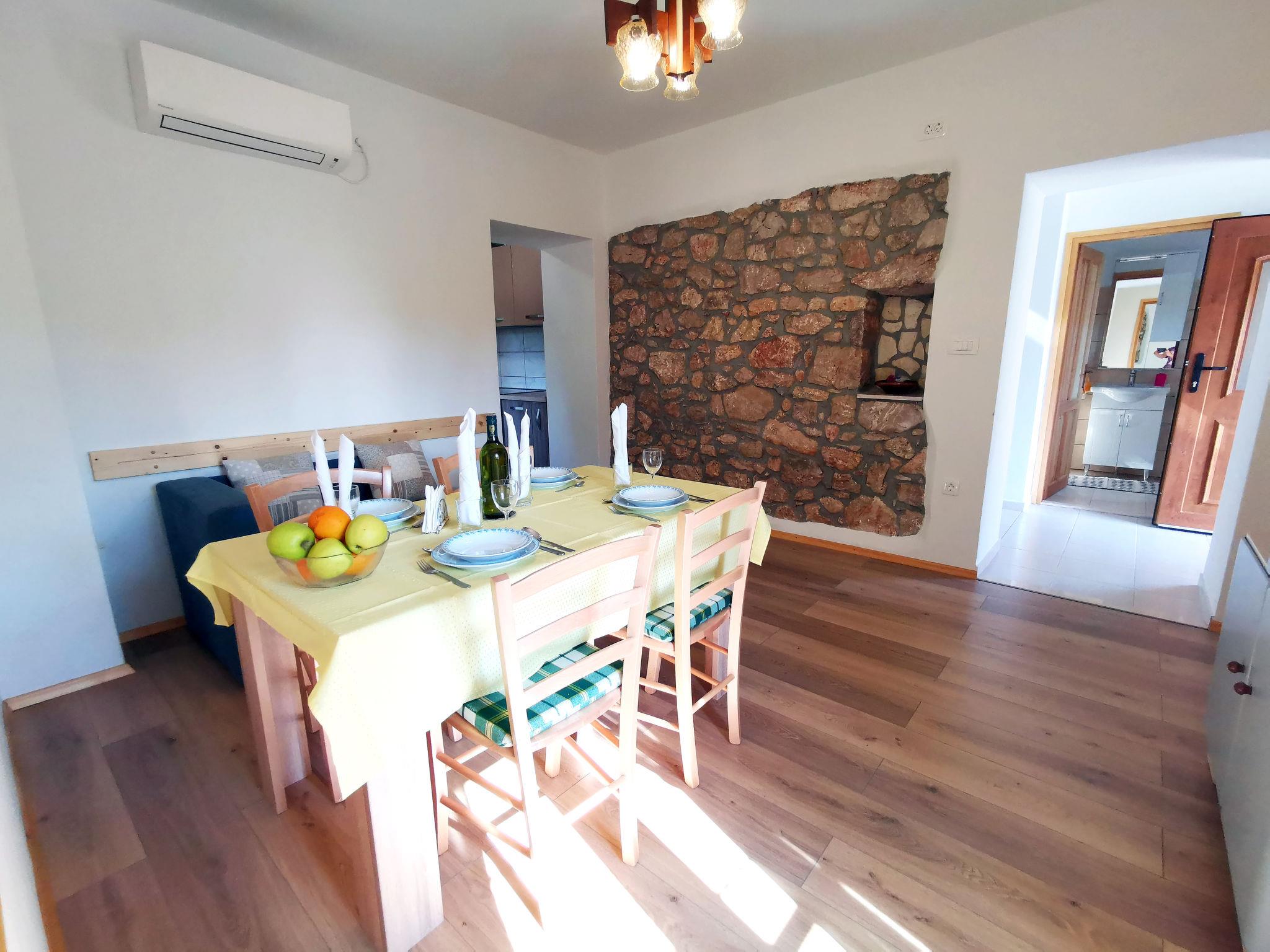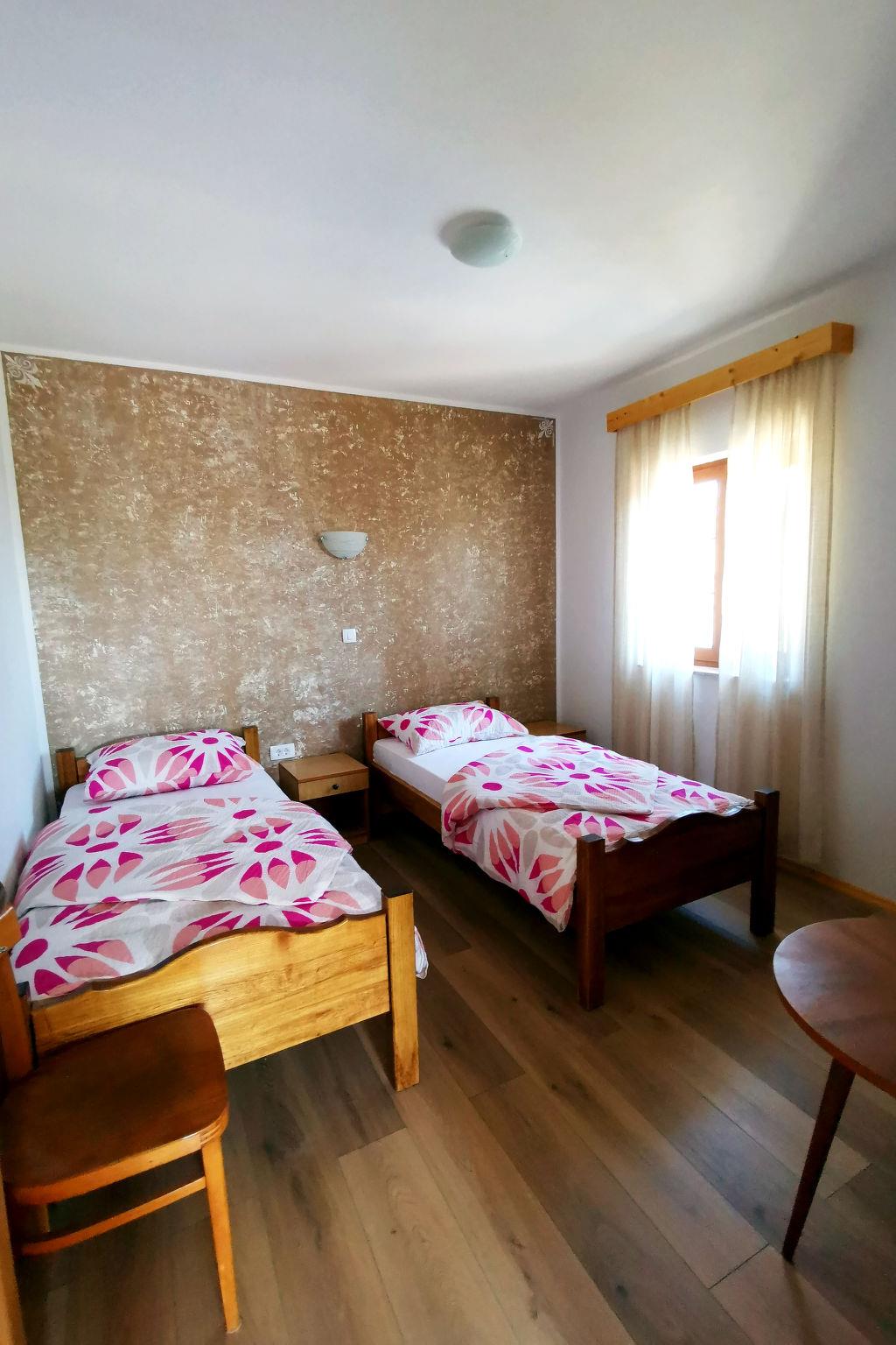 Haus Garica, ein freistehendes Gebäude mit Unterkunft im 1. Stock (60 m2) mit zwei separaten Schlafzimmern, einem Wohnzimmer, einer Küche, einem kompletten Badezimmer und einer separaten Toilette mit Waschmaschine. Im Hauptschlafzimmer befindet sich ein 200 x 180 cm großes Bett, während im kleineren Schlafzimmer zwei getrennte Betten mit den Maßen 200 x 90 cm stehen. Im Wohnzimmer befindet sich ein Küchentisch mit Stühlen und einer Couch, sowie Sat-TV und Klimaanlage. Die Küche ist ausgestattet mit Kühlschrank mit Gefrierfach, Mikrowelle, Geschirrspüler, Backofen, Elektroherd (4 Flammen/Ceran), Dunstabzugshaube, Filterkaffee und Wasserkocher. Den Gästen steht ein überdachter Balkon von 9m2 mit seitlichem Meerblick zur Verfügung.