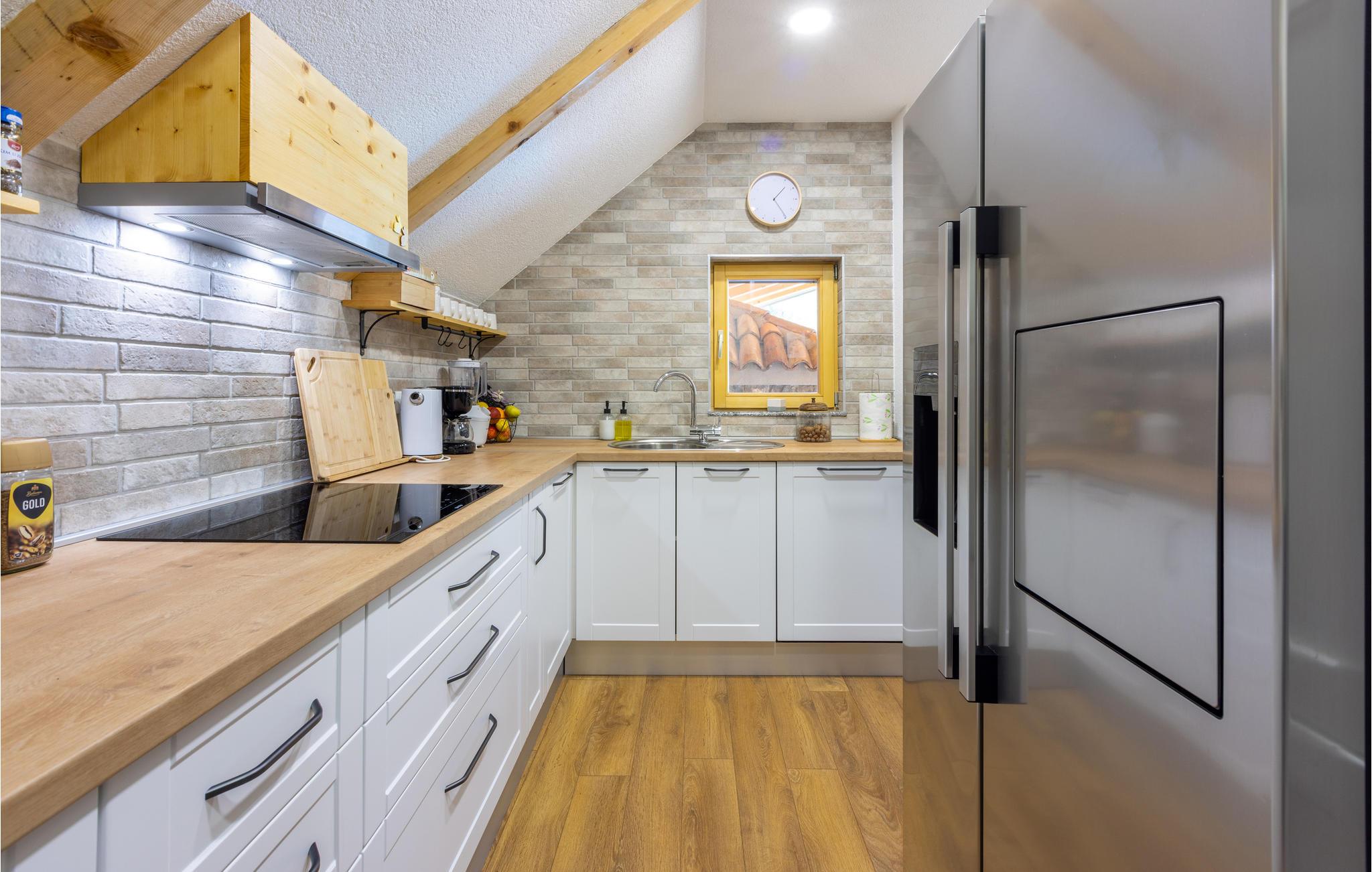 An heißen Tagen werden Sie vermutlich hauptsächlich die Außenküche zum kochen im Freien verwenden und auch demnach den gemauerten Grill anheizen. Diese Mahlzeiten können Sie gemeinsam mit Ihrer Begleitung auf dem offenen Grundstück mit einem Gläschen Wein genießen. Selbst für die kleinen Gäste gibt es allerhand zu unternehmen, da ein Badmintonnetz, Volleyballnetz und eine Schaukel bereit für Ihren Nutzen sind.