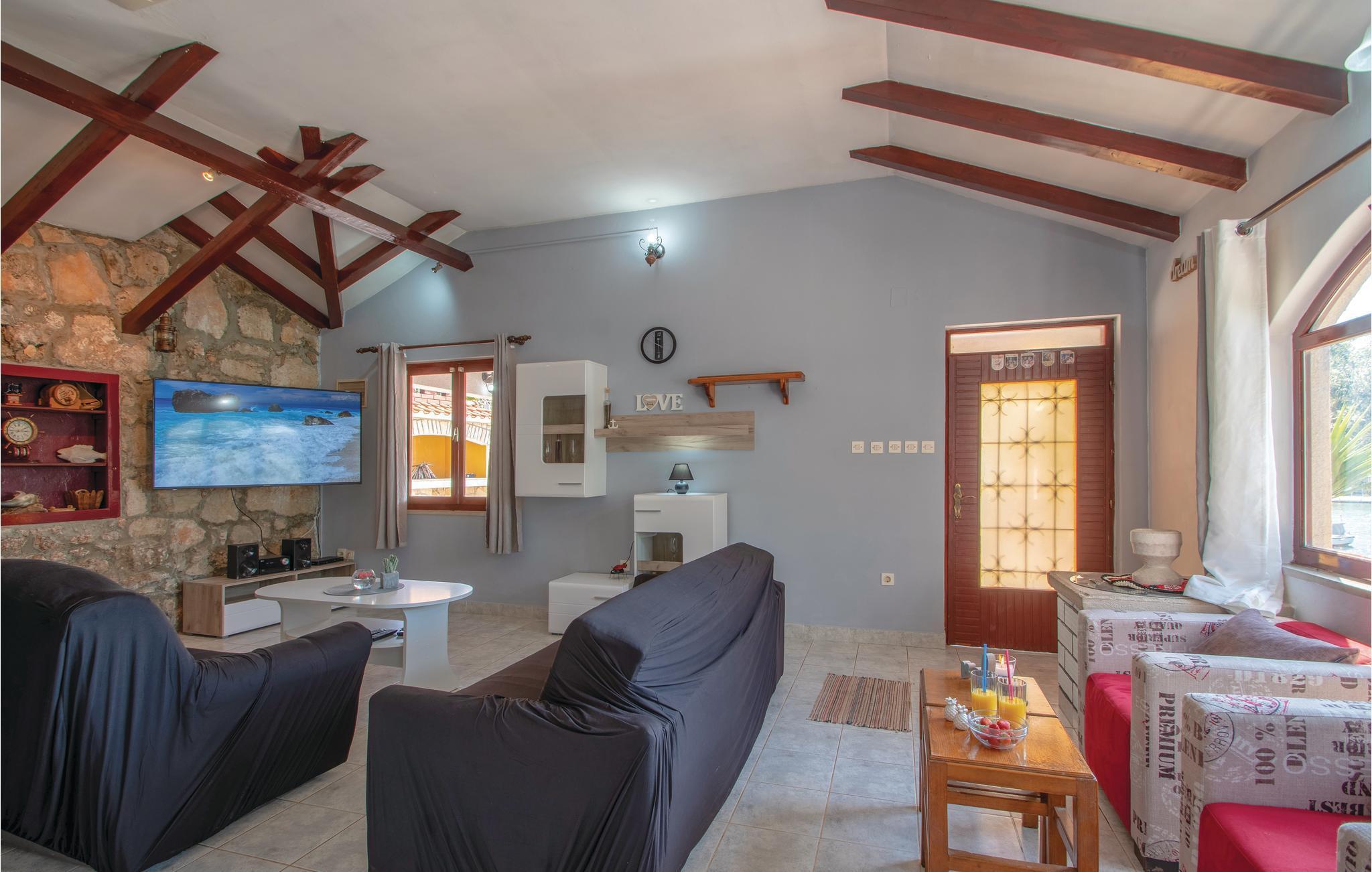 Wollen Sie etwas wirklich Außergewöhnliches? Dann sind Sie hier am richtigen Ort. Die kleine Bucht Gradina ist in Wirklichkeit eine Lagune, welche durch eine Insel und Halbinsel geschützt wird. Urlaubshungrige kommen hier bestimmt auf ihre Kosten. Die Innenräume dieses Hauses spiegeln ein warme Atmosphäre wider und das geräumige Wohnzimmer bietet jeder Familie an kühleren Herbsttagen gemütliche Stunden des Beisammenseins. Der umzäunte Hof mit einem Kamin sichert ungestörte Stunden während Ihrer Grillfeste. Der Salzwasser-Pool gibt Ihrem Körper ein Stück Gesundheit zurück. Der Pool als moderner Komfort, das Haus mit bescheidenem, südländischem Charme; diese Verbindung bleibt eine unvergessliche Erinnerung, welche Sie wieder erleben möchten. Mit dem freundlichen Vermieter können Sie gegen Absprache und Aufpreis eine Bootsfahrt unternehmen und er stellt Ihnen zwei Fahrräder zur Verfügung. Ein Badezimmer ist von außen zugänglich. Schwierige Zufahrt.