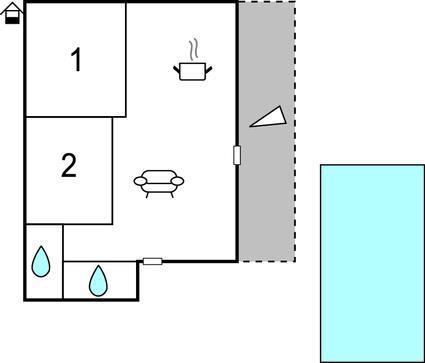 Schlafzimmer (nr. 1) - 1 Schlafmöglichkeit. (Einzelbett(en)). 2 Schlafmöglichkeiten. (Doppelbett(en)).